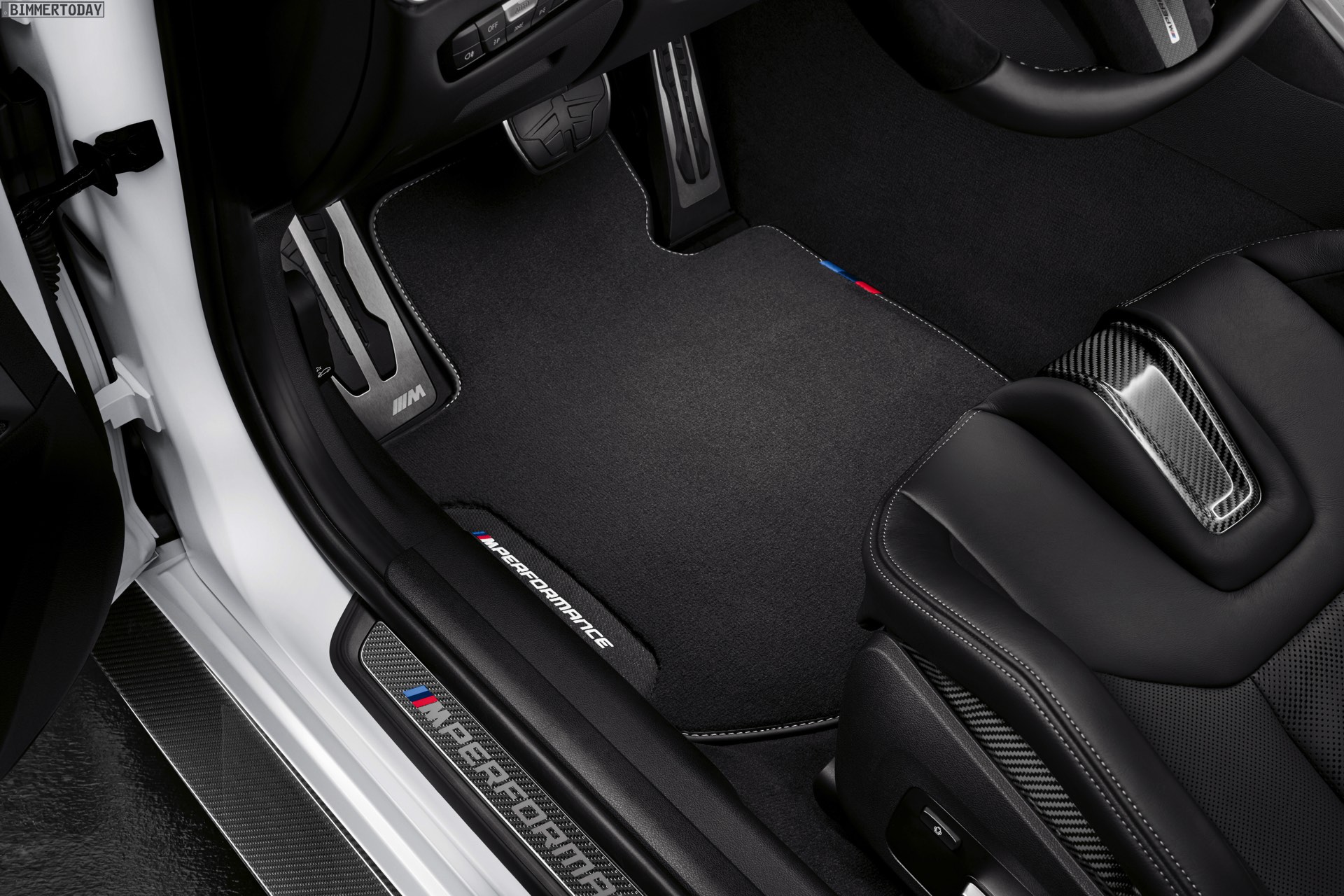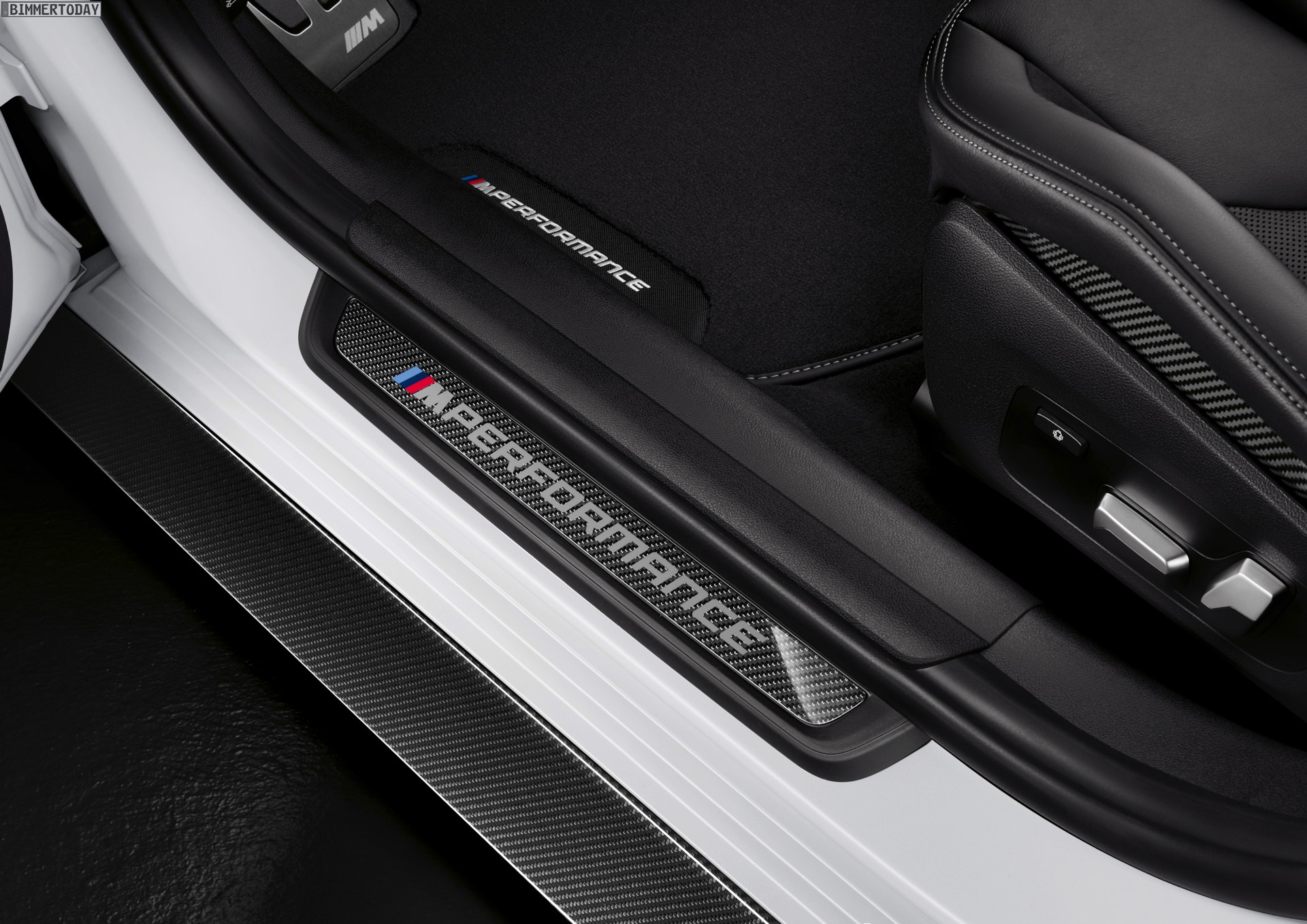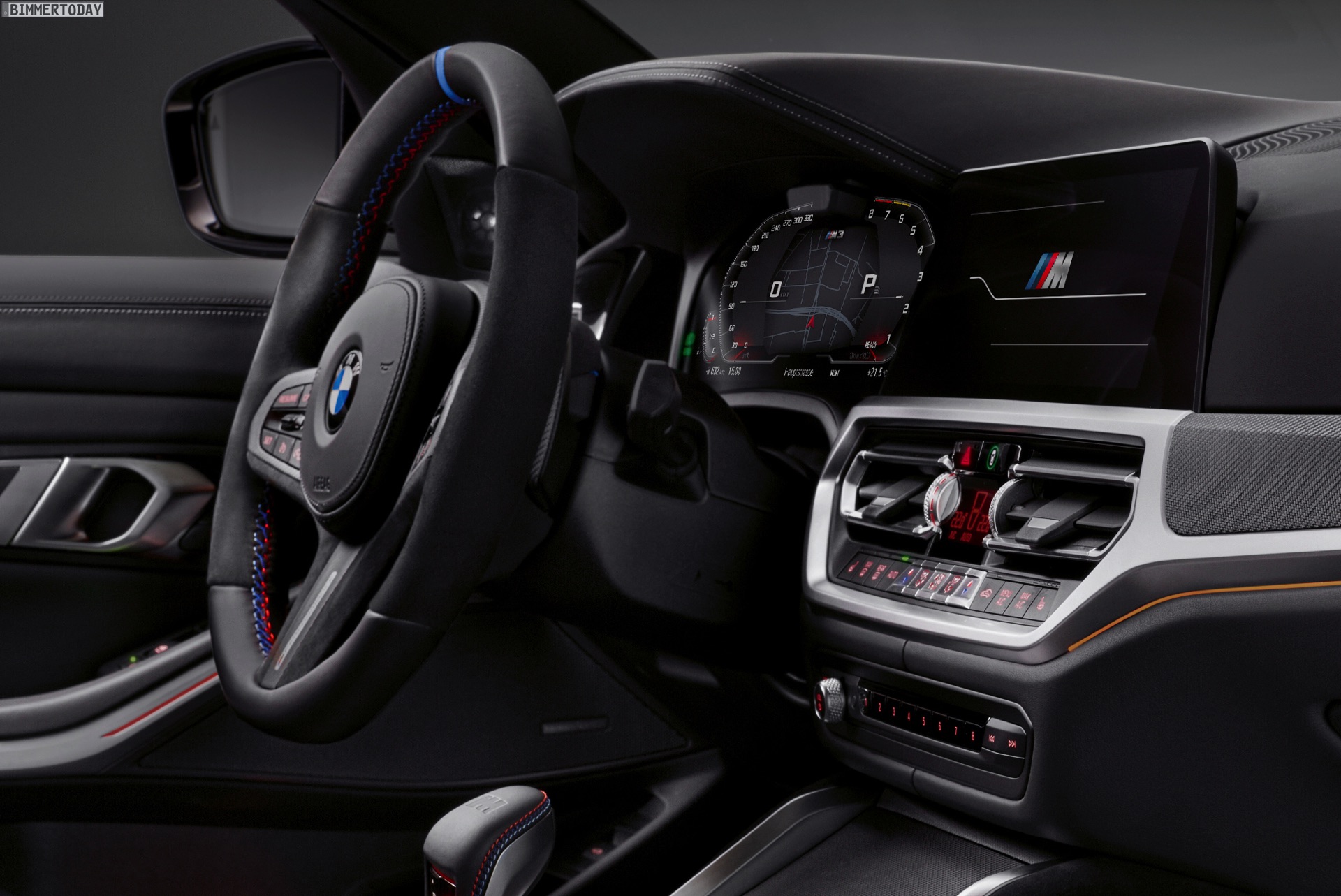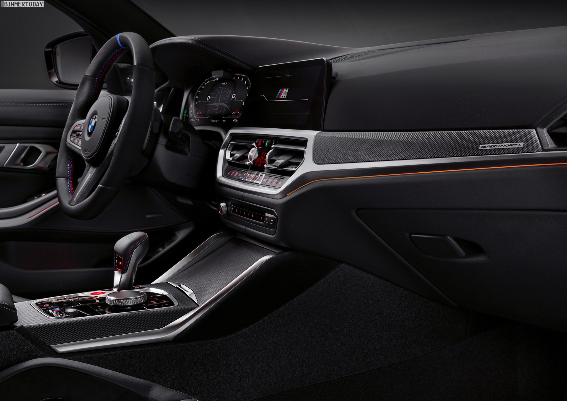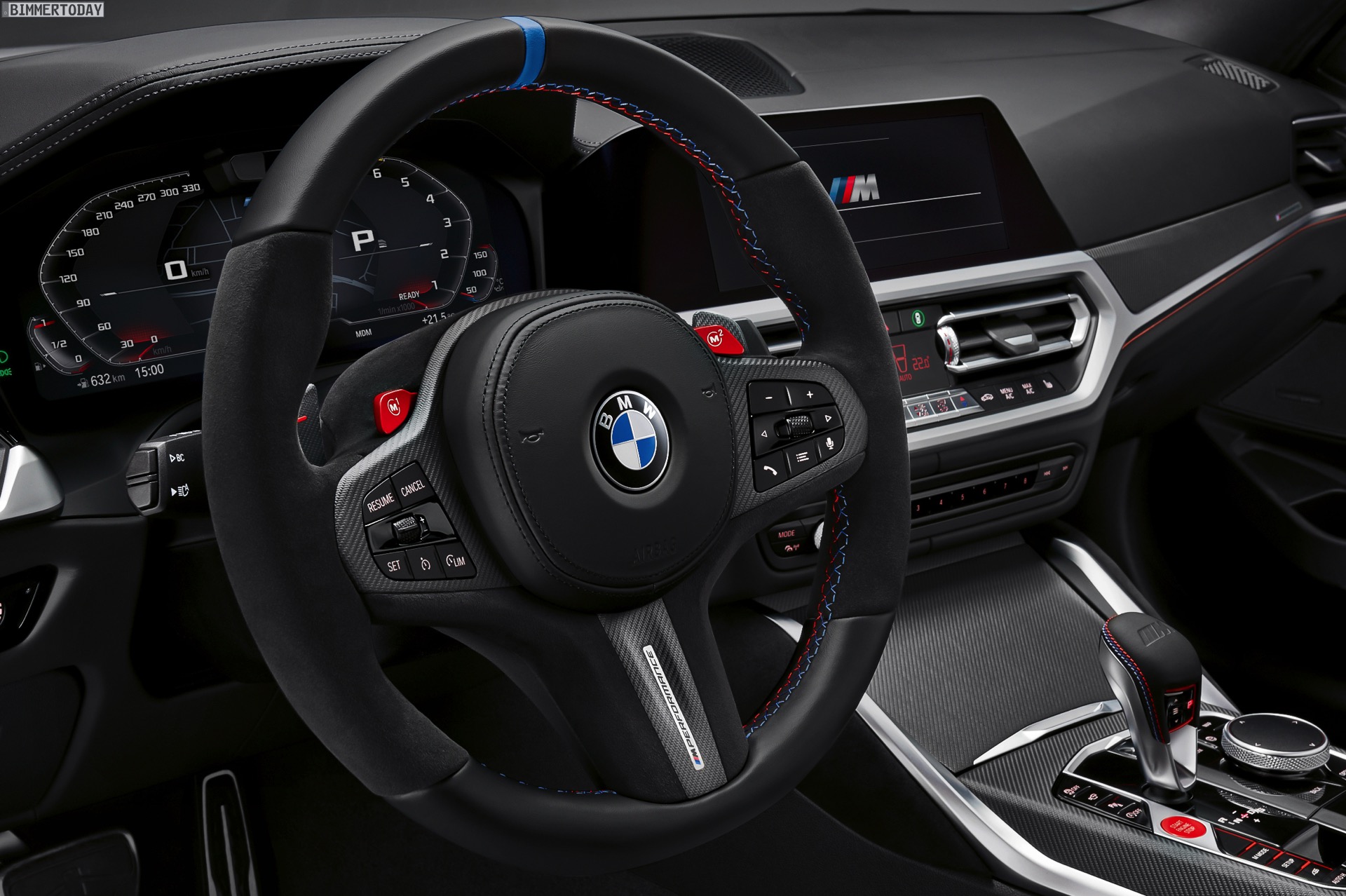 Im Innenraum lässt sich der sportliche Auftritt mit viel Alcantara und zusätzlichen Carbon-Teilen weiter schärfen. Besonders im Fokus steht dabei das M Performance Lenkrad Pro mit stark ausgeformtem Lenkradkranz, blauer 12-Uhr-Markierung und diversen Carbon-Details.