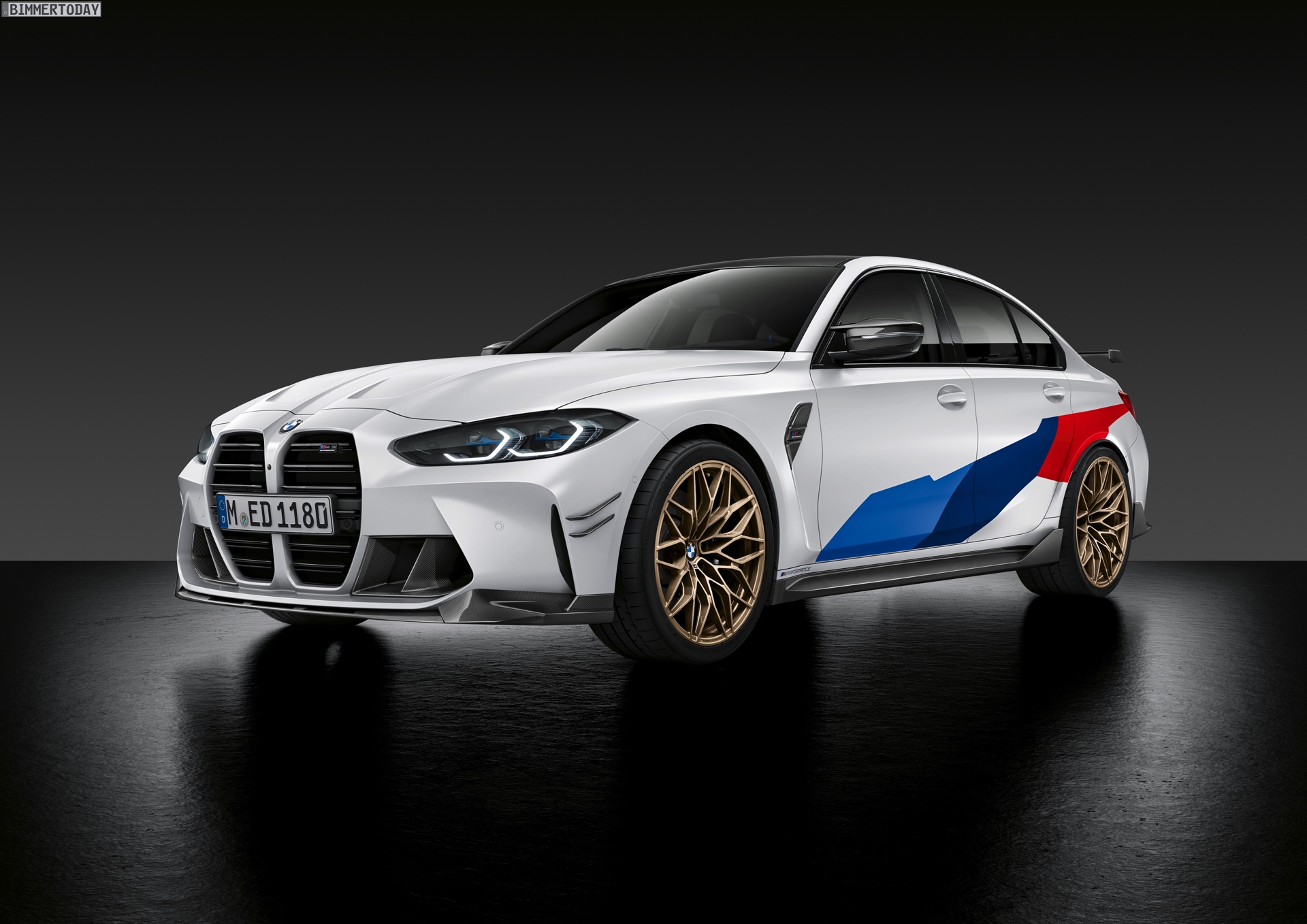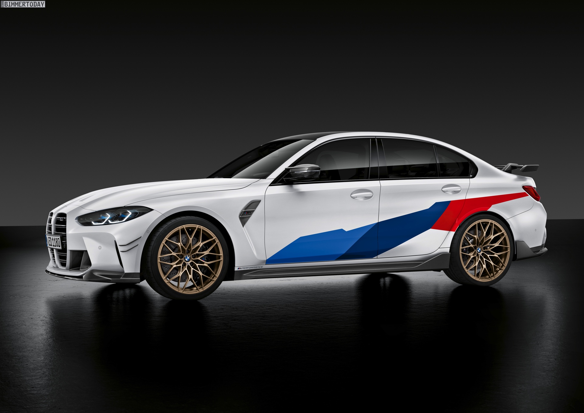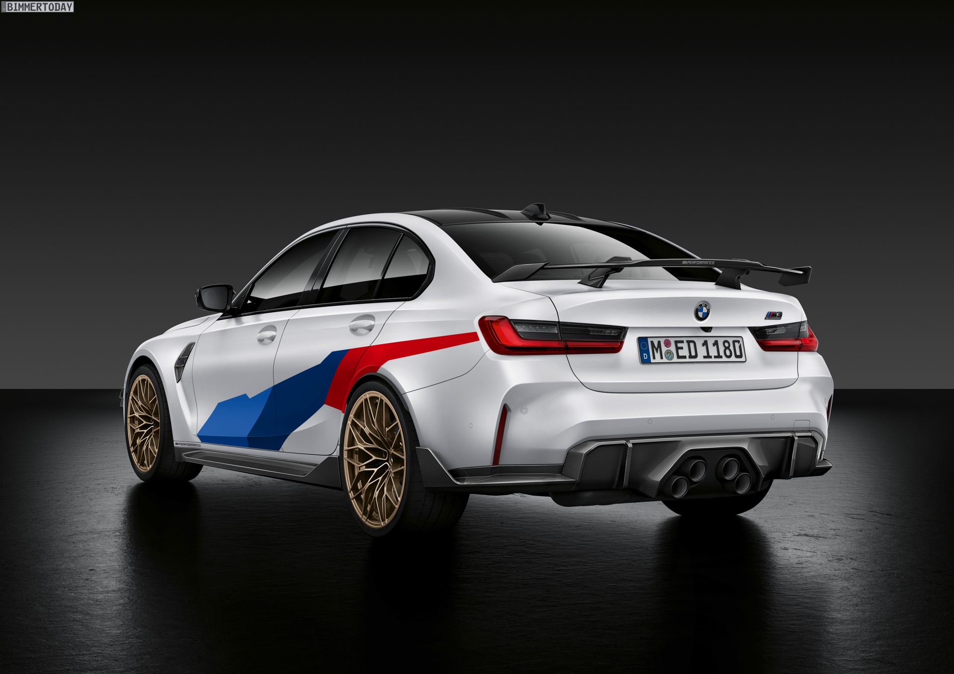 Wer einen extrovertierten Auftritt wie den von BMW M3 G80 und M4 G82 noch verschärfen will, muss in die Vollen gehen. Genau das machen die Tuning-Parts von BMW M Performance, die direkt zum Marktstart der beiden Power-Sportler im Frühjahr 2021 verfügbar sein werden. Schon auf den ersten Fotos wird klar, dass hier kein Platz für Understatement ist: Wer will, erhält für seinen M3 oder M4 eine extrem auffällige Abgasanlage mit vier aus BMW-Sicht unkonventionell angeordneten Endrohren, einen großen Heckflügel, goldene Felgen und auch zahlreiche Aerodynamik-Anbauteile für die Front. Passend dazu gibt es auf Wunsch eine Dekor-Beklebung, die den Auftritt von BMW M3 G80 und BMW M4 G82 endgültig in Richtung Motorsport verschiebt.