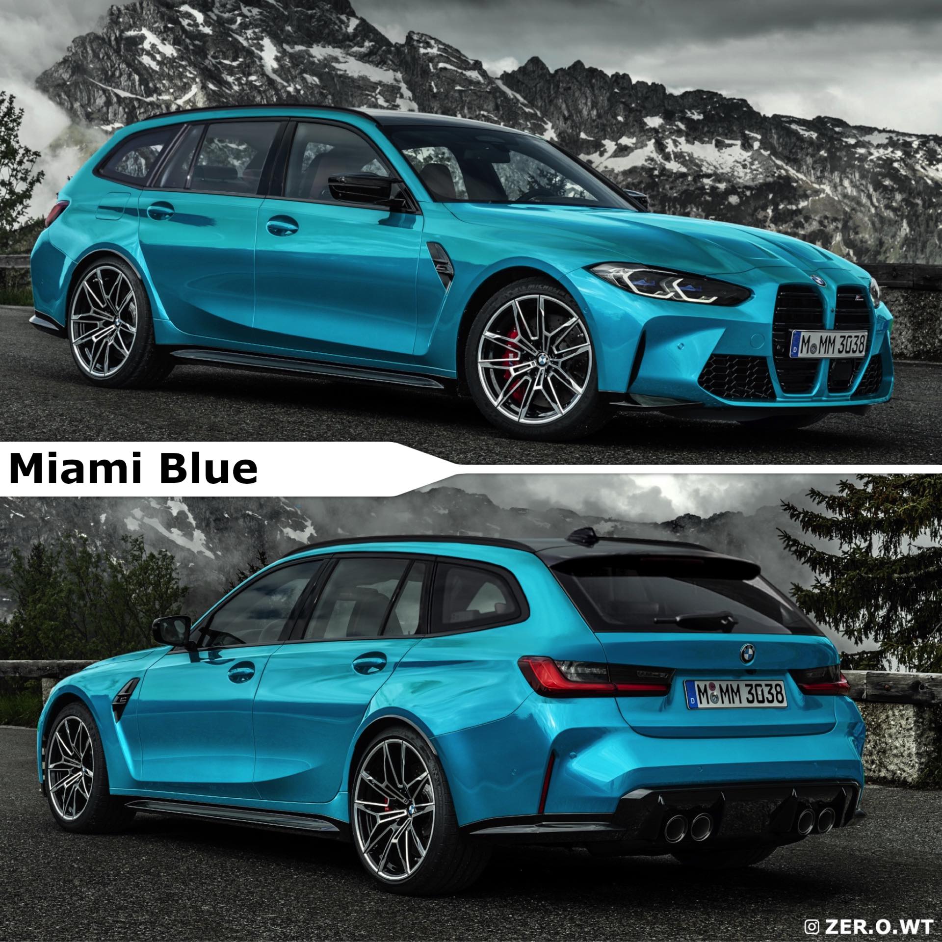 Nach der Vorstellung der neuen M3 Limousine war es nur eine Frage der Zeit, bis auch die ersten aktualisierten Entwürfe zum BMW M3 Touring G81 im Netz landen. Zer.o.wt hat sich dabei nicht auf einen einzelnen Power-Kombi beschränkt, sondern gleich eine Vorschau auf alle Farb-Varianten des ersten in Serie gebauten M3 Touring erstellt. Wir sehen die schnellste und radikalste Variante des 3er Touring G21 daher schon jetzt in vielen auffälligen Farben wie Isle of Man Grün, Sao Paulo Gelb, Toronto Rot oder Miami Blue. Außerdem gibt es Entwürfe zu den gedeckteren Farben wie Dravitgrau, Oxidgrau, Tansanizblau und Saphirschwarz, auch das scheinbar unschuldige Alpinweiß darf natürlich nicht fehlen.