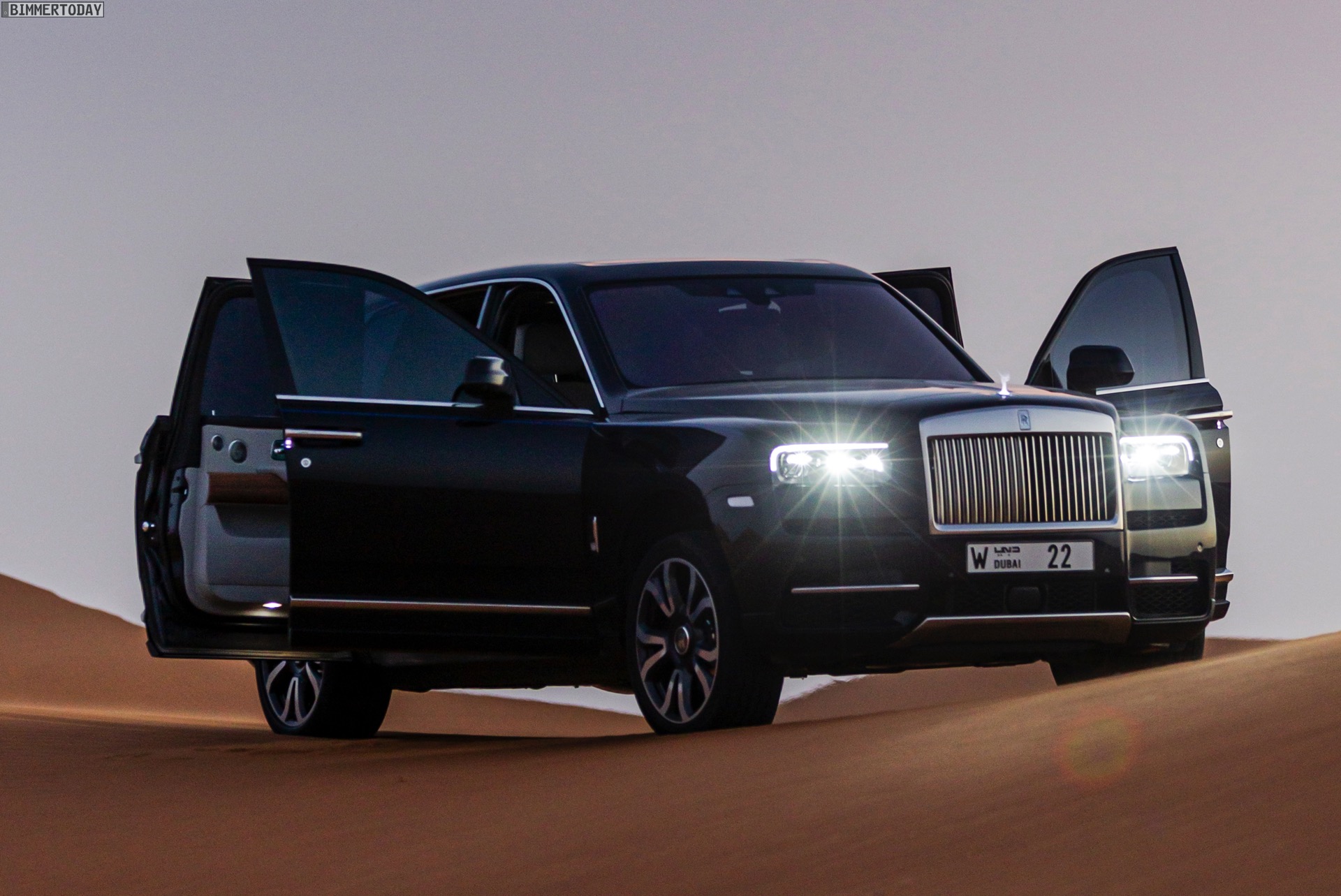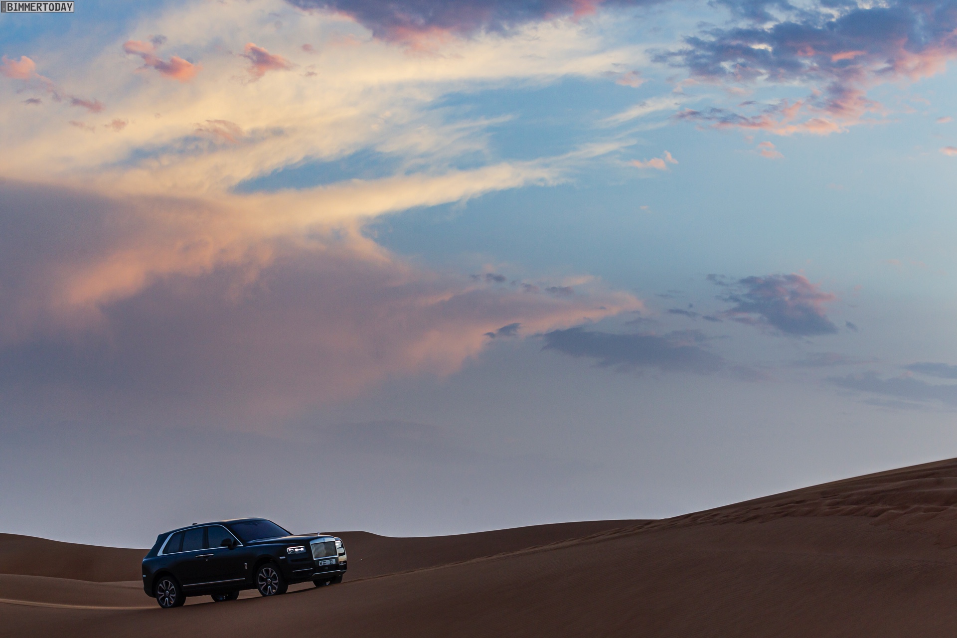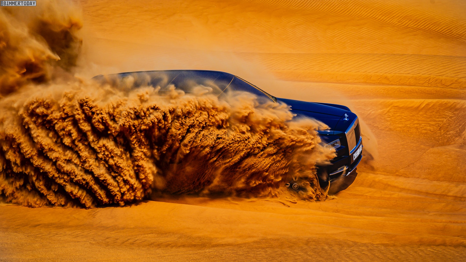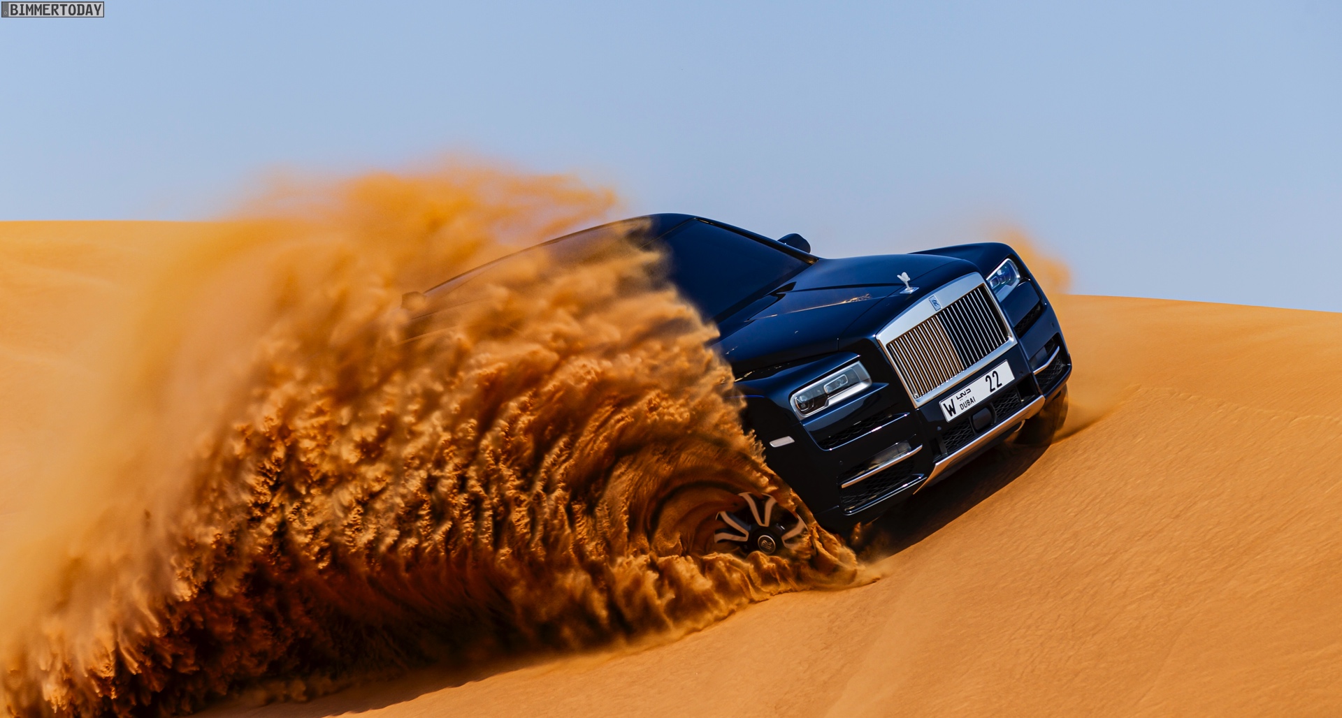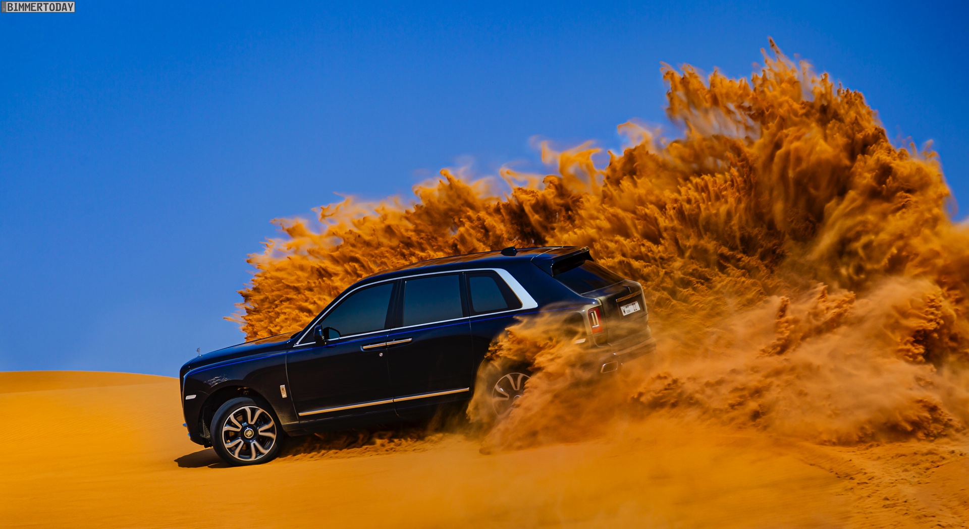 Dass sich mit diesem Luxus-SUV auch die Wüste unsicher machen lässt, zeigen nun einige Fotos aus dem arabischen Raum. Hier gibt es Kunden, die auf der Suche nach Abenteuer sogar vor Ausflügen in einige der unwirtlichsten Gegenden der Welt nicht zurückschrecken und dabei sehen wollen, ob ihr Rolls-Royce Cullinan auch diese Herausforderung bewältigen kann. Wie die Fotos eindrücklich zeigen, strahlt das britische Luxus-SUV auch im gelb-orangen Wüstensand eine enorme Autorität aus und bewältigt den Untergrund scheinbar mühelos.