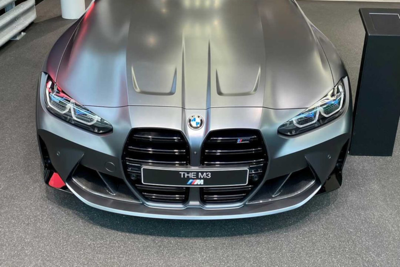 Bisher war der neue BMW M3 G80 meist in Isle of Man Green zu sehen, nun gibt es erste Live-Fotos in Frozen Dark Grey – zumindest wirken die Fotos so, als ob es sich nur um die dunkelgrau-matte Individual-Lackierung handeln kann. Wichtiger als die korrekte Bezeichnung der Farbe ist aber, wie kraftvoll die Power-Limousine aus Garching auf den Fotos aus Belgien wirkt: Der Wunsch der Designer, ein auffälliges und selbstbewusstes Fahrzeug für extrovertierte Menschen zu gestalten, ist unübersehbar. Dass sie dabei einen kontroversen Look erzeugen würden, der nicht jeden Betrachter auf Anhieb begeistert, war zweifellos einkalkuliert – und entscheidender als alle Likes und Kommentare im Internet wird ohnehin sein, wie die relevante Zielgruppe auf das Fahrzeug reagiert.