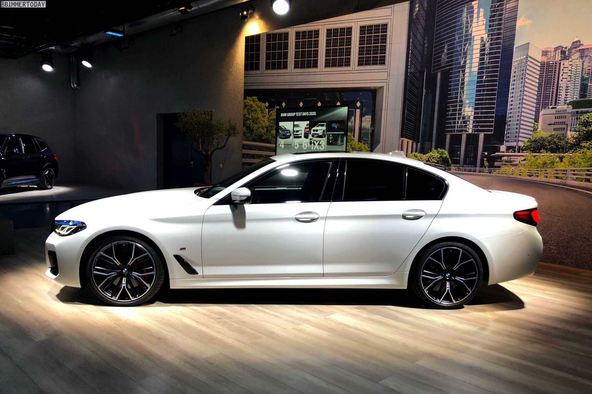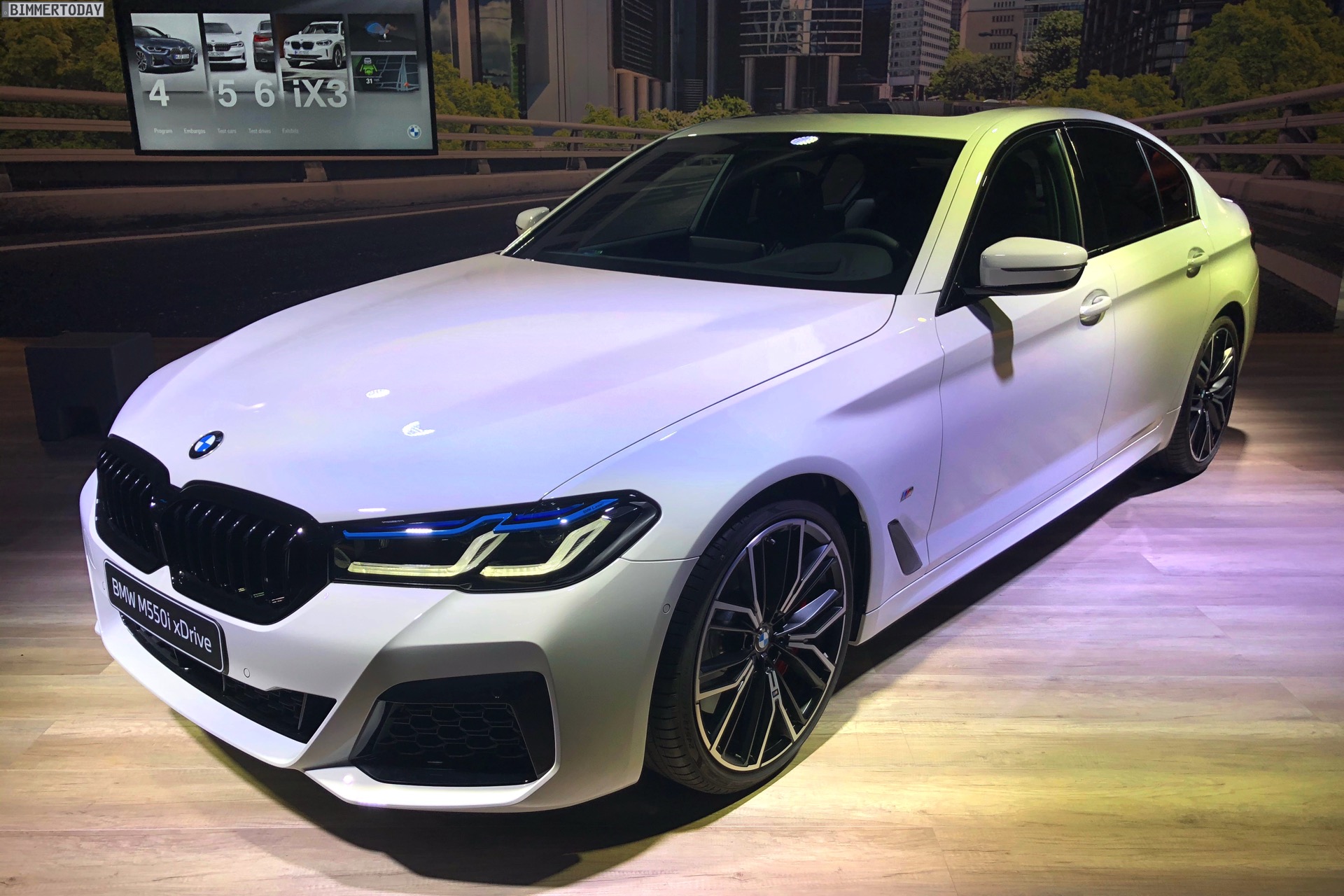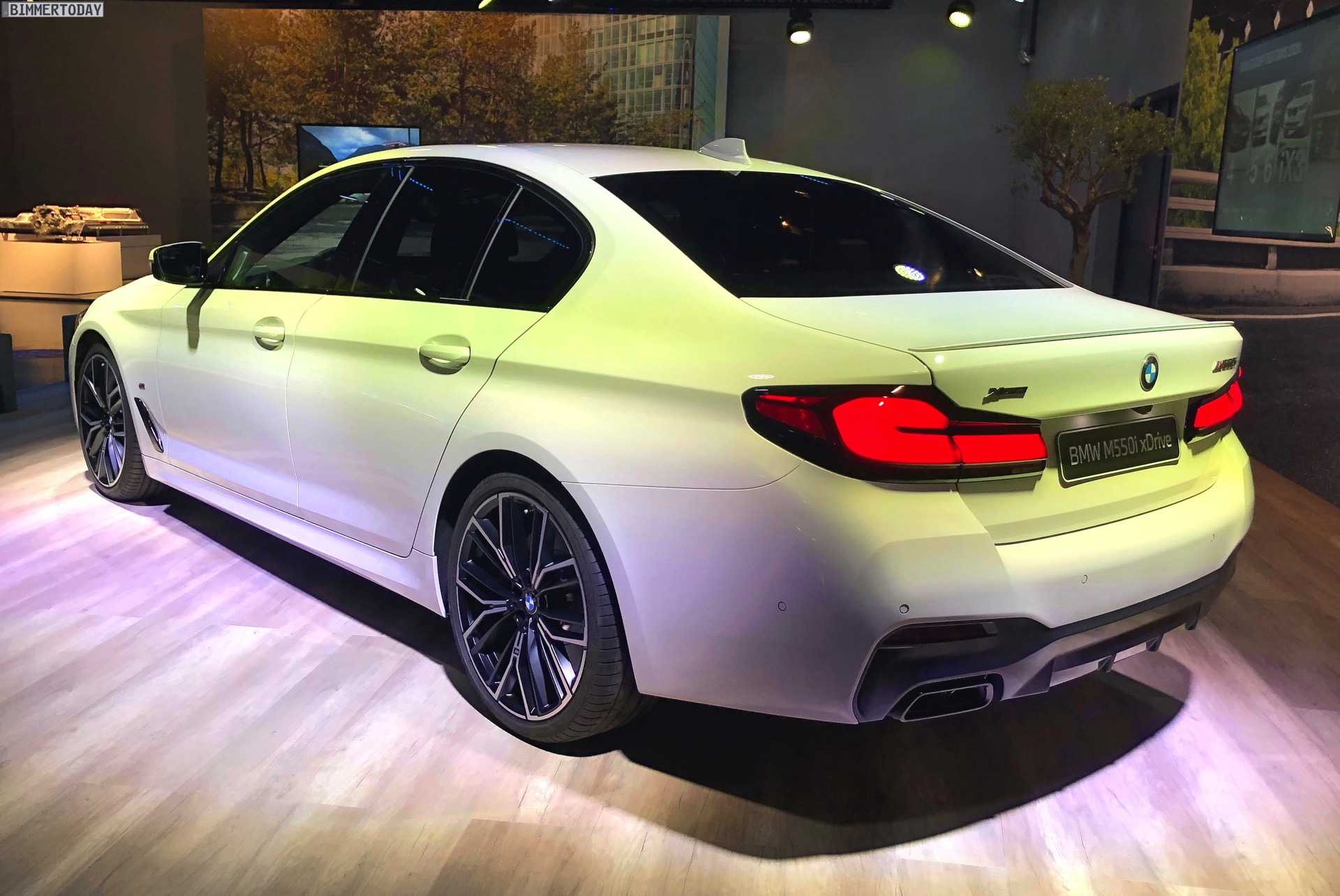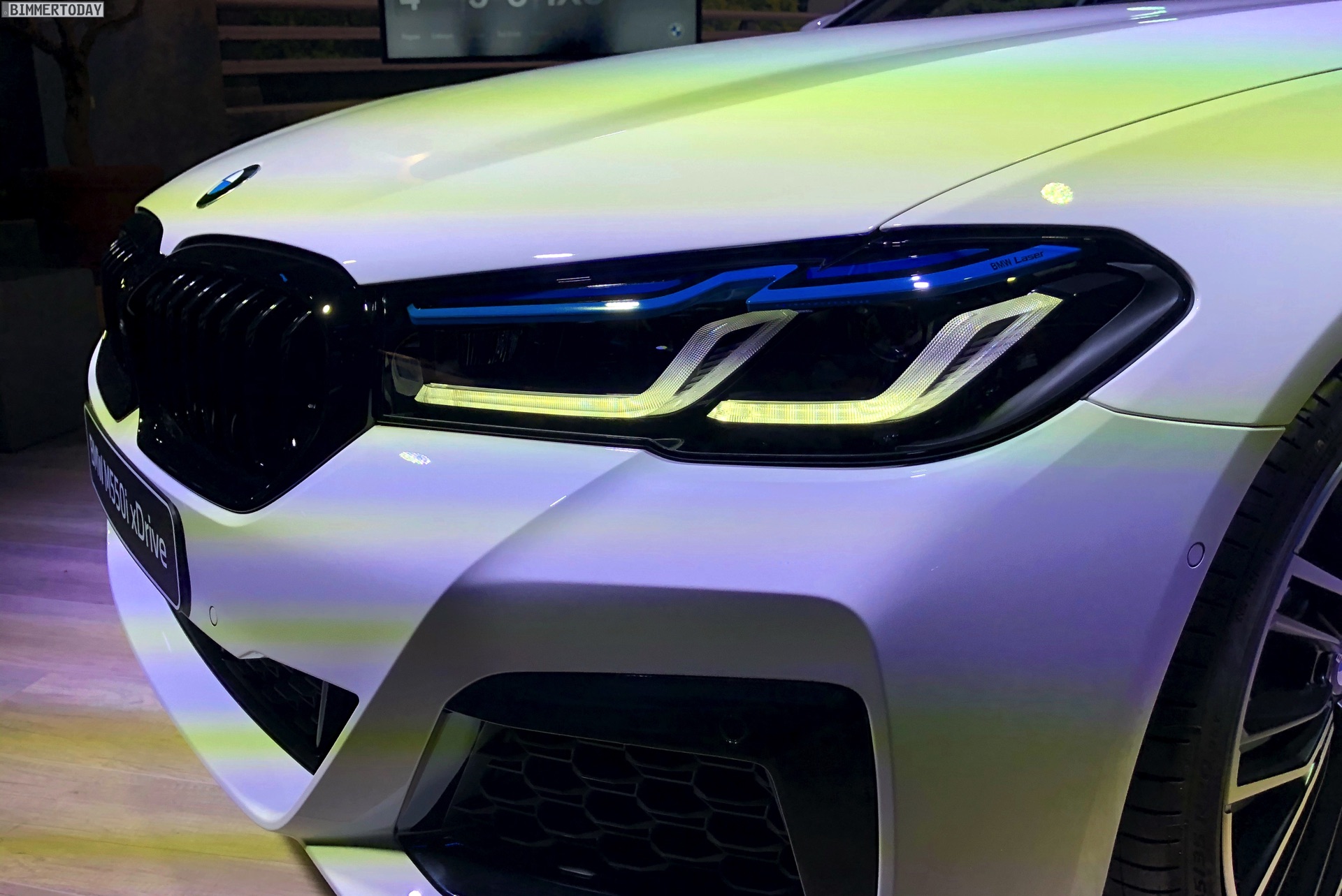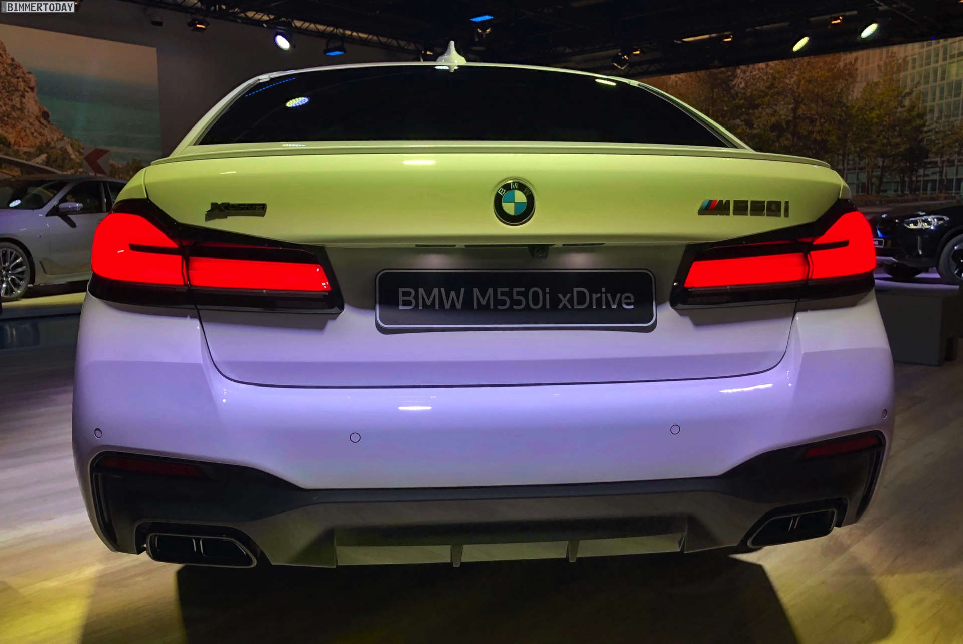 Mit Lackierung in Weiß und Shadow Line mit erweiterten Umfängen konnten wir kürzlich das BMW M550i Facelift 2020 fotografieren. Die M Performance Variante des 5er G30 LCI ist dabei nur gemessen an ihrer Lackierung unschuldig, denn abgesehen vom weißen Lack ist der M550i xDrive voll auf Angriff getrimmt: Die Power-Limousine setzt mit schwarzen Nieren, riesigen Lufteinlässen und auch den in intensivem Blau leuchtenden Augenbrauen der optionalen Laserlicht-Scheinwerfer markante Akzente. Das seit dem Facelift völlig neu gezeichnete Tagfahrlicht verzichtet zwar auf Anleihen klassischer Designs, betont mit seinen horizontalen Linien aber zusätzlich die Breite des Fahrzeugs.