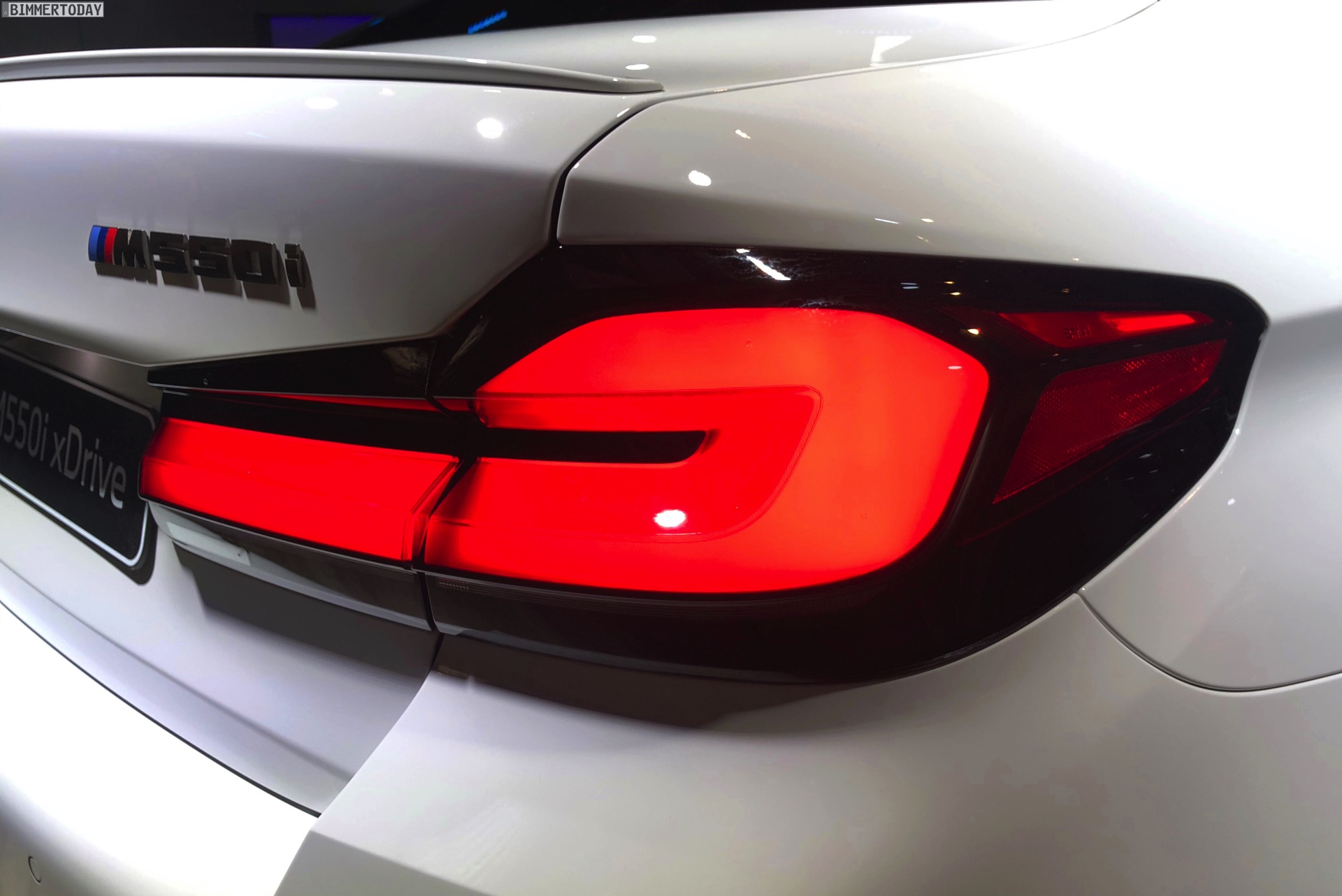 Einen wesentlichen Unterschied zum bisherigen Auftritt verursachen auch die neu gestalteten Rückleuchten. Ein einziger, sehr voluminöser und homogen illuminierter Lichtbalken macht den BMW 5er G30 LCI auch bei Nacht sofort als Facelift-Modell erkennbar. Bei genauerem Hinsehen beeindruckt die dreidimensionale Struktur der Rückleuchten, denn auf ein Abdeckglas wird seit der Modellpflege verzichtet.