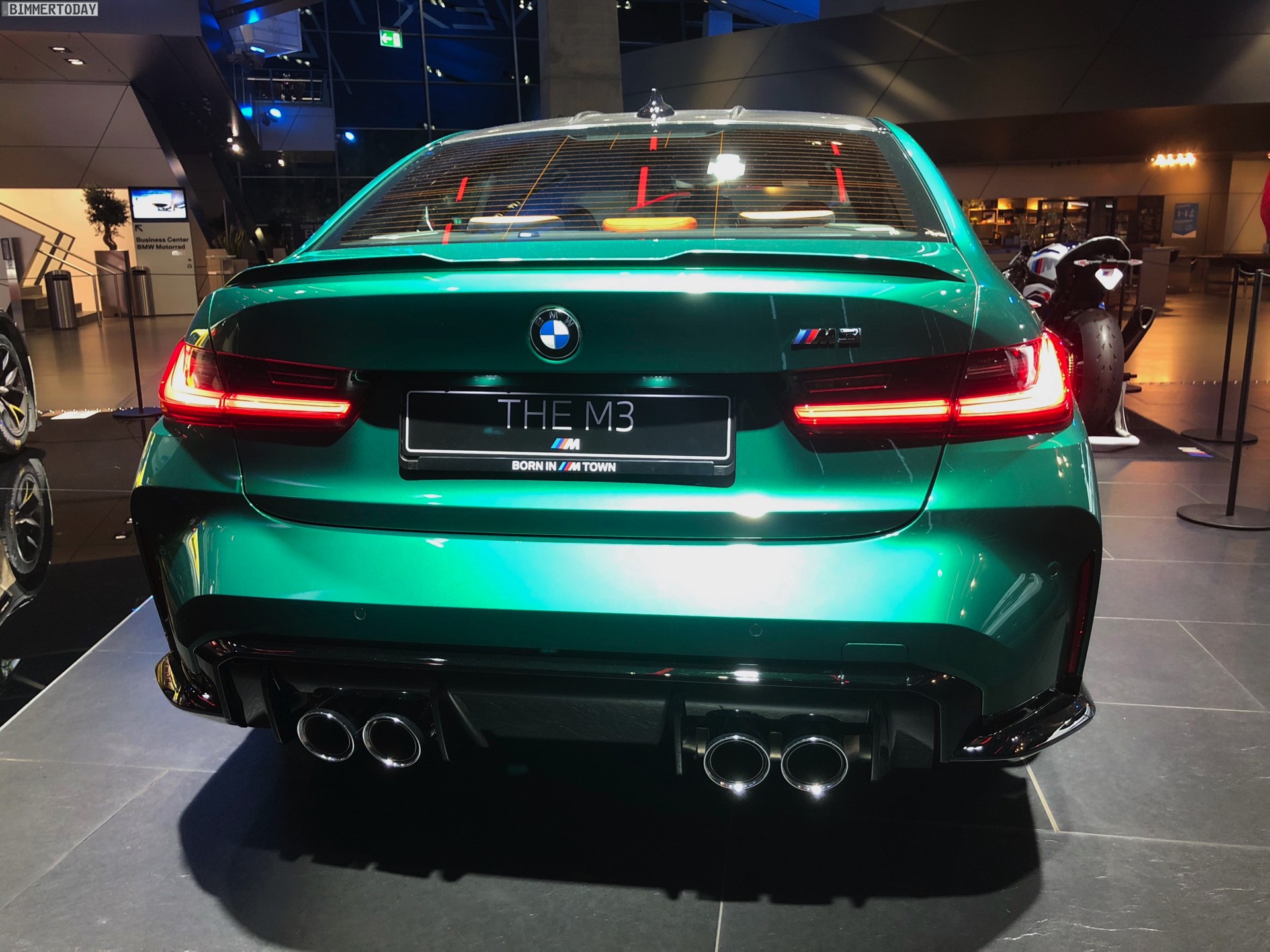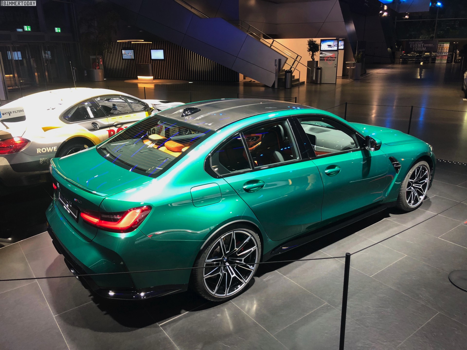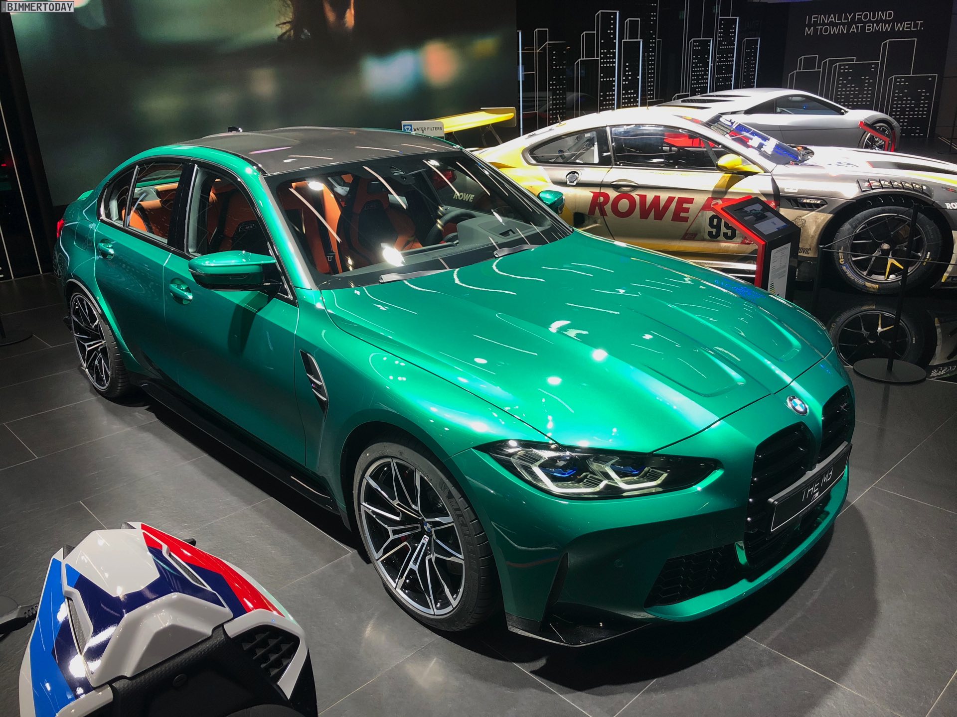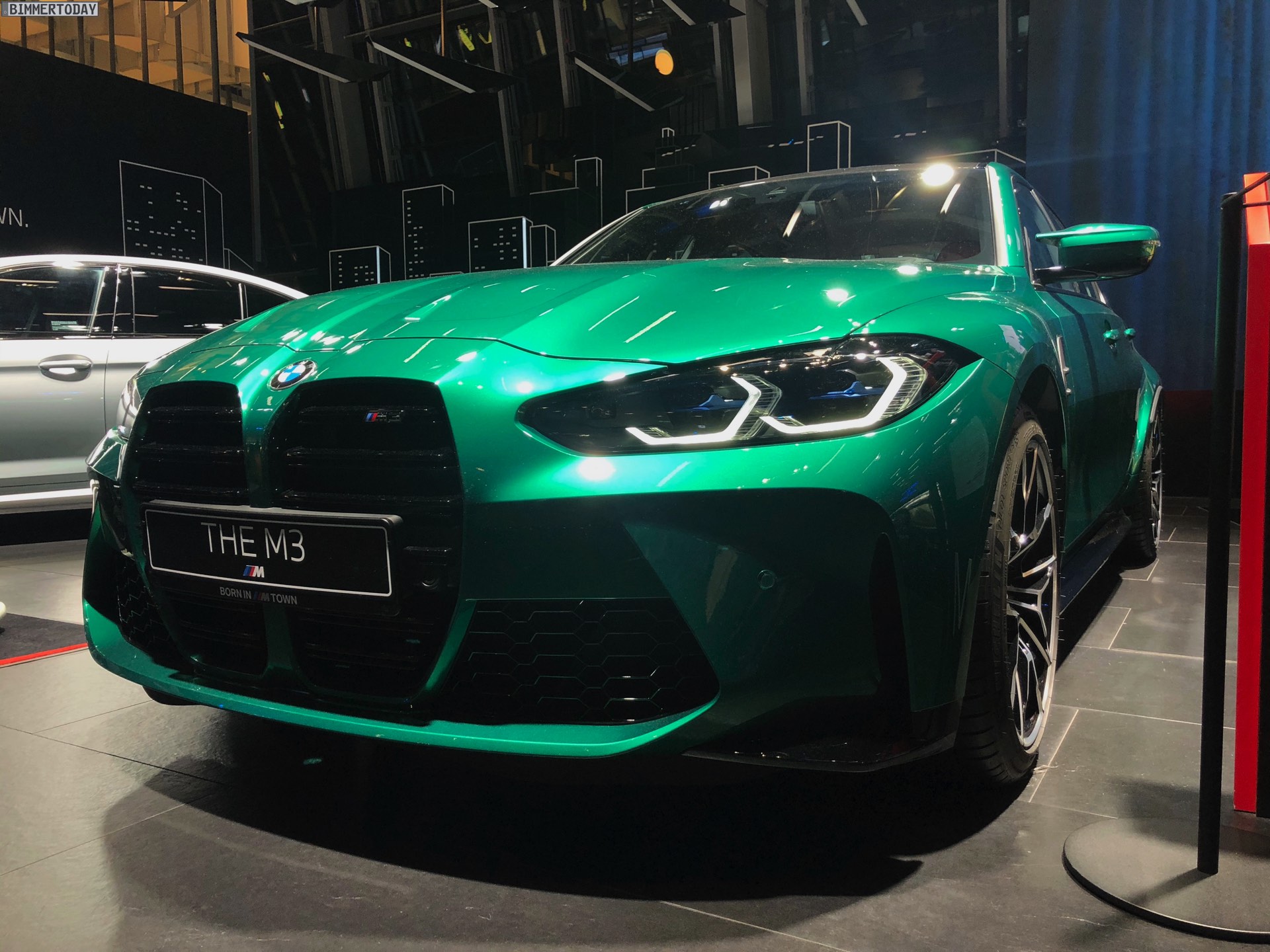 Wer sich ein eigenes Bild vom kontroversen Look des neuen BMW M3 G80 machen will, hat derzeit in der BMW Welt München die Chance dazu. Zwar feiert die sechste Generation Power-Limousine offiziell erst im Frühjahr 2021 ihren Marktstart, aber im M-Areal des Münchner Markenzentrums kann man sie schon heute persönlich in Augenschein nehmen. Wie schon auf den ersten offiziellen Fotos sehen wir den M3 G80 auch in München in der Launch-Farbe Isle of Man Green Metallic, die einen spannenden Farbtupfer auf so manchen Parkplatz bringen dürfte.