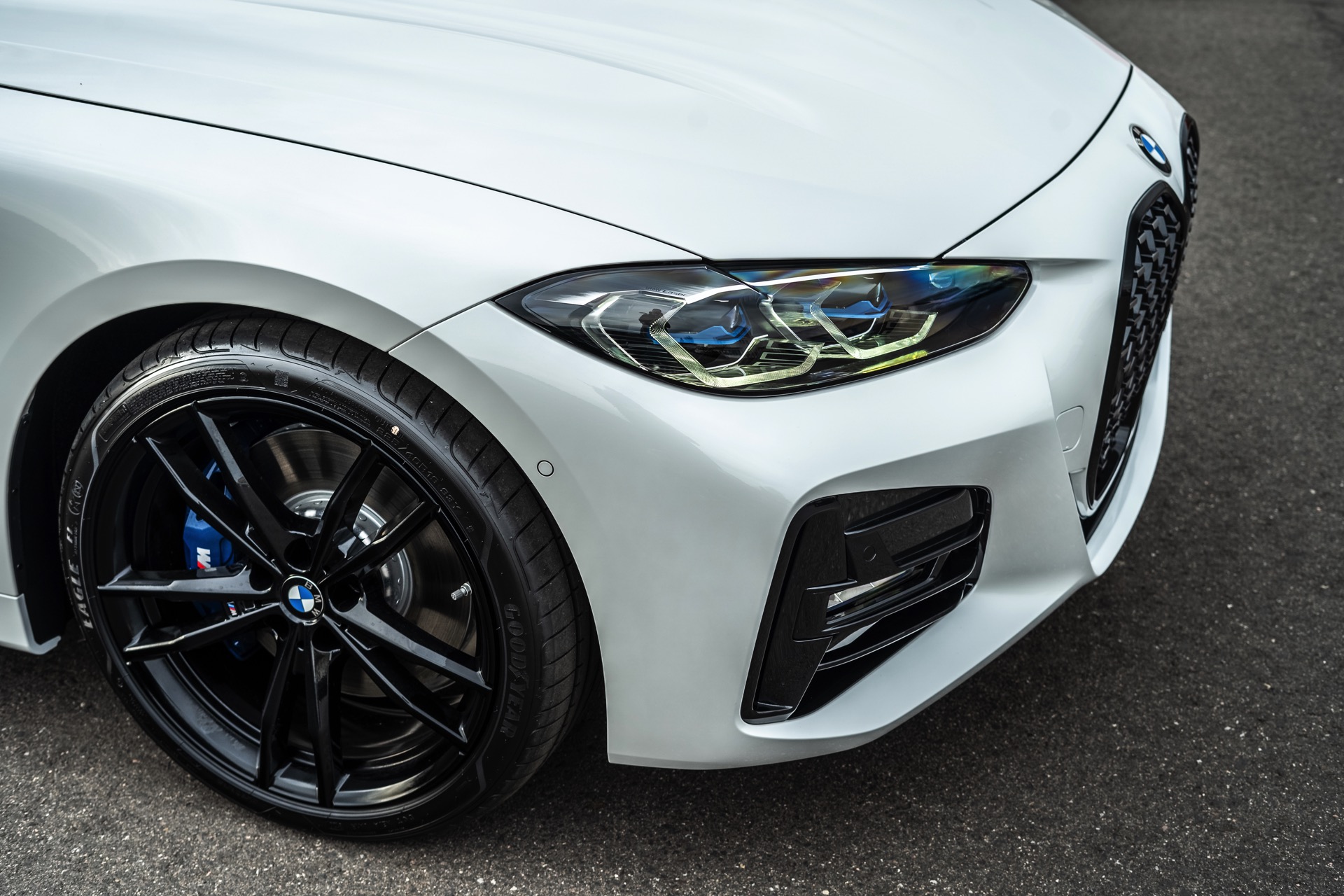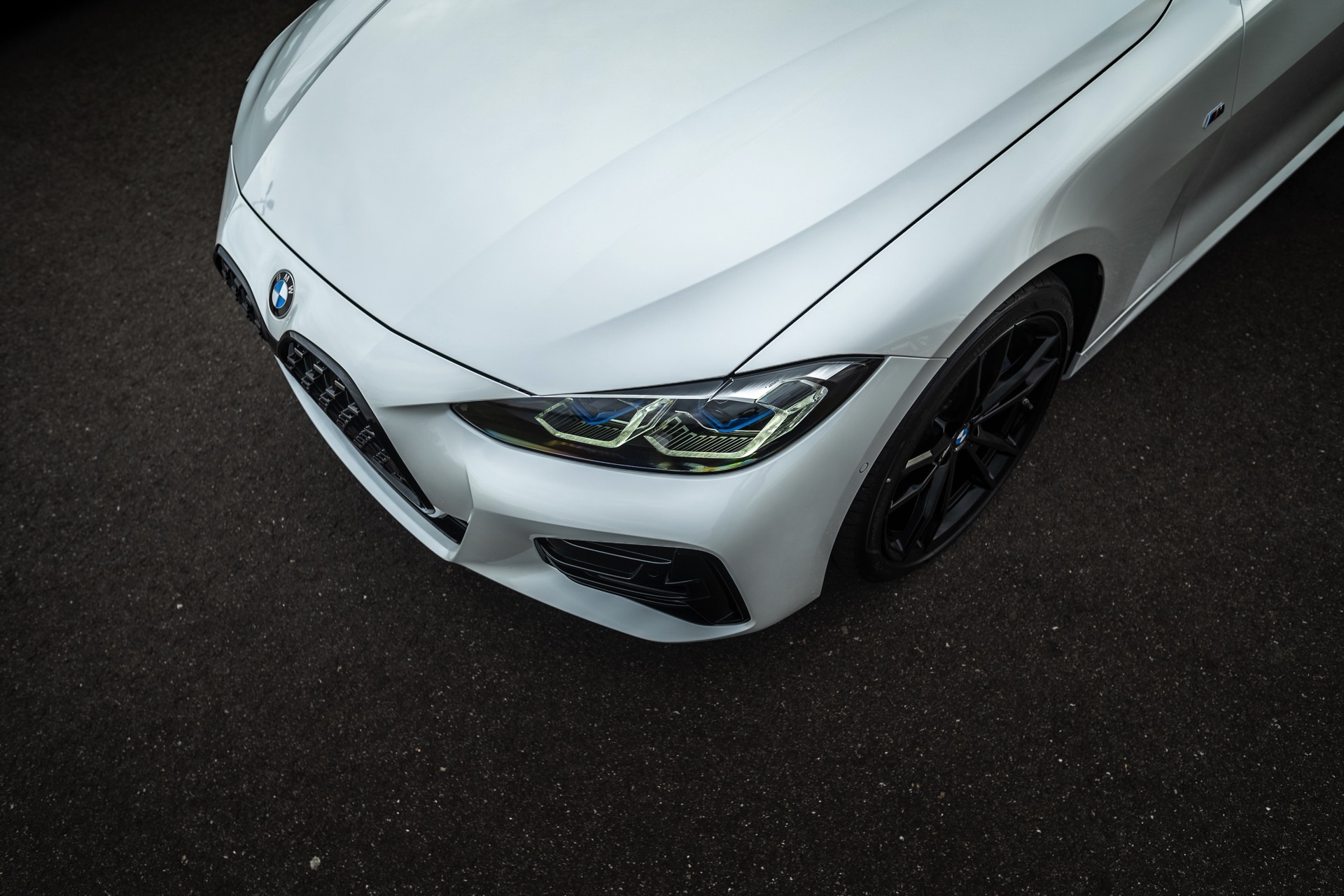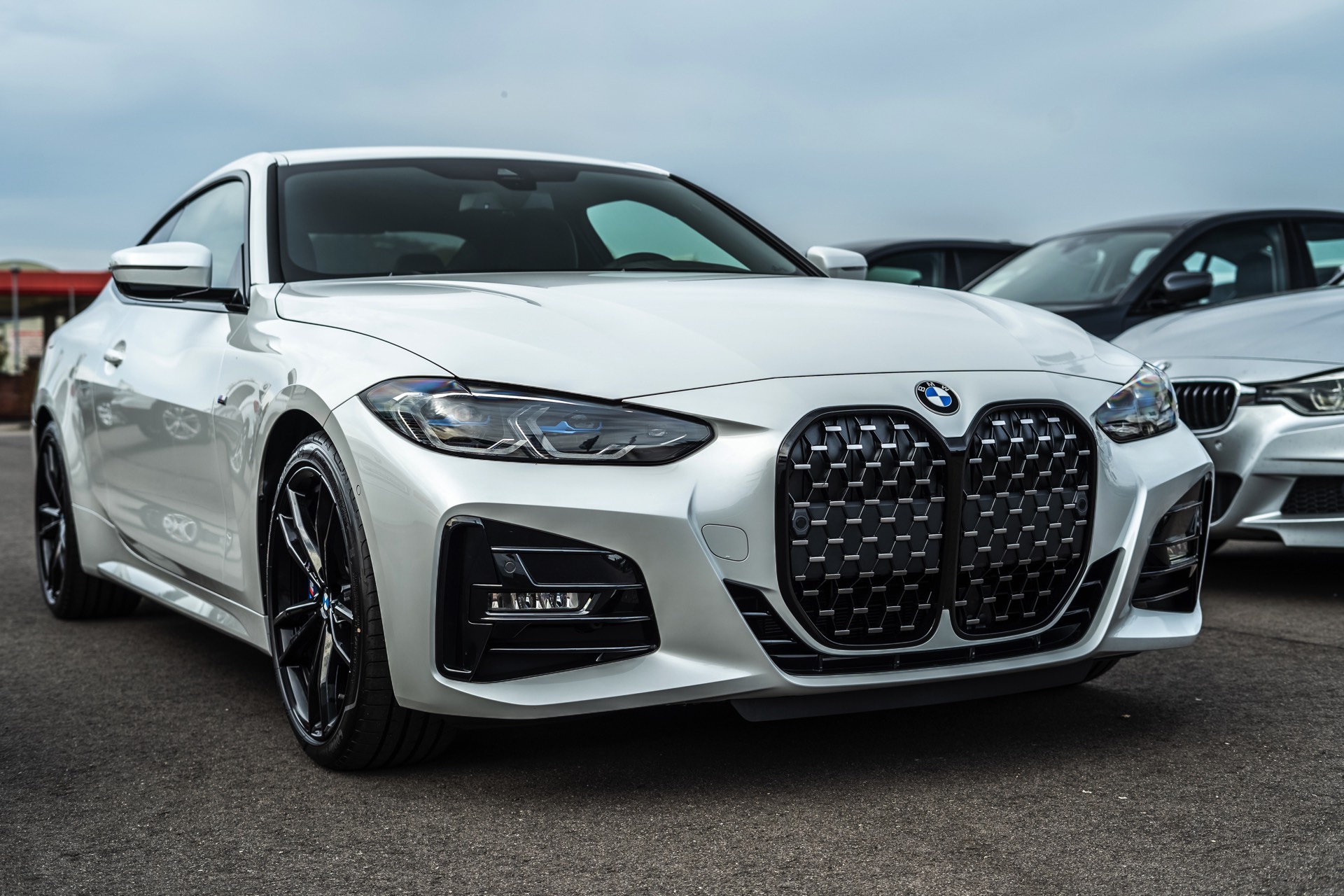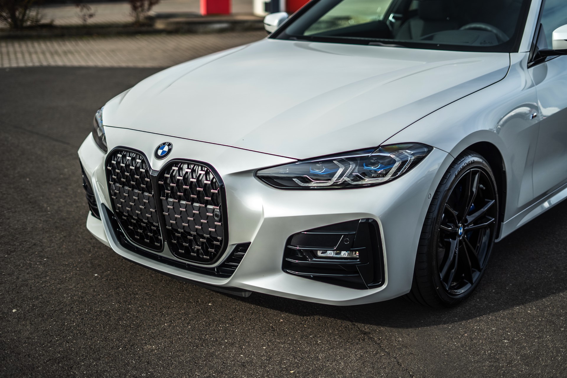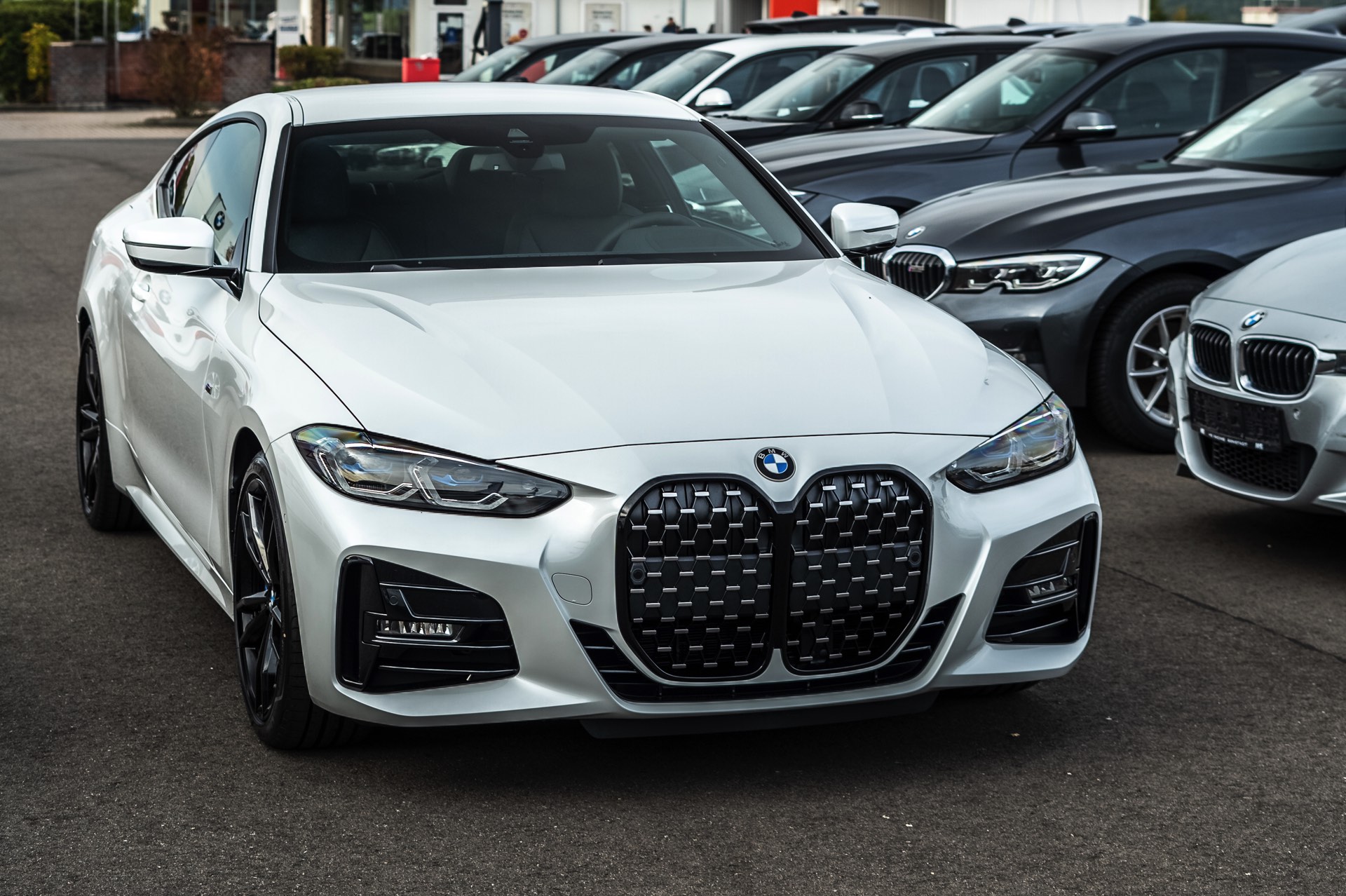 Auf den Fotos sehen wir beispielsweise einen BMW 430i mit Vierzylinder-Motor, dessen Niere dennoch der des aktuellen Topmodells M440i entspricht – zumindest dann, wenn beide Modelle mit erweiterter Shadow Line ausgerüstet sind: Im regulären Trimm setzt der M440i auf Design-Akzente in Cerium Grey, während die Niere der kleineren Modell mit klassischen Chrom-Oberflächen glänzt.