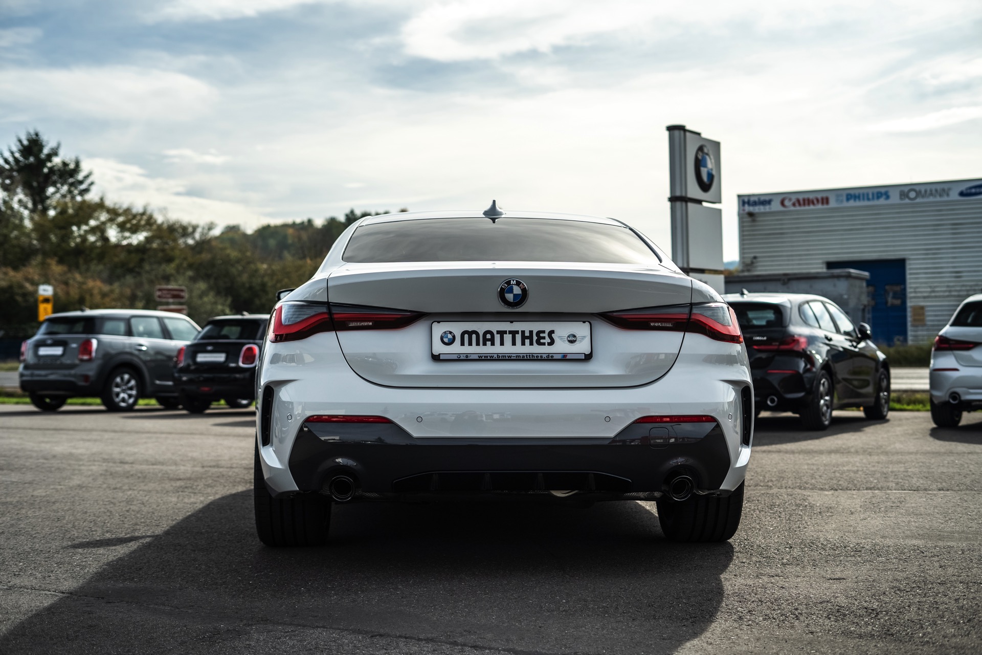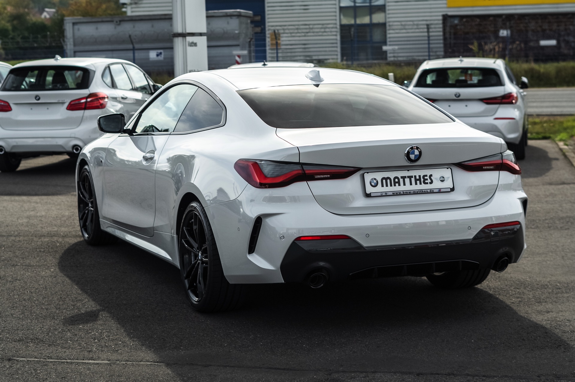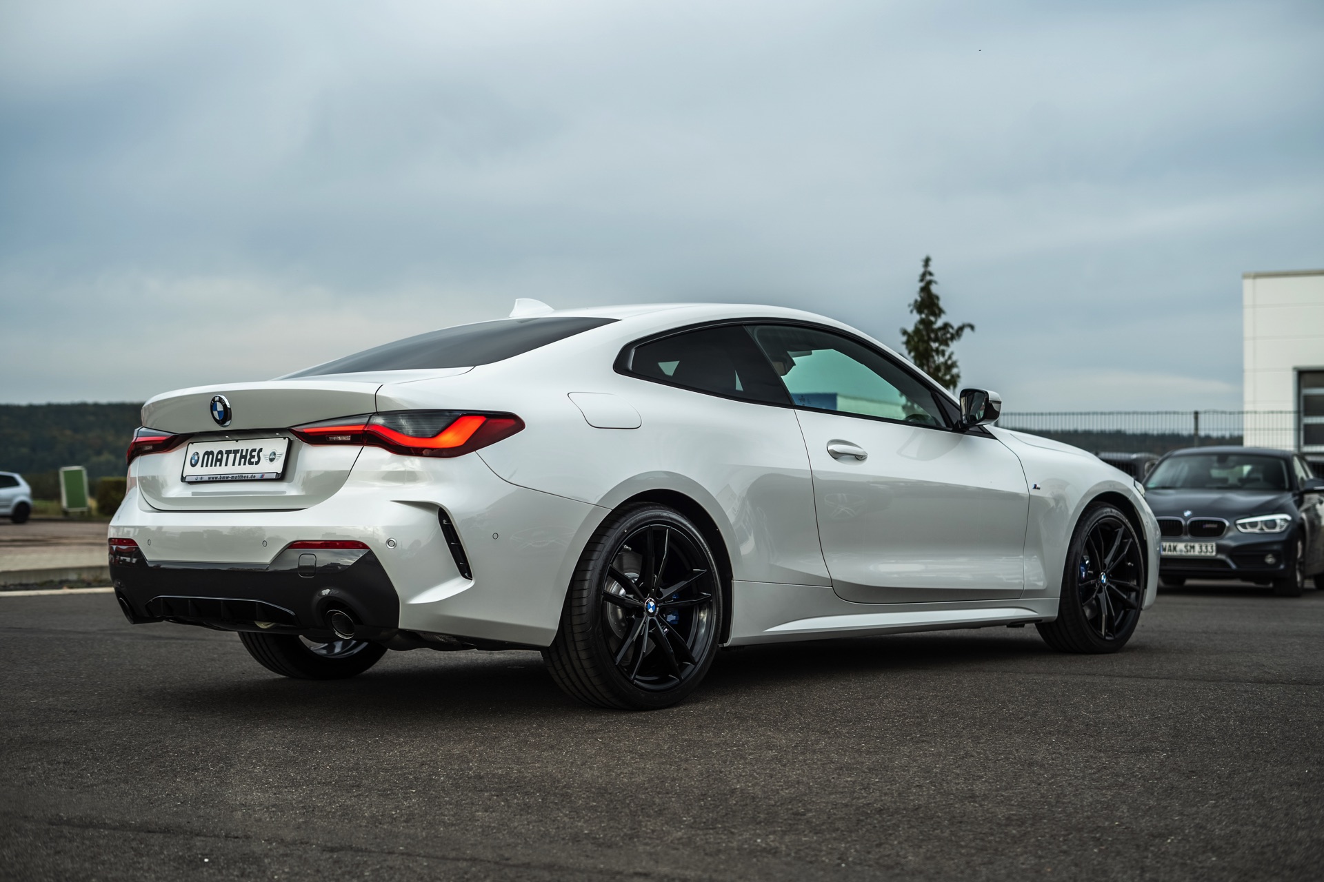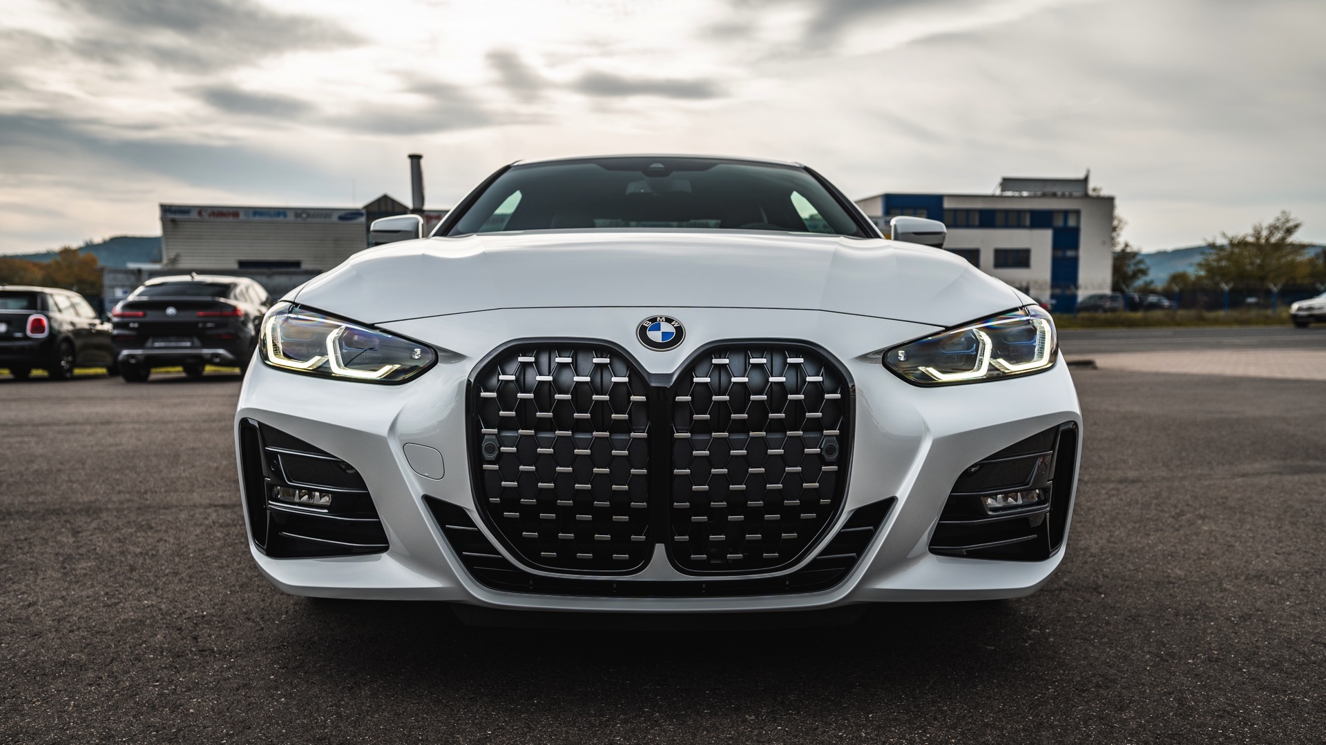Auf der Suche nach maximalem Kontrast führt kein Weg an der Kombination von Schwarz und Weiß vorbei. Im Fall eines weißen BMW 4er Coupé G22 mit M Sport-Paket lädt die Shadow Line mit erweiterten Umfängen dazu ein, die markante Doppel-Niere an der Front noch selbstbewusster in Szene zu setzen: Unsere Leserin Julia Schneider konnte einen entsprechend konfigurierten 4er auf dem Gelände der Autohaus Matthes GmbH in Tiefenort fotografieren, wobei ein kleines Detail die Niere zusätzlich betont: Das Fahrzeug trägt noch kein Kennzeichen an der Front, weshalb die zumindest außerhalb Nordamerikas gängige optische Unterbrechung des Lufteinlasses entfällt.