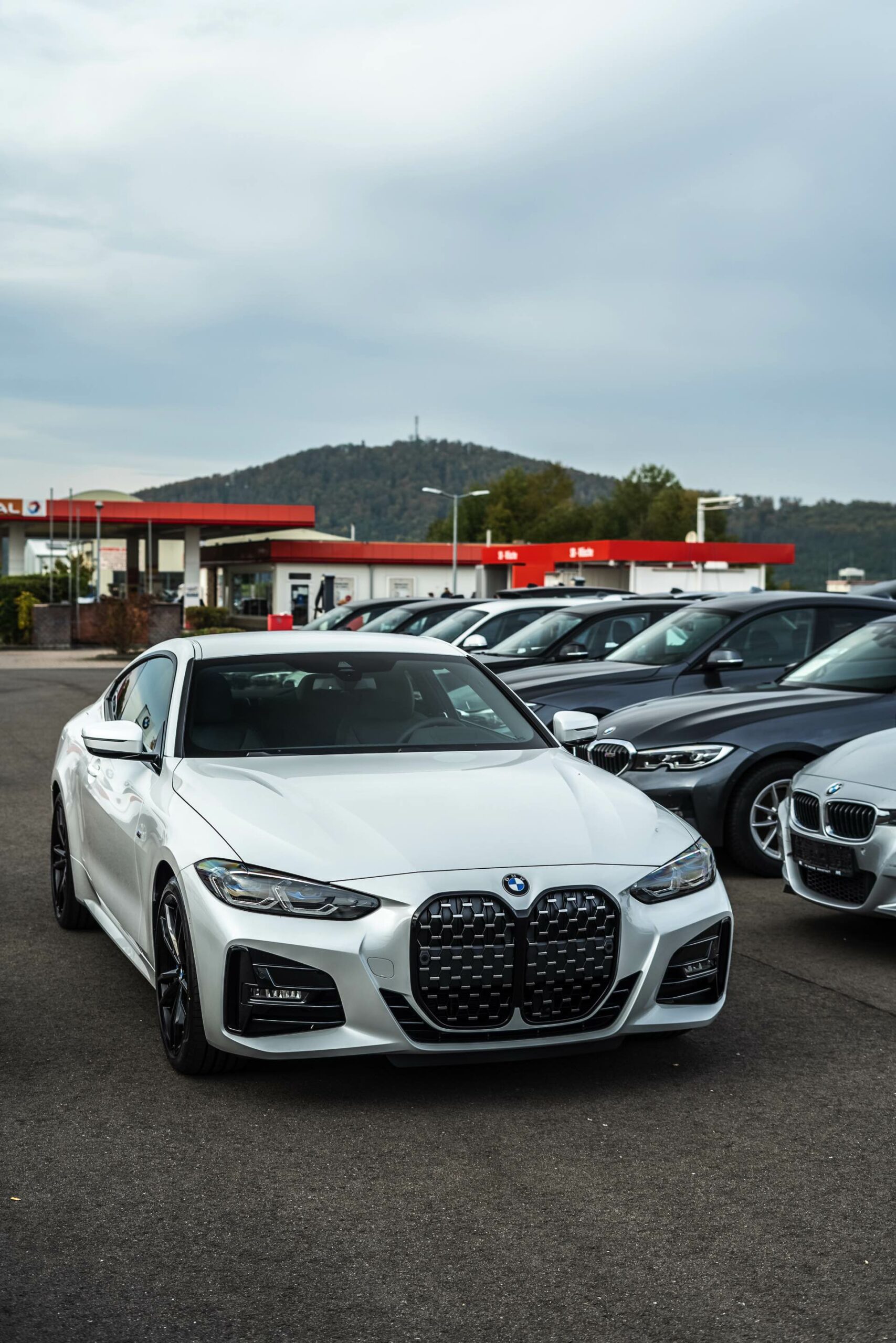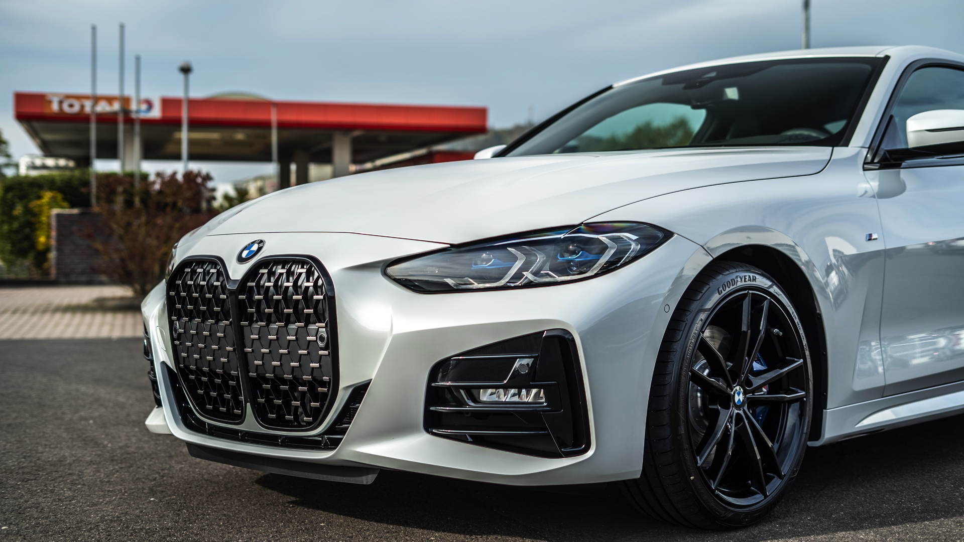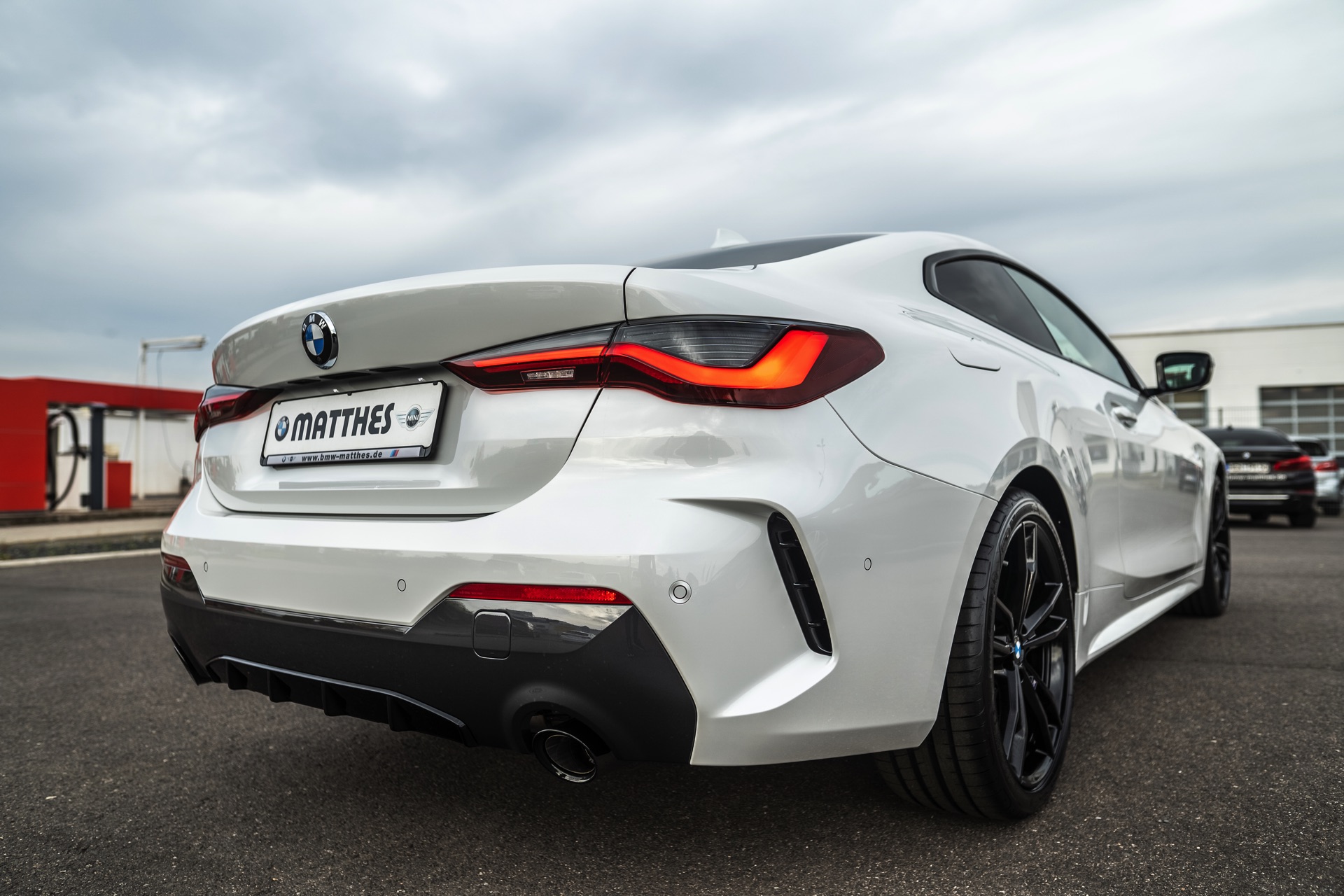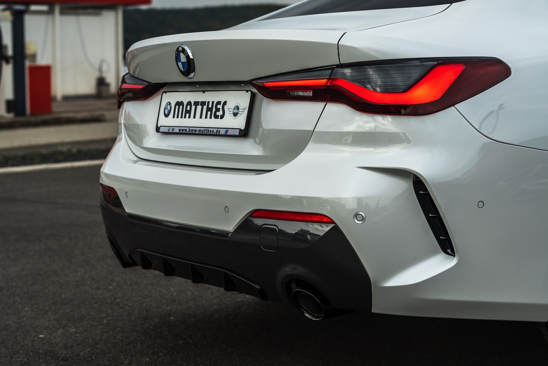 Auf der Suche nach maximalem Kontrast führt kein Weg an der Kombination von Schwarz und Weiß vorbei. Im Fall eines weißen BMW 4er Coupé G22 mit M Sport-Paket lädt die Shadow Line mit erweiterten Umfängen dazu ein, die markante Doppel-Niere an der Front noch selbstbewusster in Szene zu setzen: Unsere Leserin Julia Schneider konnte einen entsprechend konfigurierten 4er auf dem Gelände der Autohaus Matthes GmbH in Tiefenort fotografieren, wobei ein kleines Detail die Niere zusätzlich betont: Das Fahrzeug trägt noch kein Kennzeichen an der Front, weshalb die zumindest außerhalb Nordamerikas gängige optische Unterbrechung des Lufteinlasses entfällt.