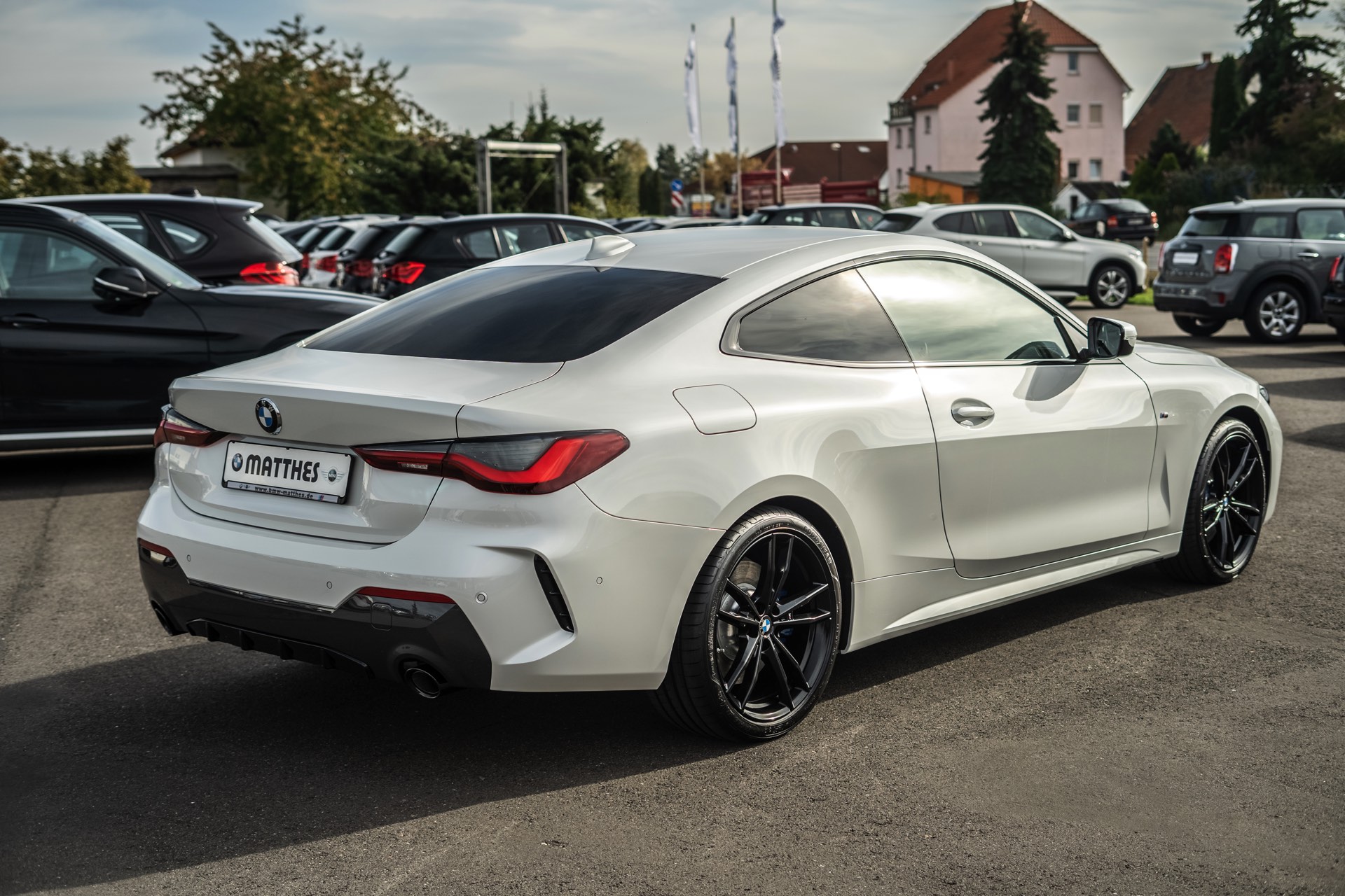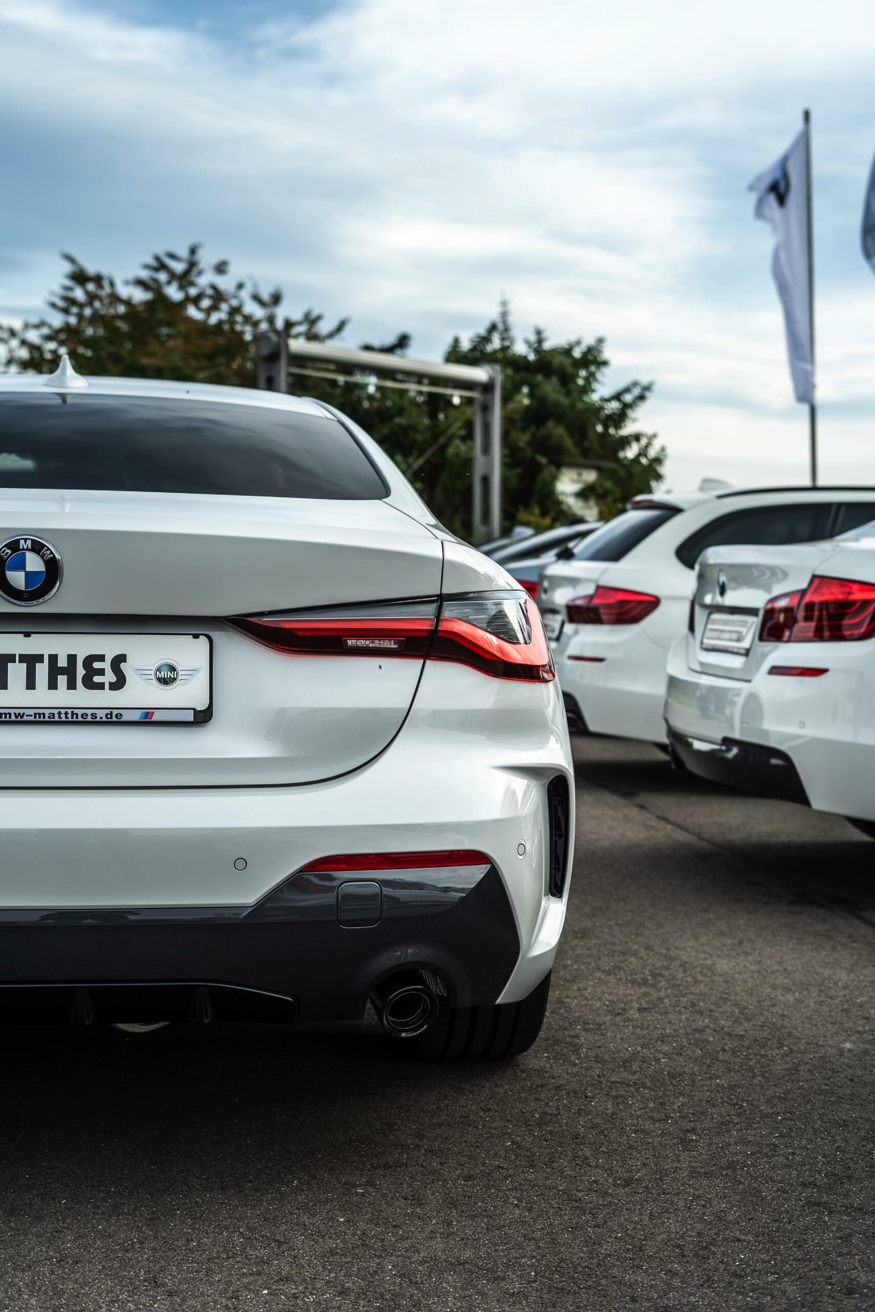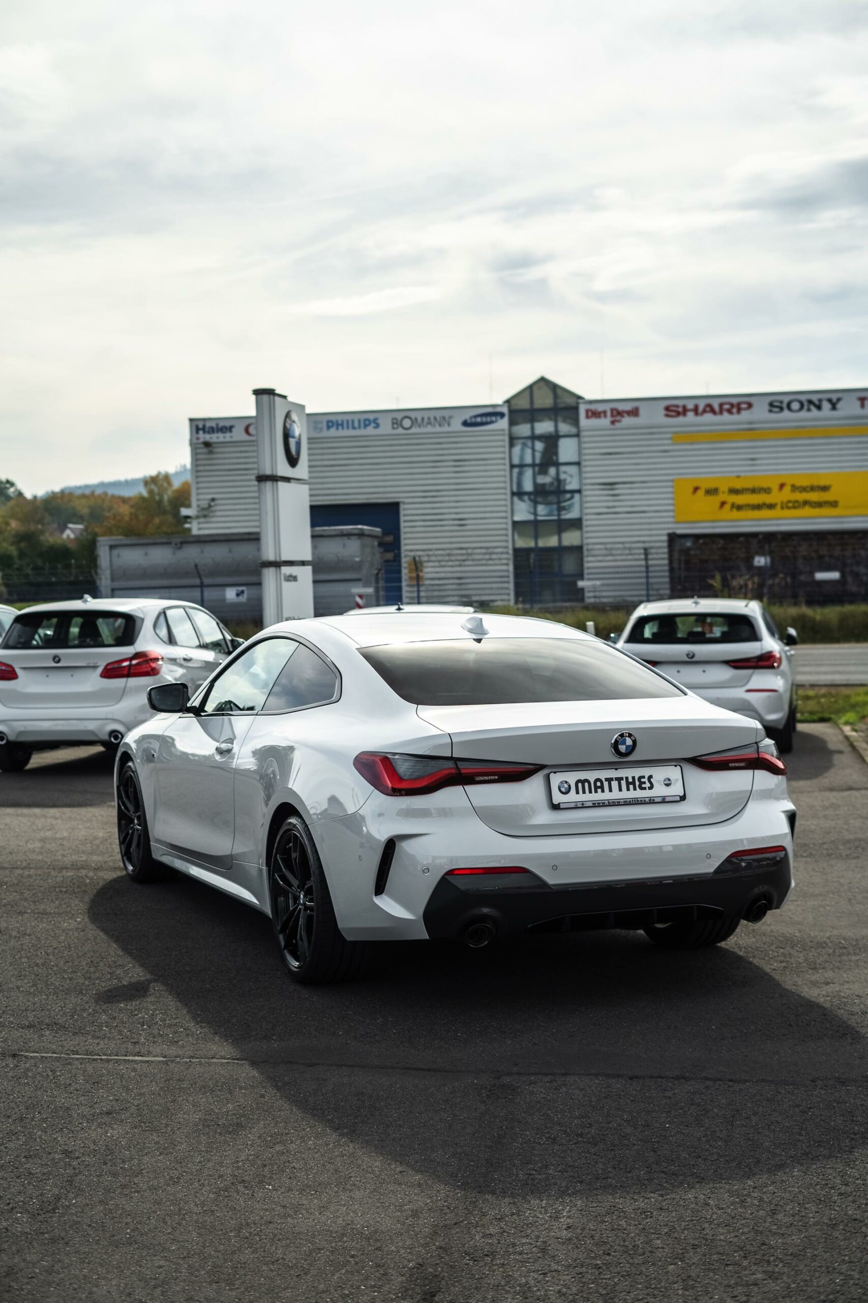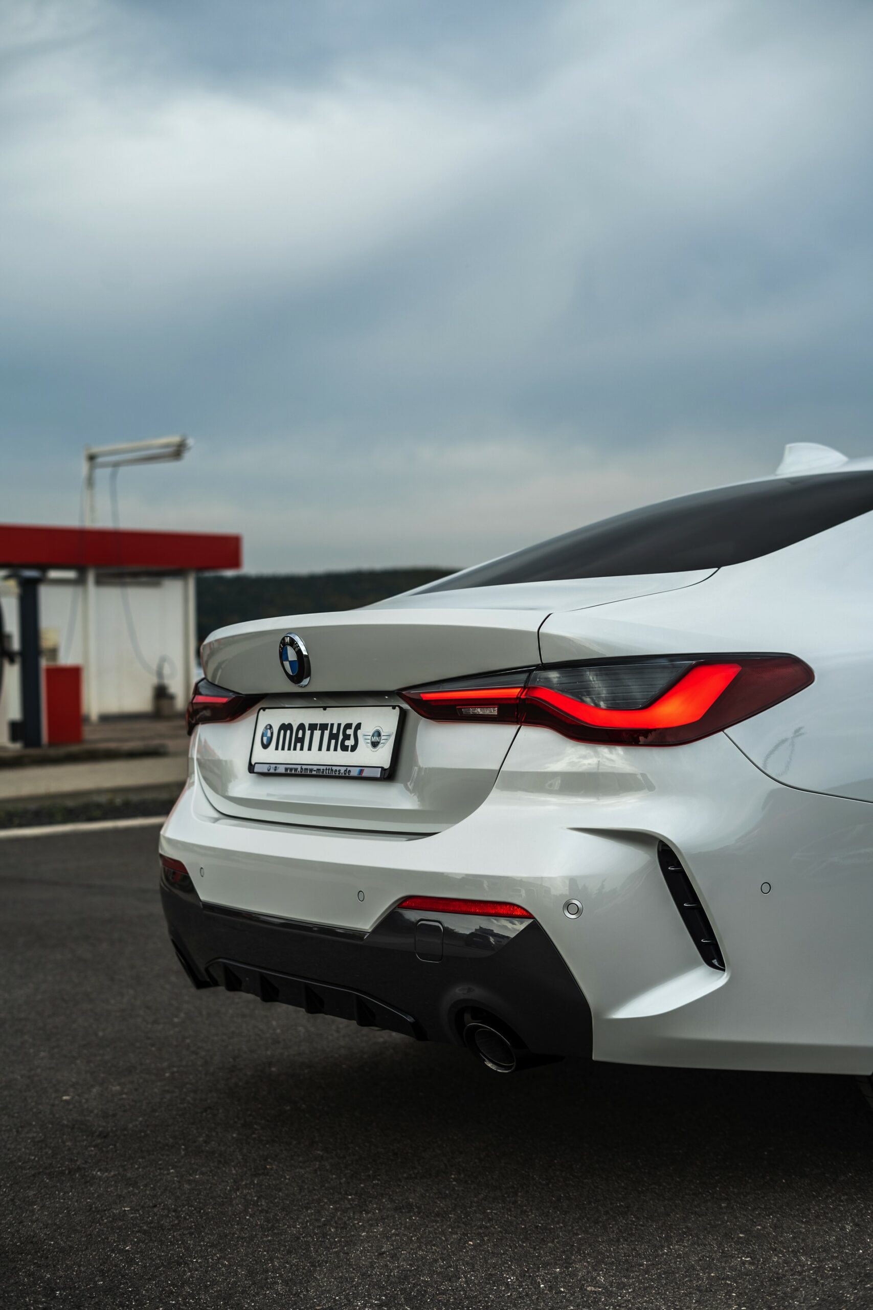 Auf der Suche nach maximalem Kontrast führt kein Weg an der Kombination von Schwarz und Weiß vorbei. Im Fall eines weißen BMW 4er Coupé G22 mit M Sport-Paket lädt die Shadow Line mit erweiterten Umfängen dazu ein, die markante Doppel-Niere an der Front noch selbstbewusster in Szene zu setzen: Unsere Leserin Julia Schneider konnte einen entsprechend konfigurierten 4er auf dem Gelände der Autohaus Matthes GmbH in Tiefenort fotografieren, wobei ein kleines Detail die Niere zusätzlich betont: Das Fahrzeug trägt noch kein Kennzeichen an der Front, weshalb die zumindest außerhalb Nordamerikas gängige optische Unterbrechung des Lufteinlasses entfällt.