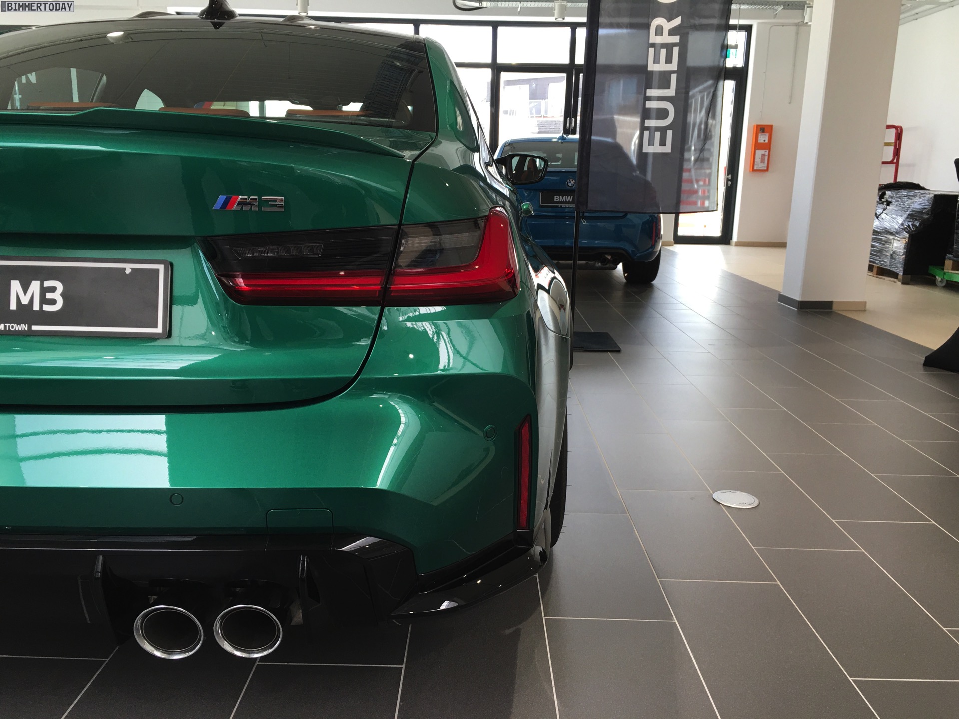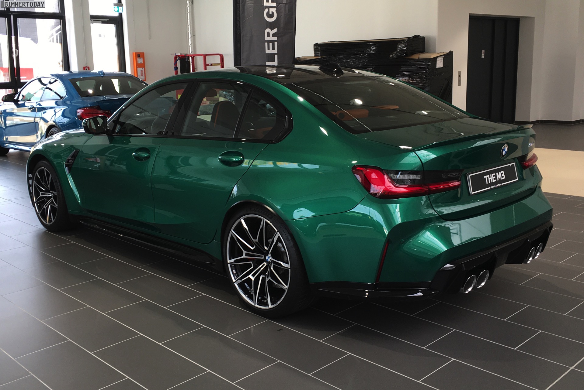 Mit dem neuen BMW M3 G80 debütiert im Frühjahr 2021 auch die neue Farbe Isle of Man Grün Metallic. Weitere Live-Eindrücke vom kräftigen Grün für alle Fans extrovertierter Fahrzeuge liefern uns einige Fotos von unserem Leser Marius, der die neue M3 Limousine bereits bei seinem BMW-Händler in Augenschein nehmen konnte. Wie bei Premieren üblich ist das Ausstellungsfahrzeug in der Launch-Farbe lackiert, die wir bereits von zahlreichen Presse-Fotos kennen und die zunächst exklusiv für M3 und M4 angeboten wird. Wie bei anderen Lackierungen dürfte diese Exklusivität nach einiger Zeit aufgehoben werden, wodurch auch andere M-Modelle sowie Individual-Fahrzeuge in Isle of Man Grün bestellt werden können.