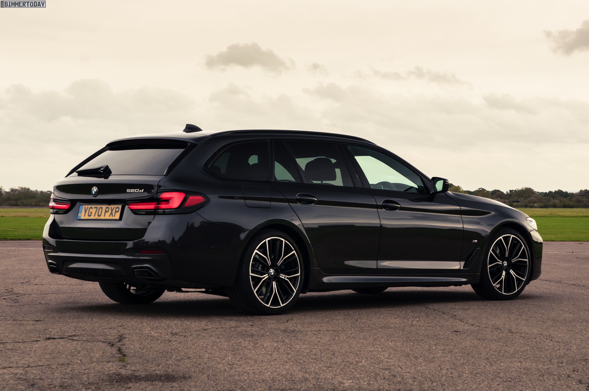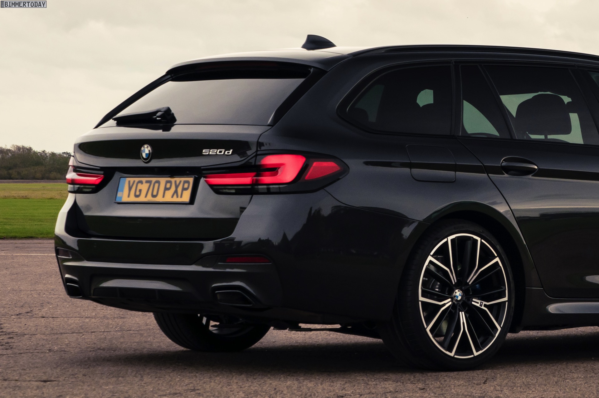 Fast komplett in Schwarz präsentiert sich der heimliche Star der 5er-Reihe auf einigen neuen Fotos aus England: Der BMW 520d Touring G31 LCI steht zwar stets im Schatten der stärkeren Modelle, ist aber ganz entscheidend für den Erfolg des Business-Kombis in Europa. Auch wenn andere Modelle wie der ebenfalls frisch überarbeitete 530d weit mehr Aufmerksamkeit auf sich ziehen, ist der 520d Touring auf dem europäischen Heimatkontinent der unumstrittene Bestseller innerhalb der 5er-Familie.