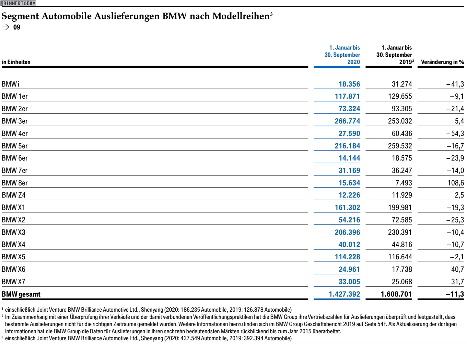 Wie üblich veröffentlicht BMW mit dem Quartalsbericht auch die weltweiten Absatz-Zahlen der einzelnen Baureihen. Seit Jahresbeginn bewegen sich dabei nur einige wenige Baureihen im Plus: 3er, 8er, Z4 sowie X6 und X7 sind die einzigen Modelle, die trotz Corona über dem Vorjahreszeitraum liegen. Diese und weitere Infos finden sich in den hier eingebundenen Grafiken: