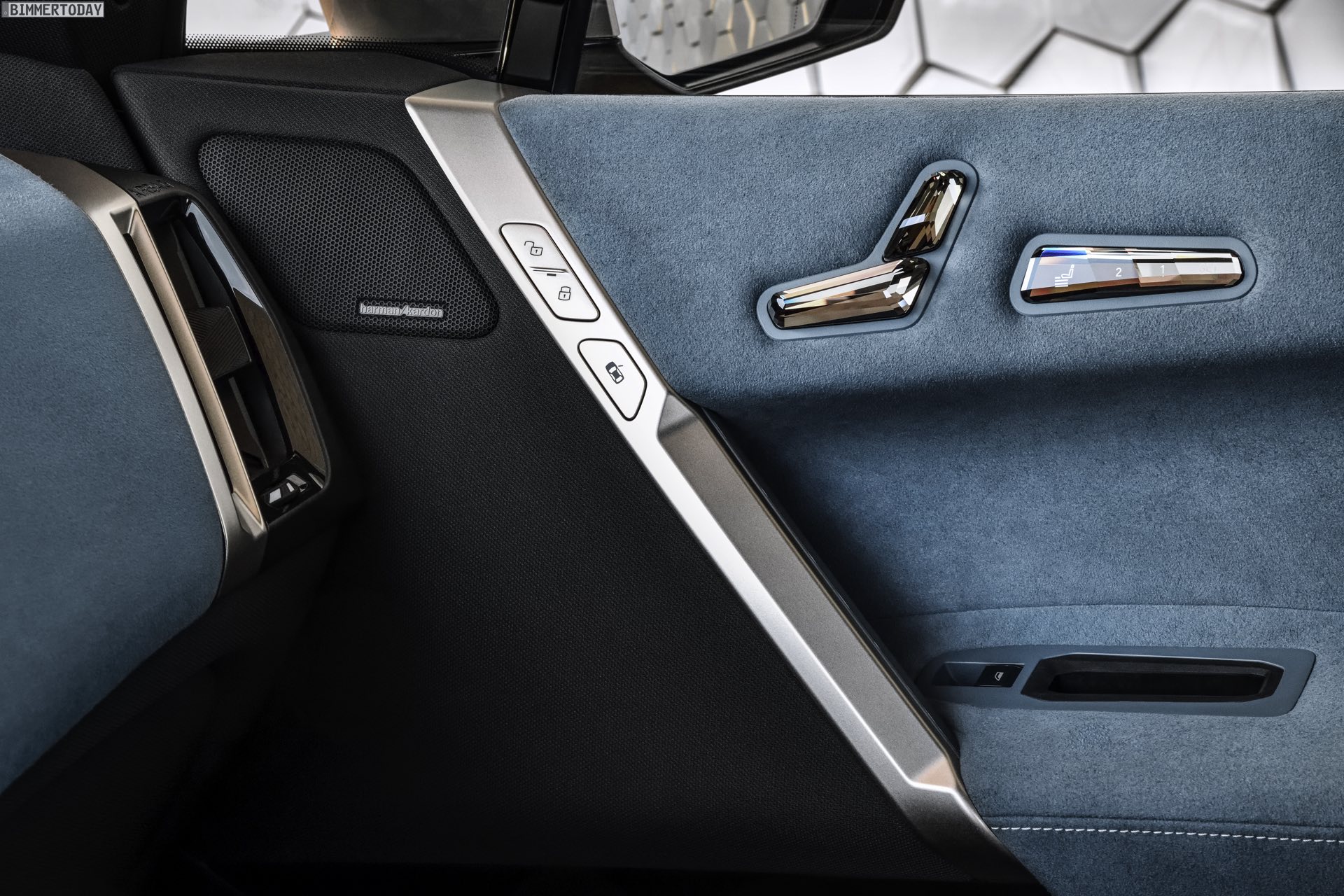 Noch interessanter wird die Shy Tech-Umsetzung aber im Innenraum: Selbstverständlich verfügt der BMW iX über ein leistungsstarkes Soundsystem, aber Lautsprecher sucht man weitgehend vergeblich. Die filigranen Luftausströmer sind zwar nicht so unsichtbar integriert wie die teilweise unter Stoff verborgenen und auf Wunsch sogar in den Kopfstützen der Sitze verbauten Lautsprecher, aber ebenfalls so dezent und unauffällig wie möglich in das Design eingebettet. Auch der Projektor des Head-up-Displays wurde so in die Armaturentafel integriert, dass er wesentlich weniger ins Auge fällt als bei allen bisherigen BMW-Modellen.