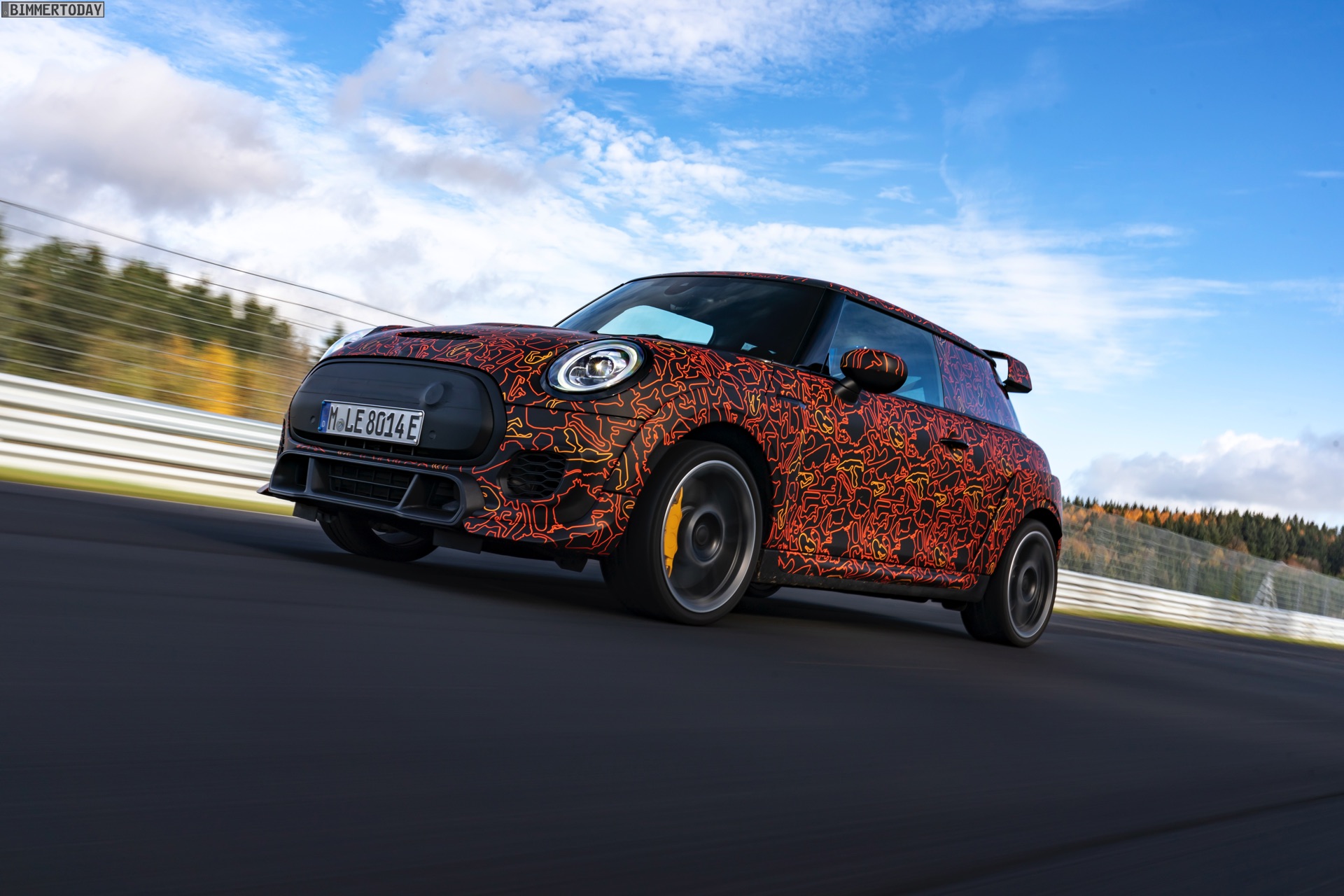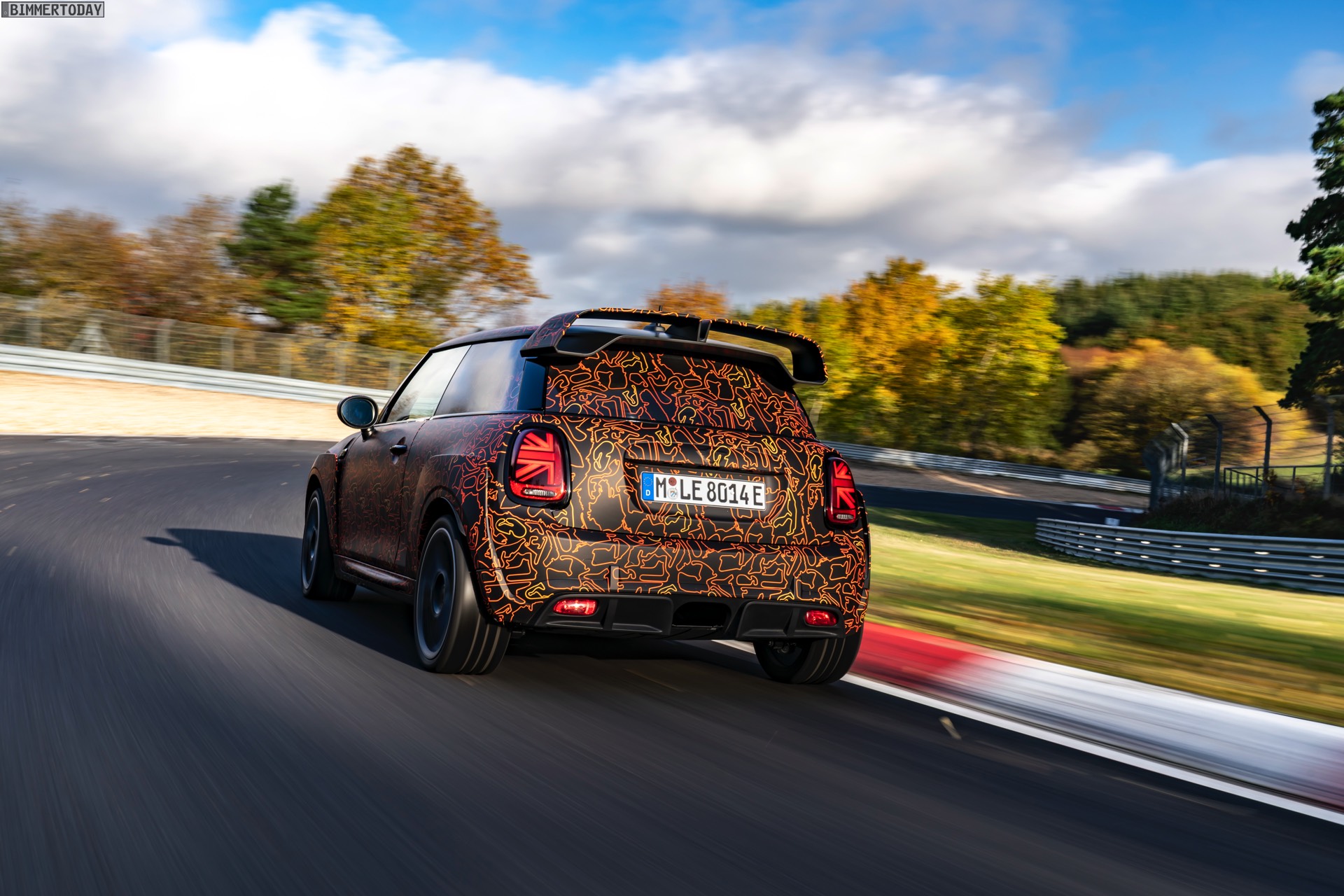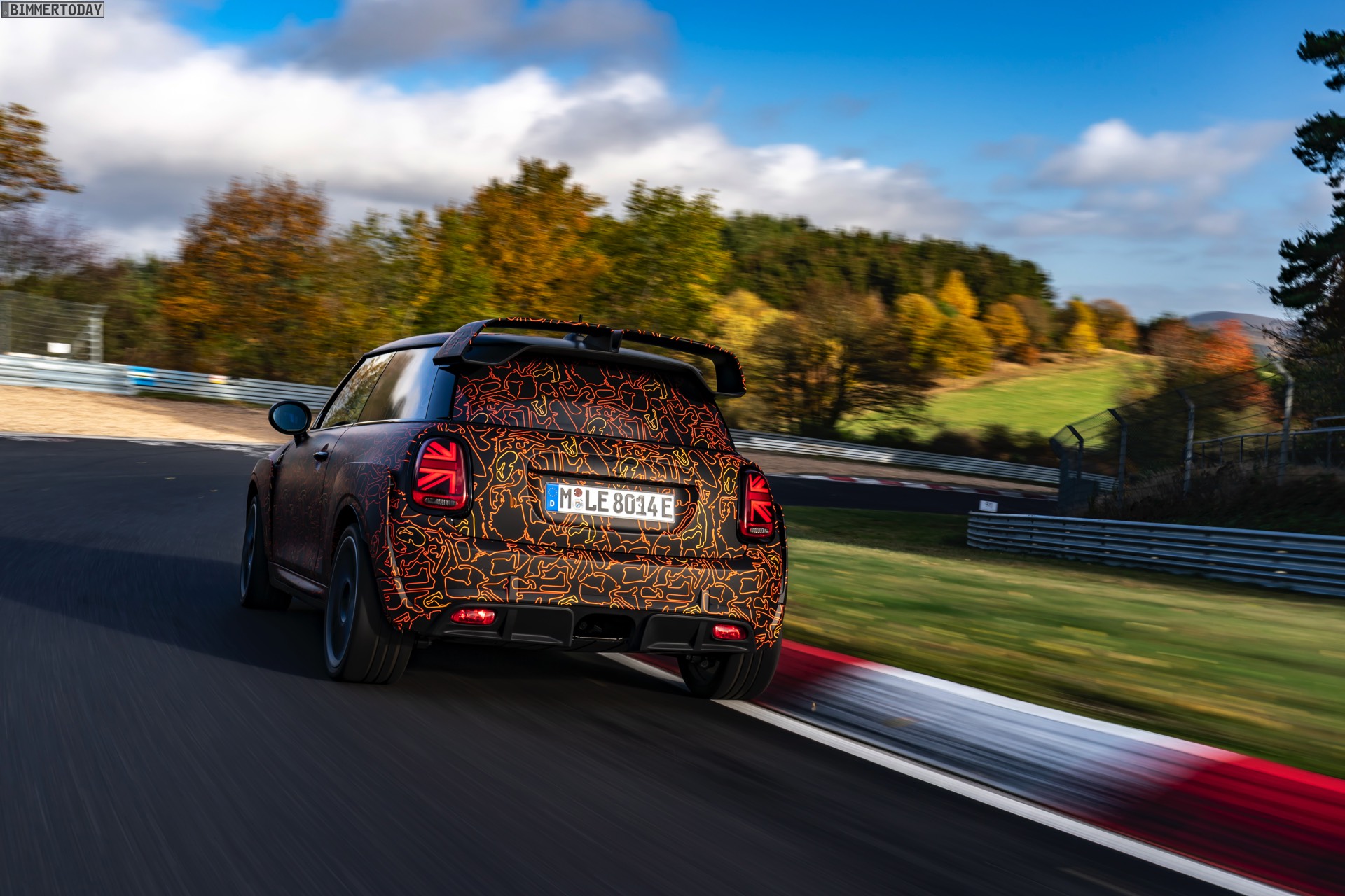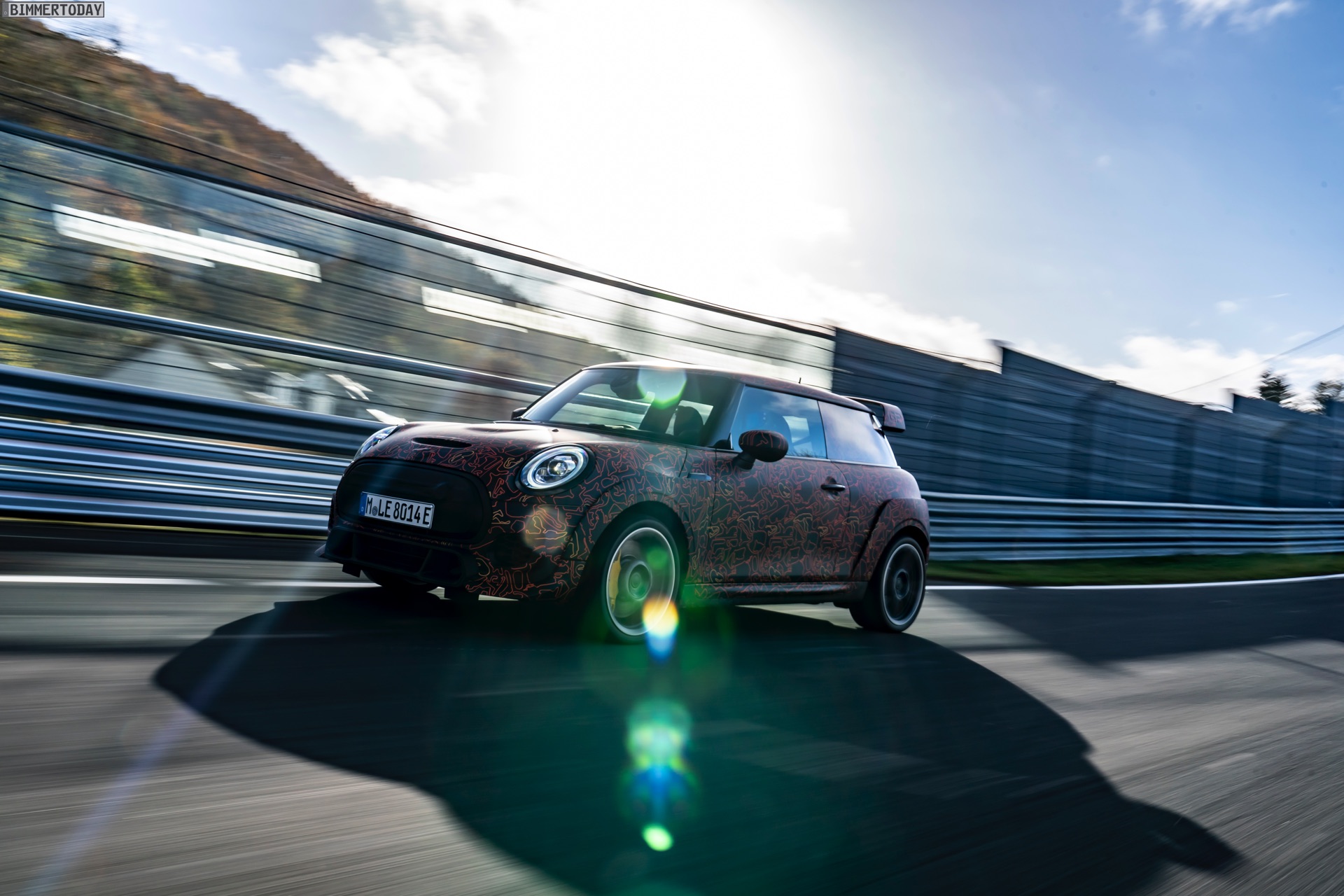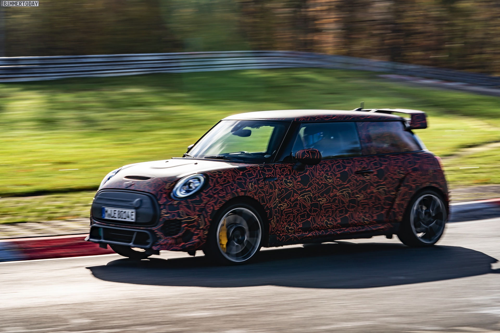 Mit lautlosen Erlkönigen auf der Nürburgring Nordschleife hat MINI schon in den letzten Tagen Aufmerksamkeit erregt, nun folgt die offizielle Bestätigung: Auch die besonders sportlichen Modelle der John Cooper Works-Familie werden elektrifiziert! Auf den aktuellen Erlkönig-Fotos sehen wir ein Fahrzeug, dessen unter Tarnfolie versteckte Formen zunächst stark an das Topmodell MINI JCW GP erinnern – bis man bemerkt, dass in der Mitte des Diffusors statt dicker Endrohre nur ein schwarzes Loch prangt. Aber wer braucht schon Endrohre, wenn er keinen Verbrenner an Bord hat und ohne lokale Emissionen unterwegs ist? Eben.