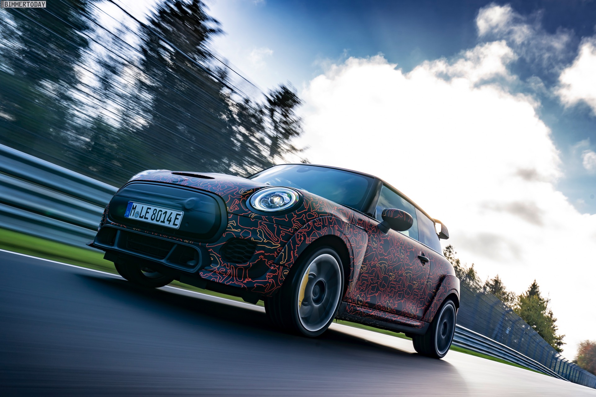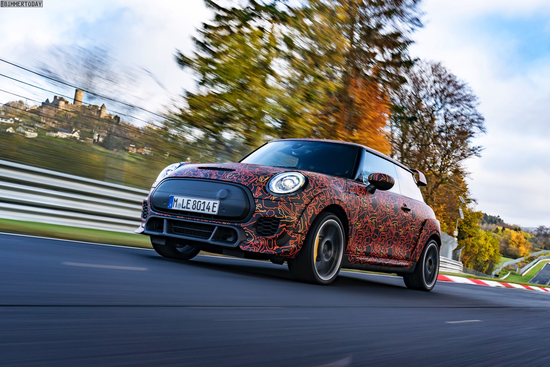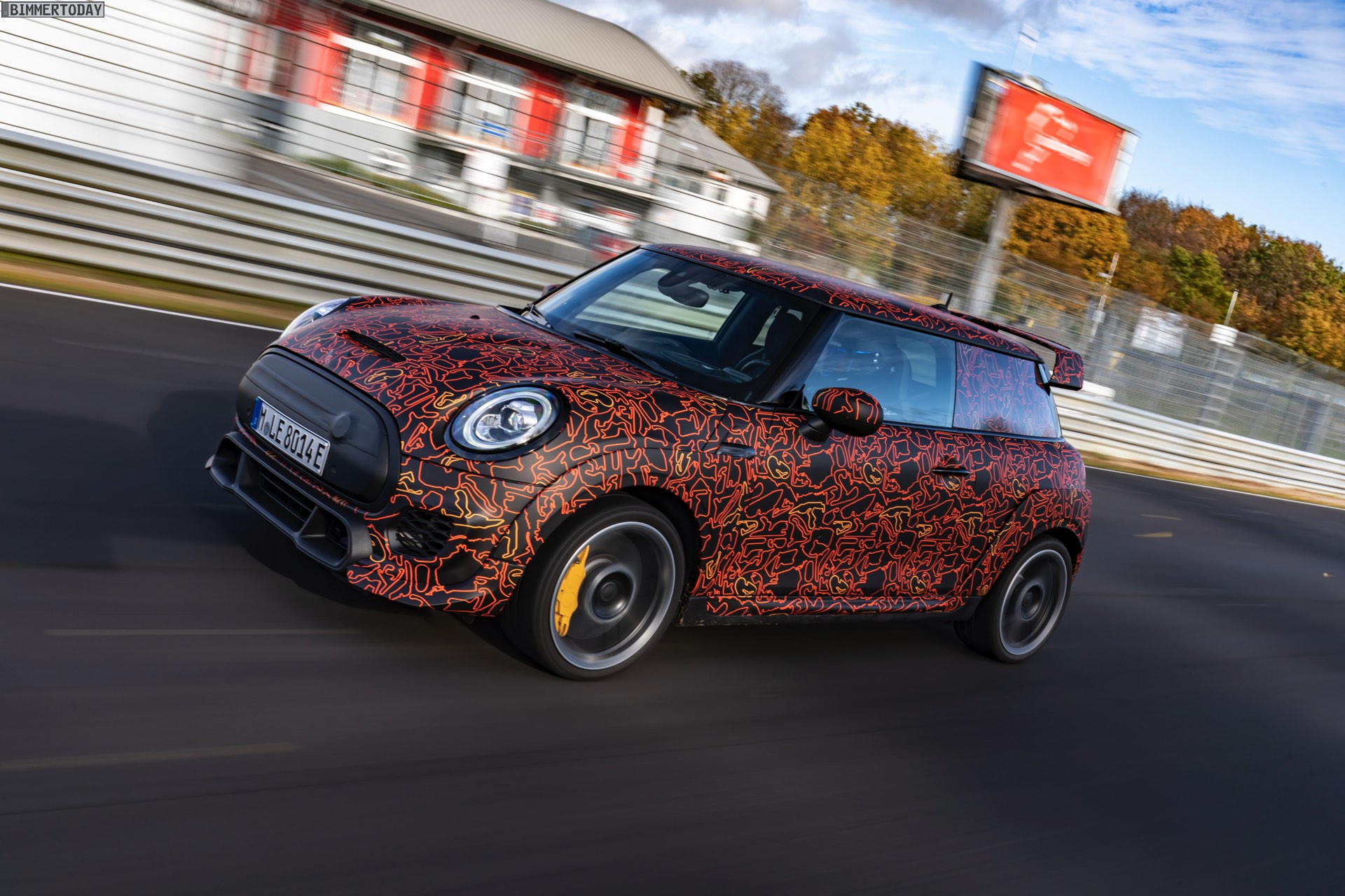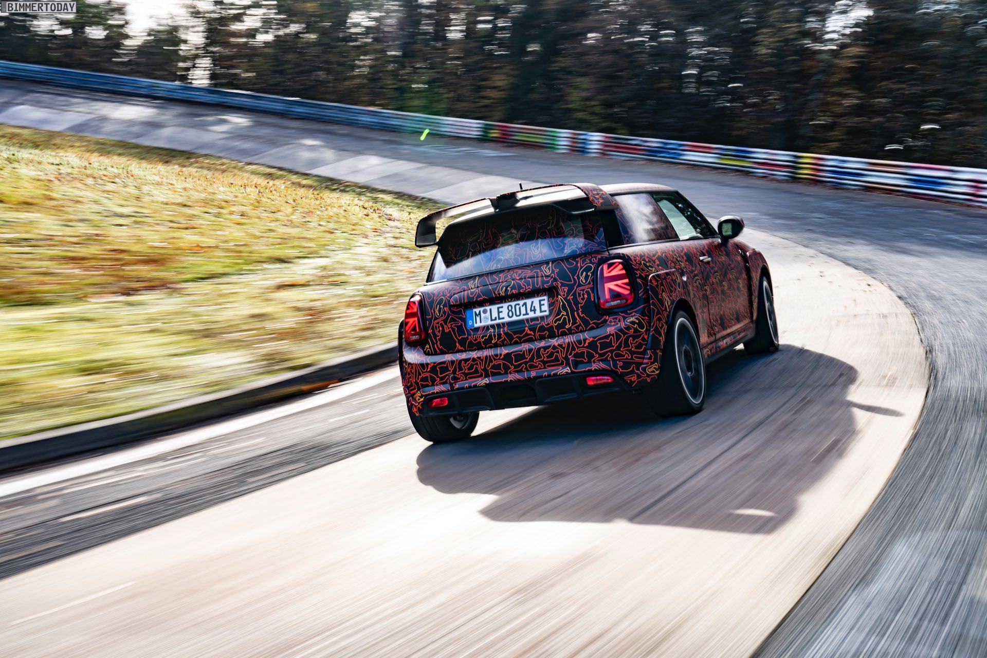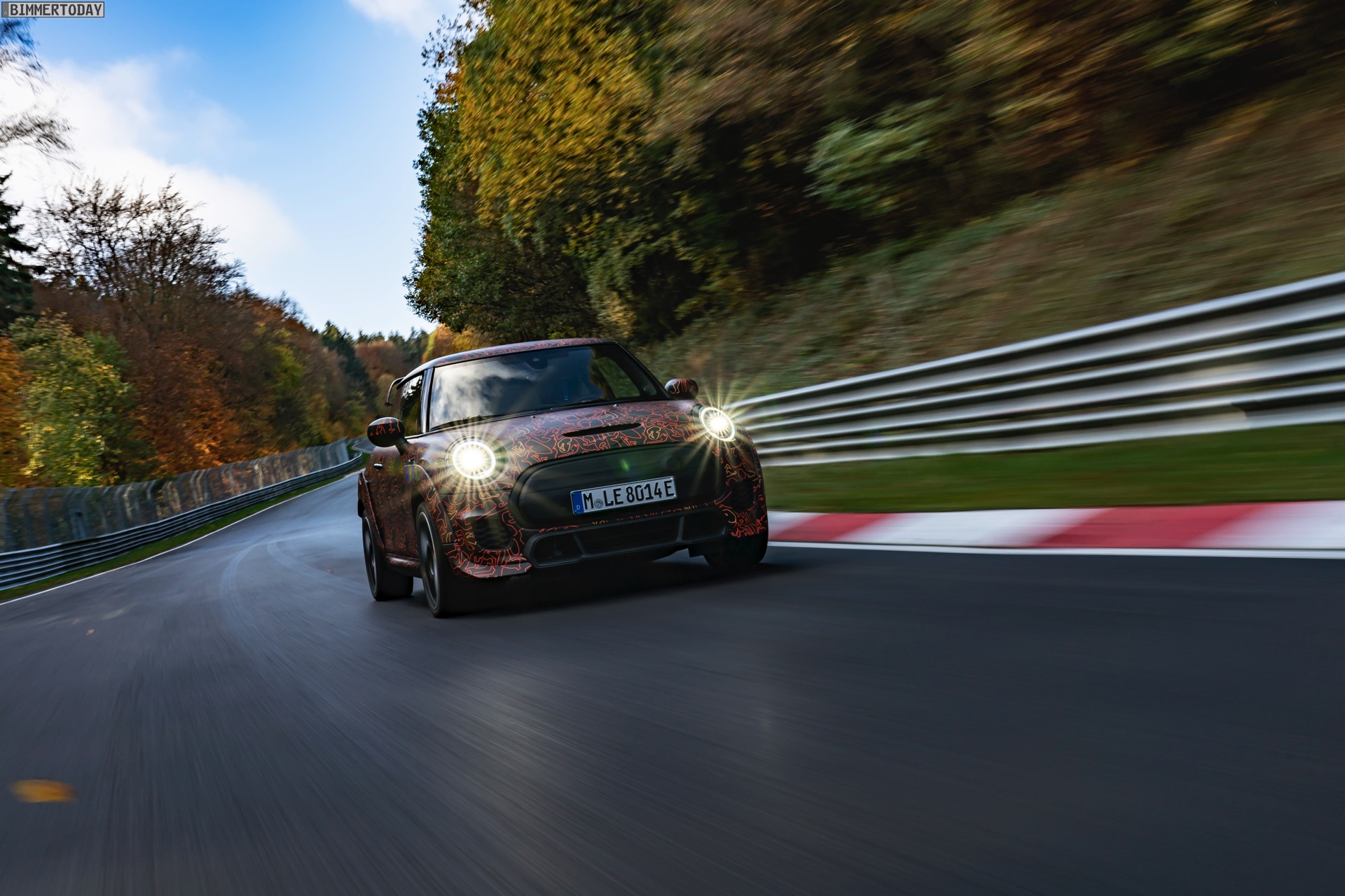 Mit lautlosen Erlkönigen auf der Nürburgring Nordschleife hat MINI schon in den letzten Tagen Aufmerksamkeit erregt, nun folgt die offizielle Bestätigung: Auch die besonders sportlichen Modelle der John Cooper Works-Familie werden elektrifiziert! Auf den aktuellen Erlkönig-Fotos sehen wir ein Fahrzeug, dessen unter Tarnfolie versteckte Formen zunächst stark an das Topmodell MINI JCW GP erinnern – bis man bemerkt, dass in der Mitte des Diffusors statt dicker Endrohre nur ein schwarzes Loch prangt. Aber wer braucht schon Endrohre, wenn er keinen Verbrenner an Bord hat und ohne lokale Emissionen unterwegs ist? Eben.