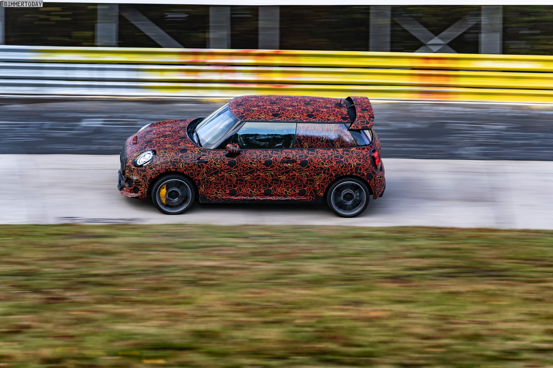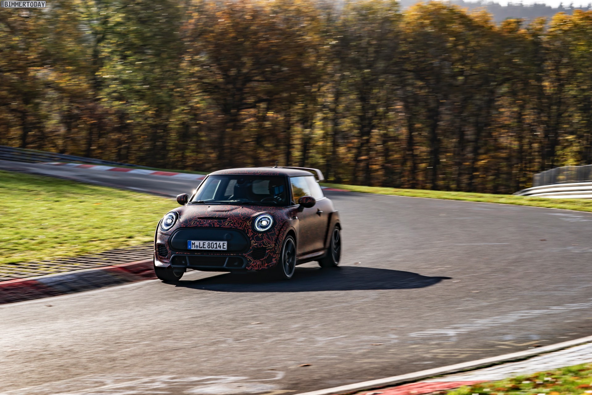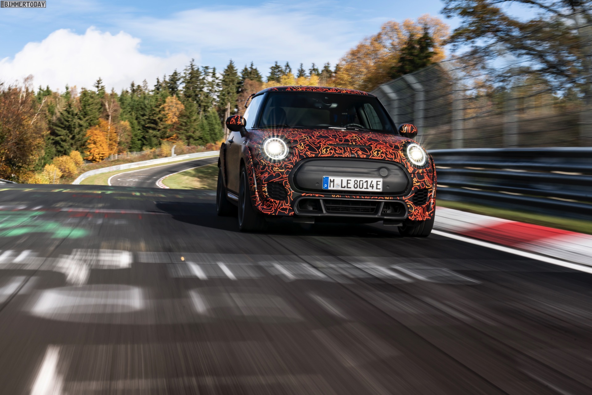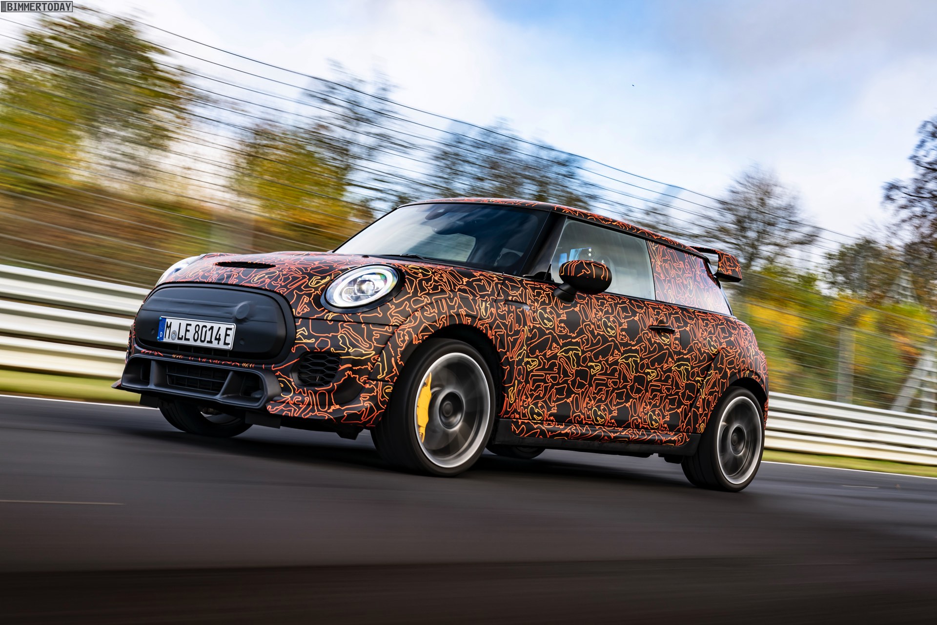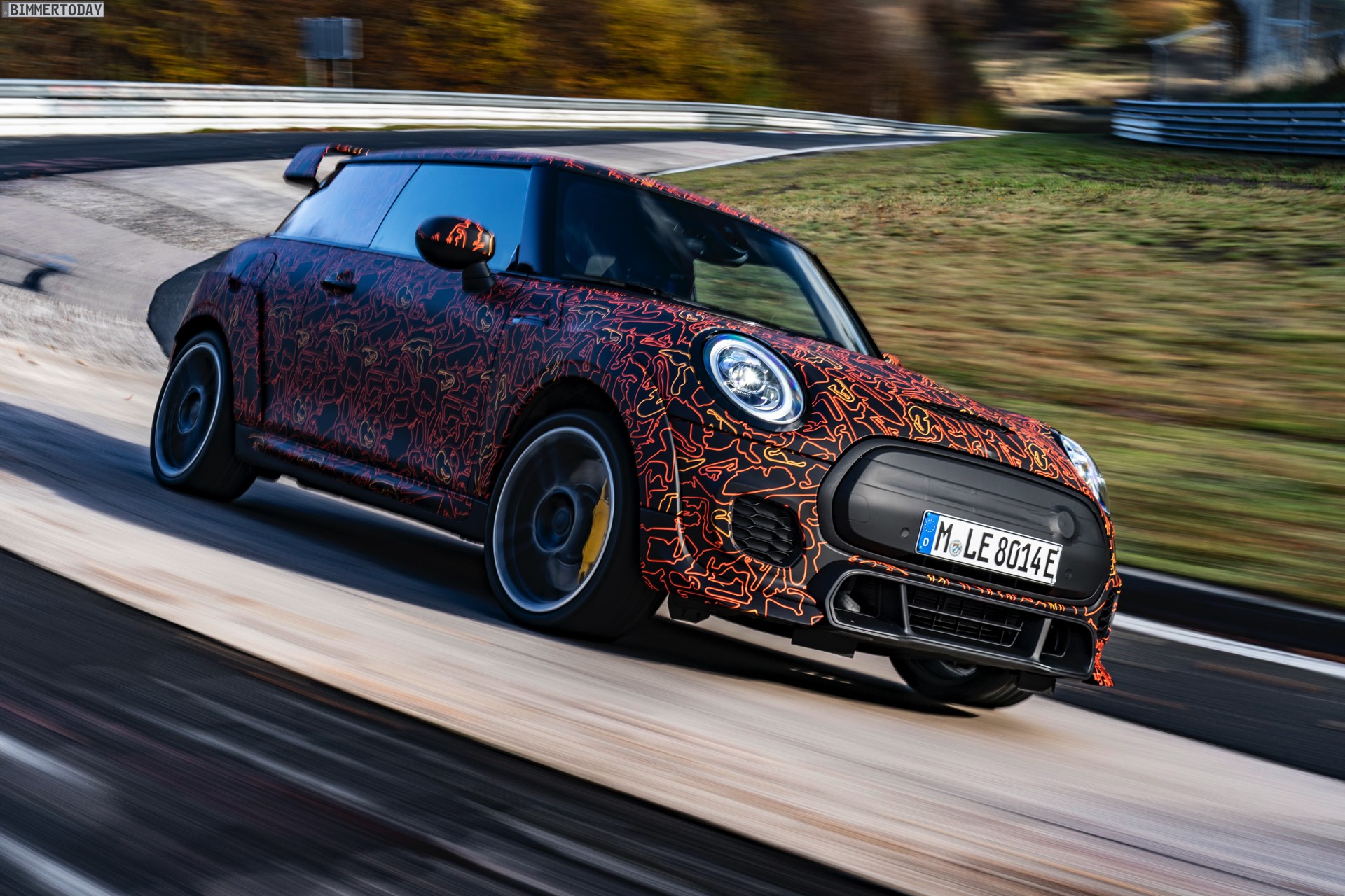 Mit lautlosen Erlkönigen auf der Nürburgring Nordschleife hat MINI schon in den letzten Tagen Aufmerksamkeit erregt, nun folgt die offizielle Bestätigung: Auch die besonders sportlichen Modelle der John Cooper Works-Familie werden elektrifiziert! Auf den aktuellen Erlkönig-Fotos sehen wir ein Fahrzeug, dessen unter Tarnfolie versteckte Formen zunächst stark an das Topmodell MINI JCW GP erinnern – bis man bemerkt, dass in der Mitte des Diffusors statt dicker Endrohre nur ein schwarzes Loch prangt. Aber wer braucht schon Endrohre, wenn er keinen Verbrenner an Bord hat und ohne lokale Emissionen unterwegs ist? Eben.