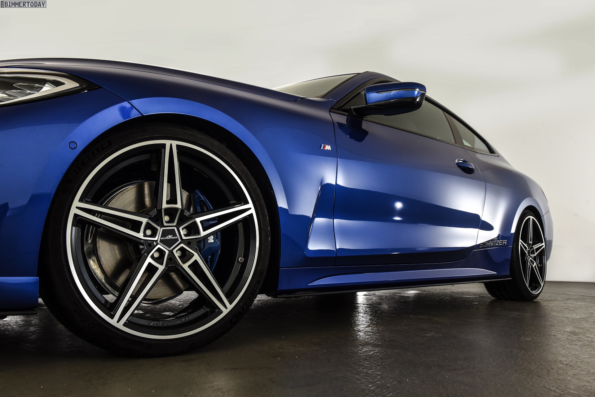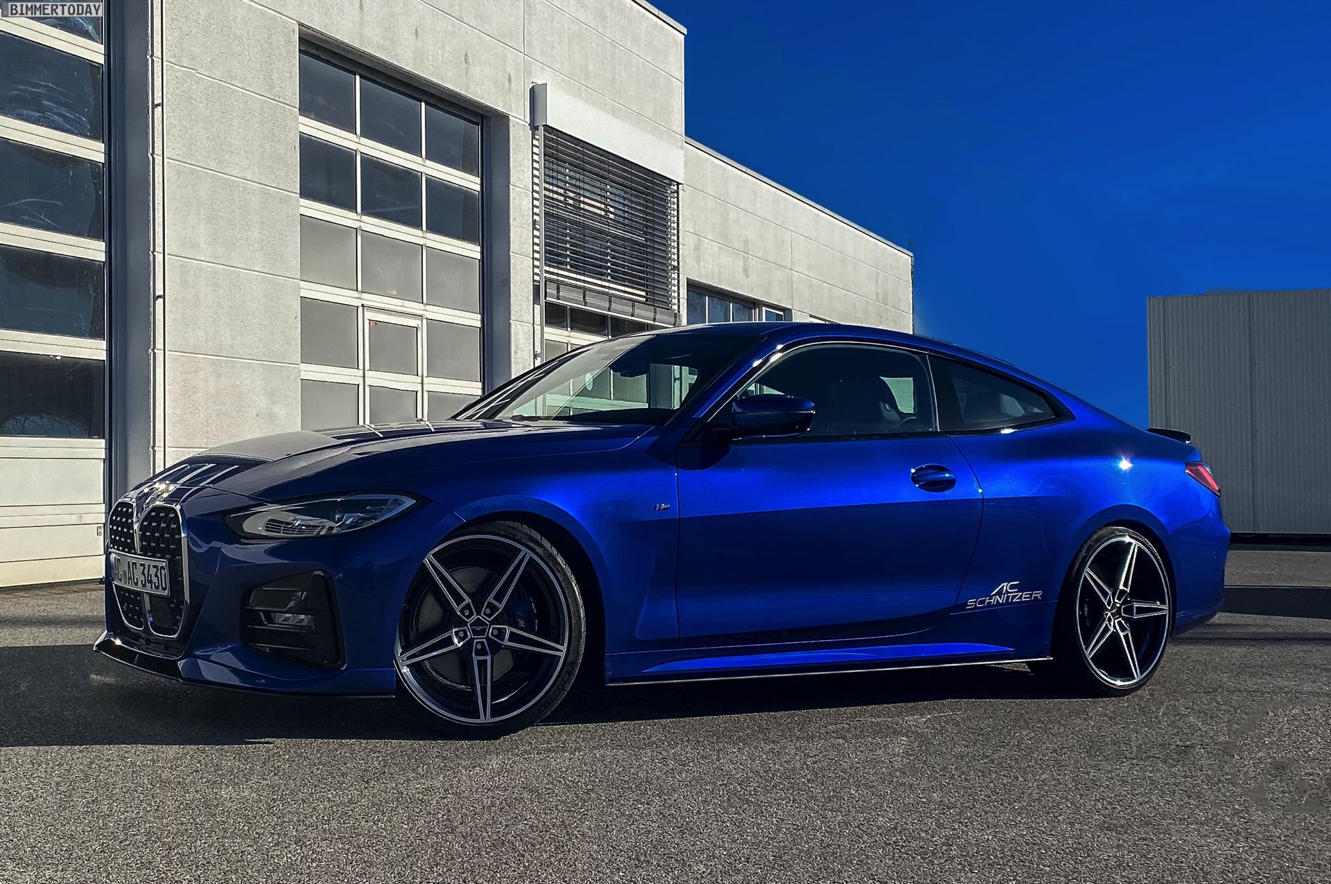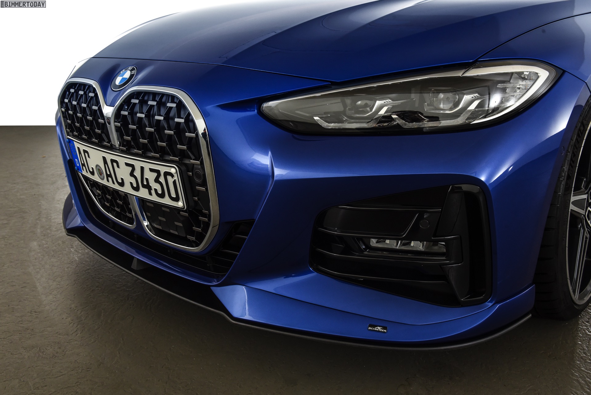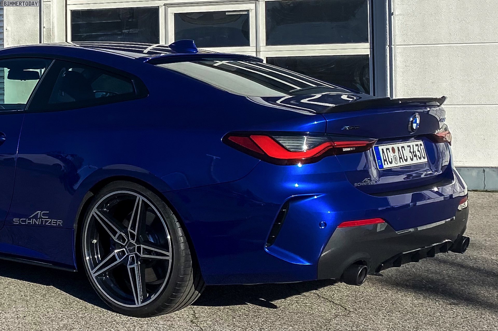 Schon heute erhältlich sind die je nach Präferenz 19 oder 20 Zoll großen und einfarbig Anthrazit oder Bicolor-lackierten Leichtmetallräder AC1. Auf den Fotos sehen wir die zweifarbige Variante mit Teilen in Silber und Anthrazit auf einem BMW 4er G22 M Sport in Portimao Blau Metallic. Ebenfalls schon verfügbar sind die Fahrwerksfedern-Sätze für 30 Millimeter Tieferlegung an Vorder- und Hinterachse, ein komplettes Sportfahrwerk mit 20 bis 30 Millimeter Tieferlegung und diverse Endrohr-Blenden für die Abgasanlage. Hierbei können sich die Tuning-Fans zwischen den Varianten verchromt, schwarz und Carbon entscheiden.