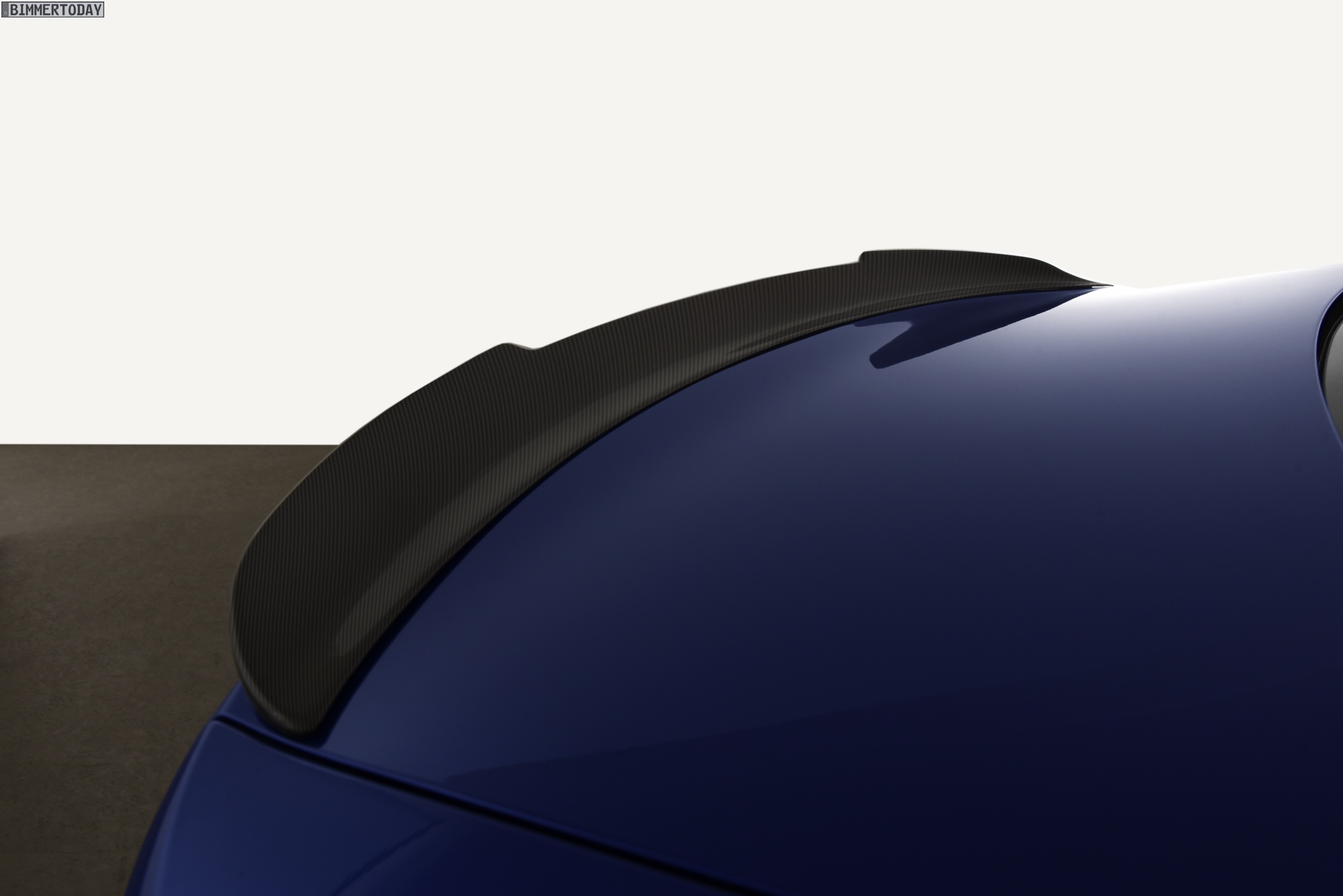 Noch sind nicht alle auf den aktuellen Fotos gezeigten Teile erhältlich, daher stehen auch noch nicht alle Details zur Verfügung. Im Februar nächsten Jahres sollen die auf dem M Sport-Paket aufbauenden seitlichen Frontspoiler-Aufsätze, der auf ganzer Breite verbaute Frontsplitter und die Seitenschweller verfügbar sein. Ein paar Zentimeter weiter oben spielen der Dachkanten-Spoiler und die Carbon-Heckspoiler-Lippe, die mit ihrer mittigen Vertiefung ein wenig an den Look der CS-Modelle aus Garching erinnert.