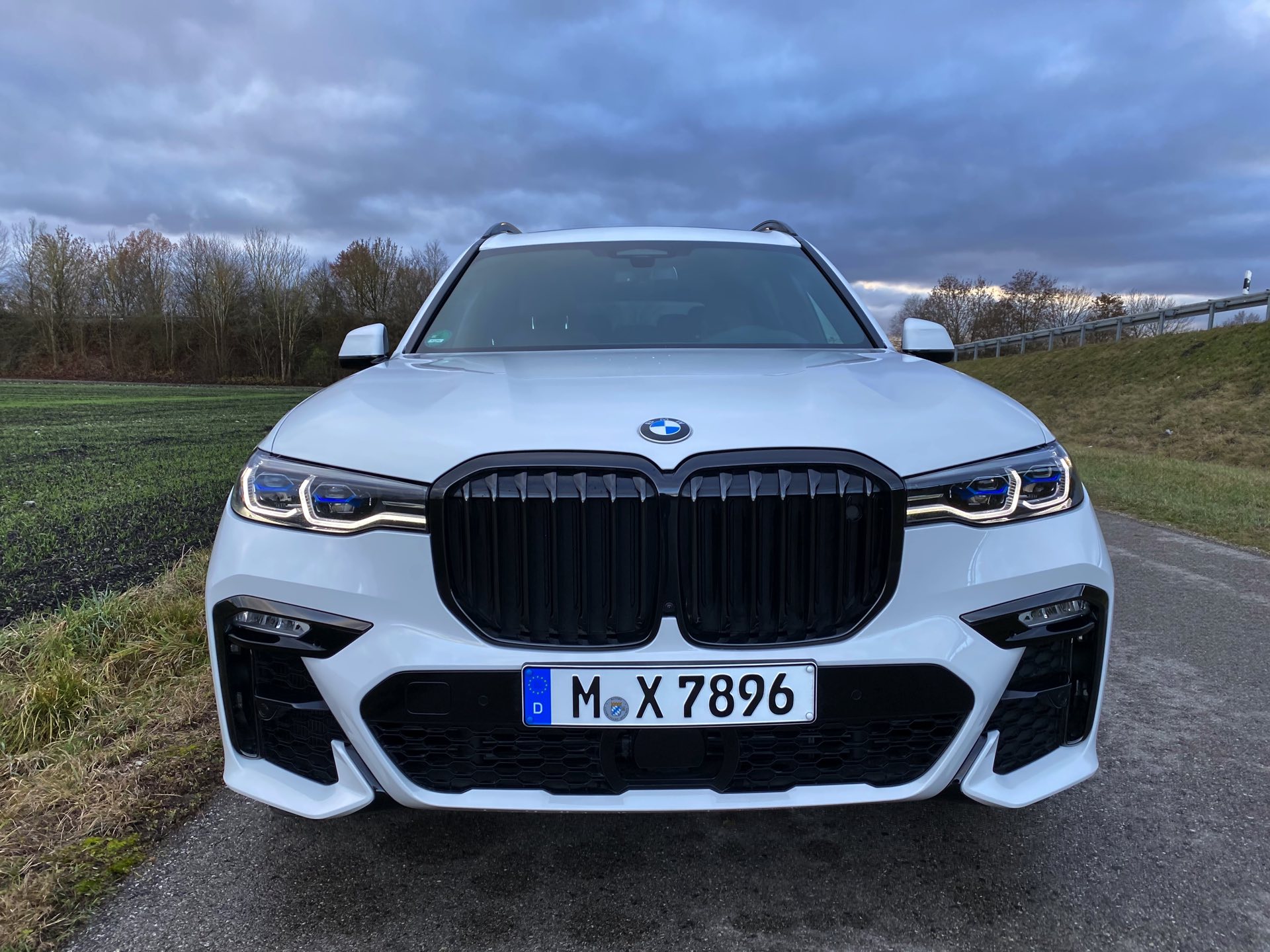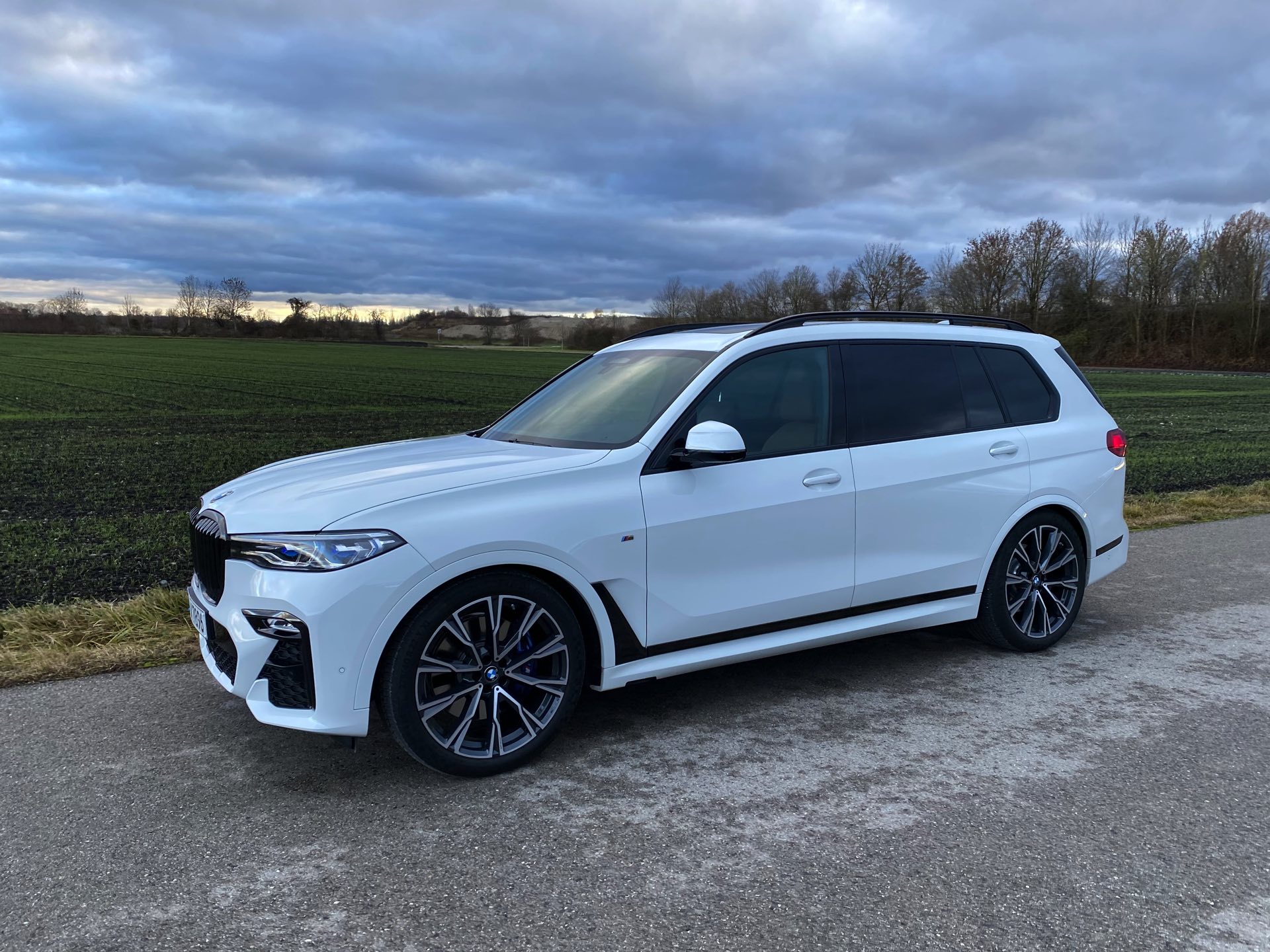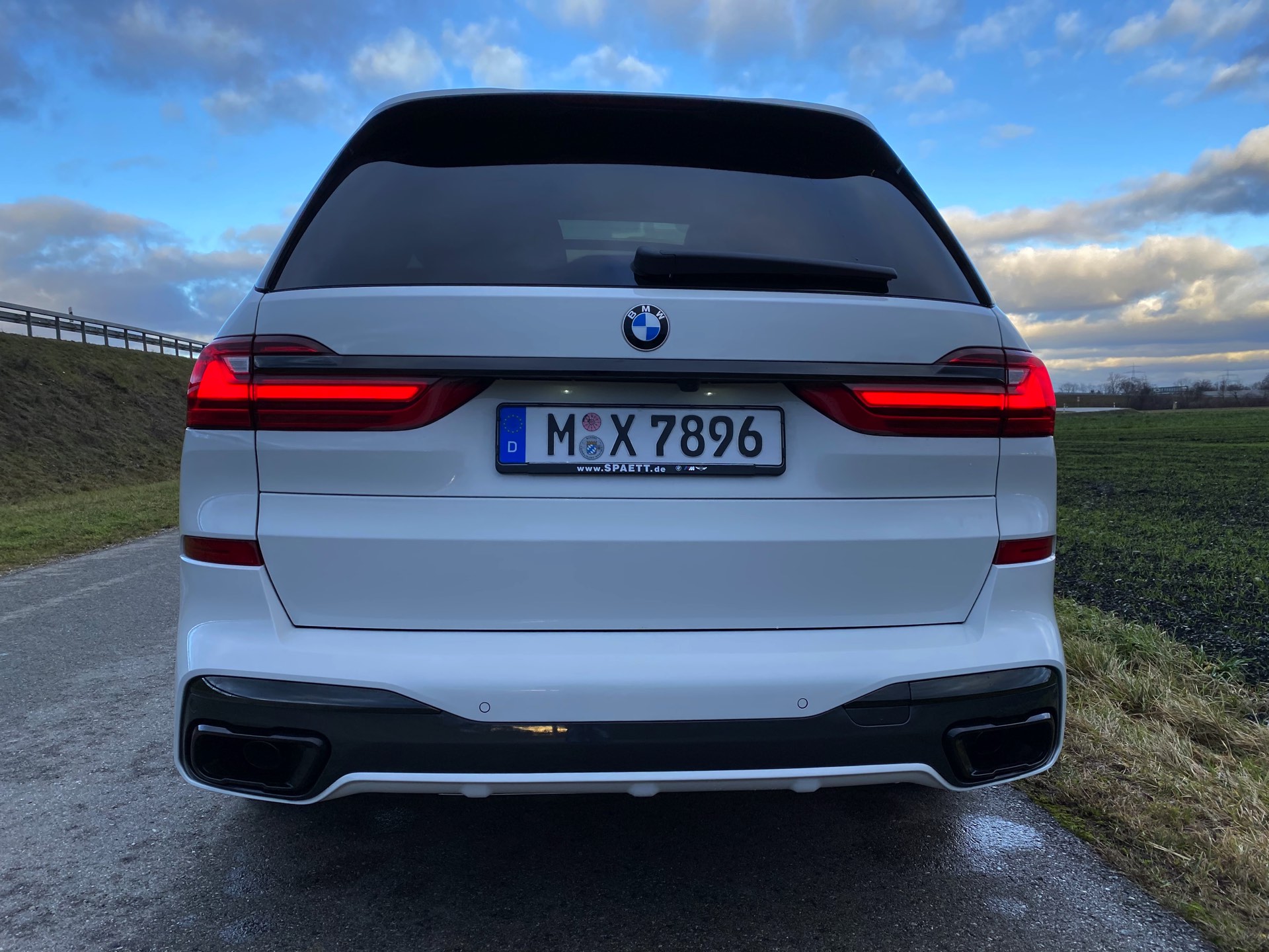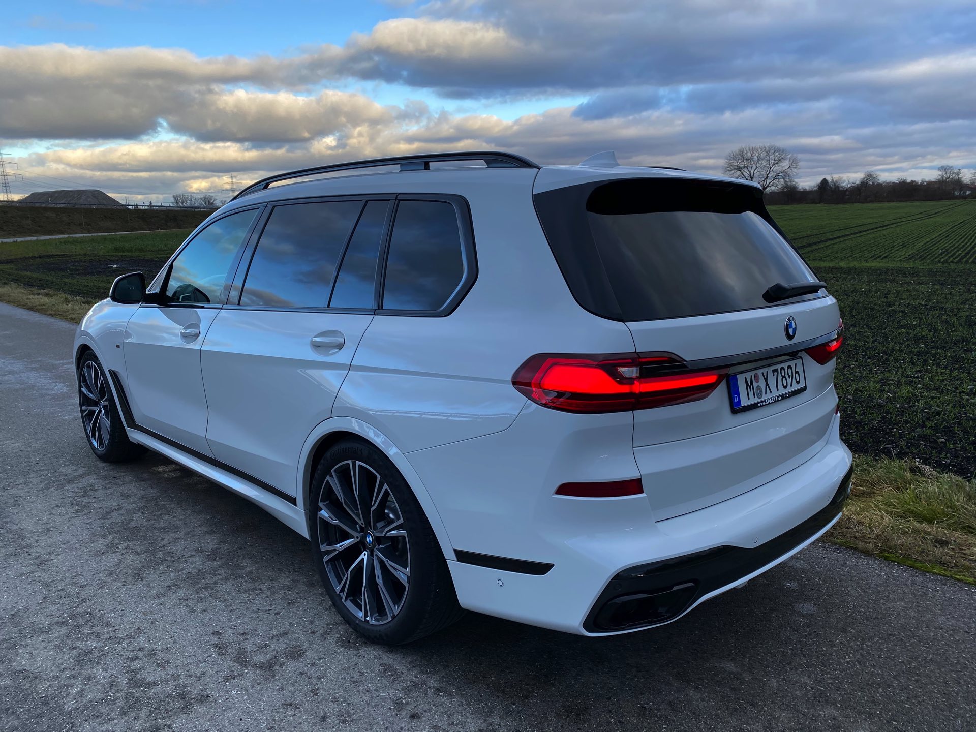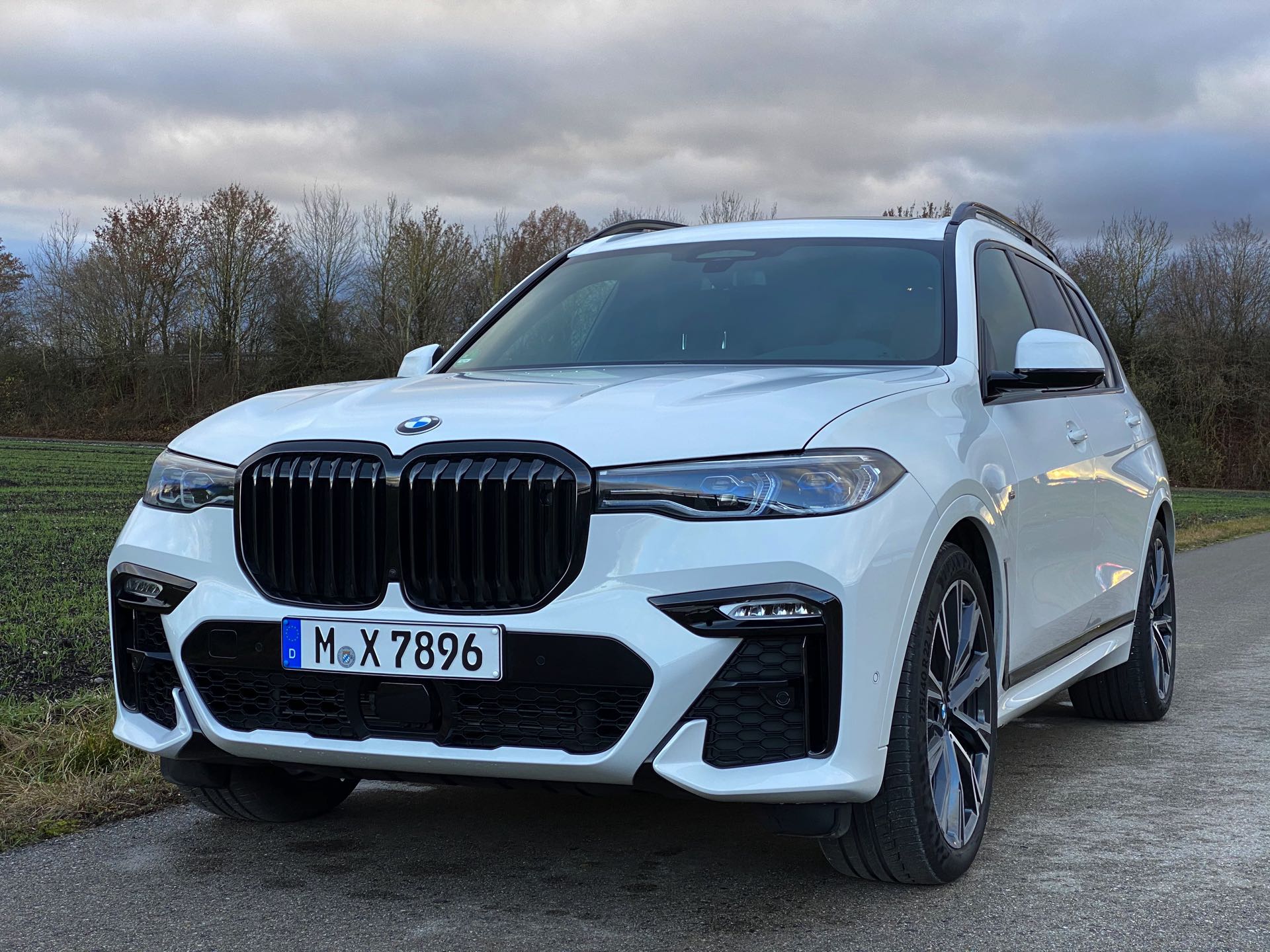 Einer der letzten BMW X7 M50d ist seit kurzem in Besitz unseres Lesers Jürgen, der sich bei der Konfiguration für den Schwarz-Weiß-Modus entschieden hat: Sein Exemplar kombiniert die Lackierung in Alpinweiß mit der erweiterten Shadow Line, die für zahlreiche dunkle Akzente sorgt. Größter Blickfang ist dabei zweifellos die komplett in Hochglanz-Schwarz gehaltene Doppel-Niere, die wie bei jedem BMW X7 mit ihrem stattlichen Format beeindruckt. Mit den Fenster-Einfassungen für die ab der B-Säule abgedunkelten Scheiben, der Dachreling, den seitlichen Zierleisten und der Einfassung für die Endrohre gibt es aber aus jeder Perspektive noch ein paar weitere Elemente, die das Schwarz-Weiß-Spiel überzeugend fortsetzen. Ein weiterer Hingucker sind die BMW Individual Leichtmetallräder Y-Speiche 758 I Bicolor im mächtigen 22-Zoll-Format.