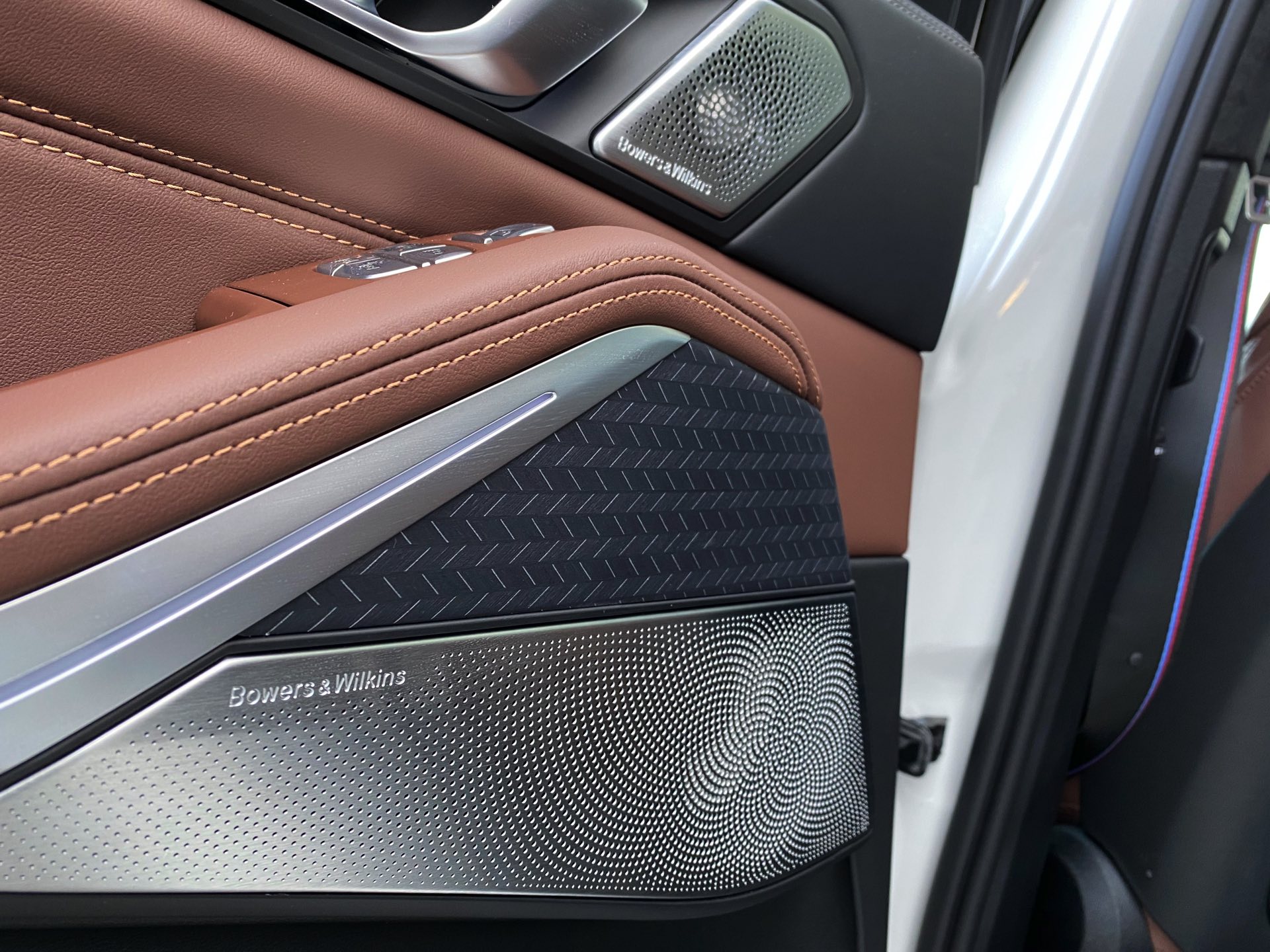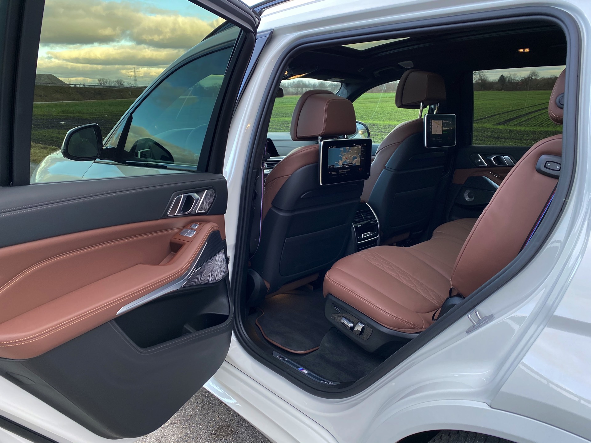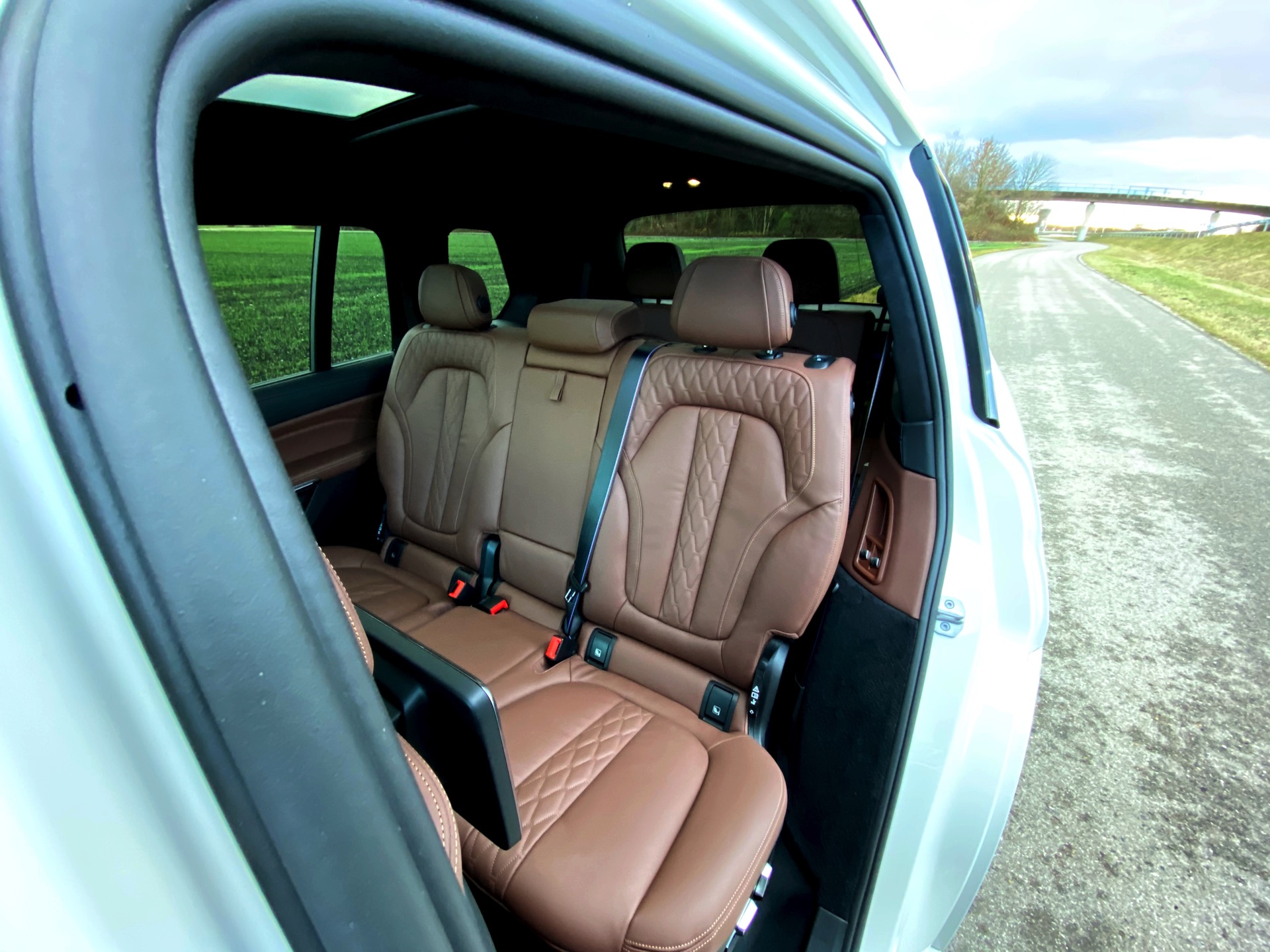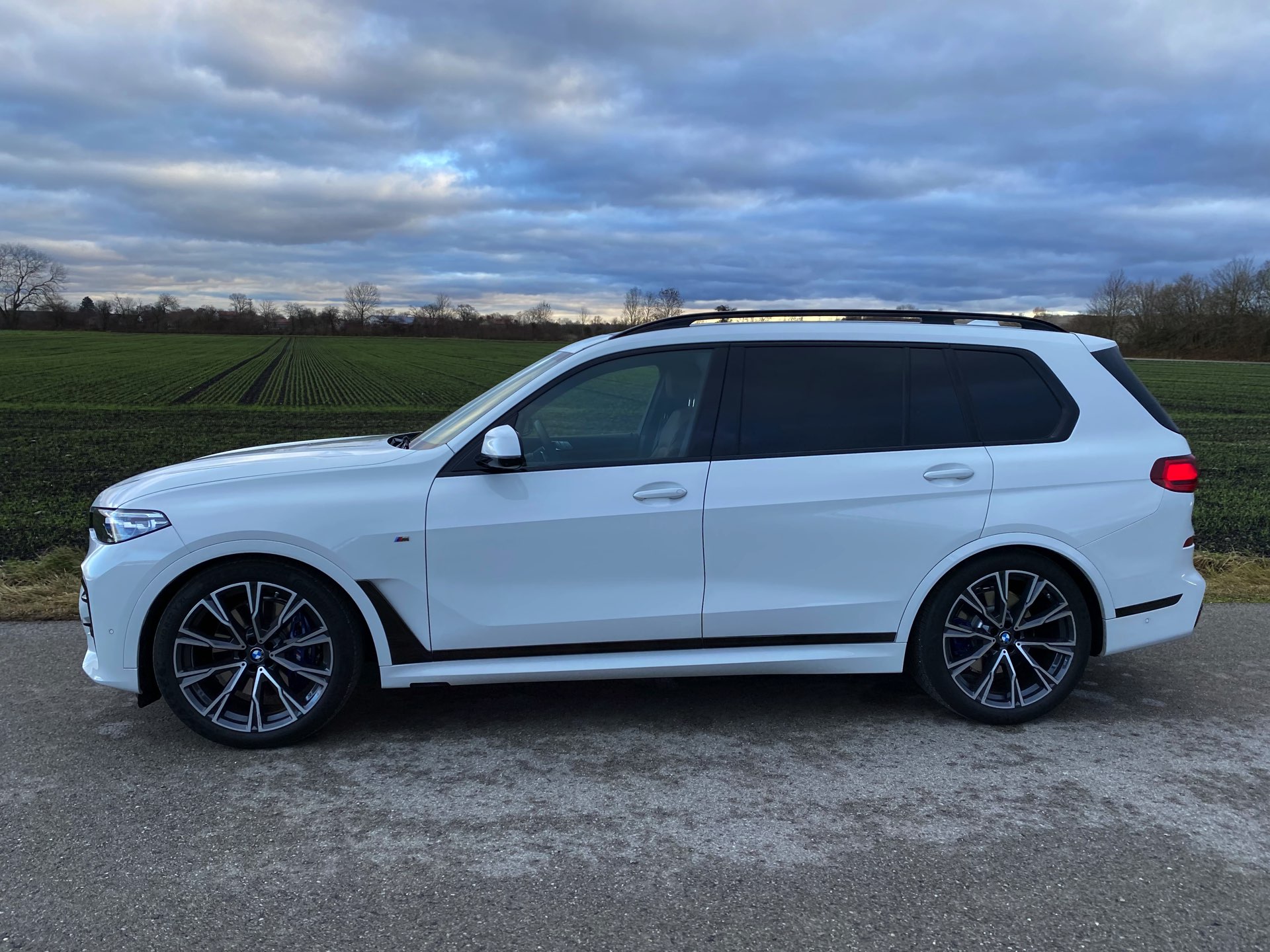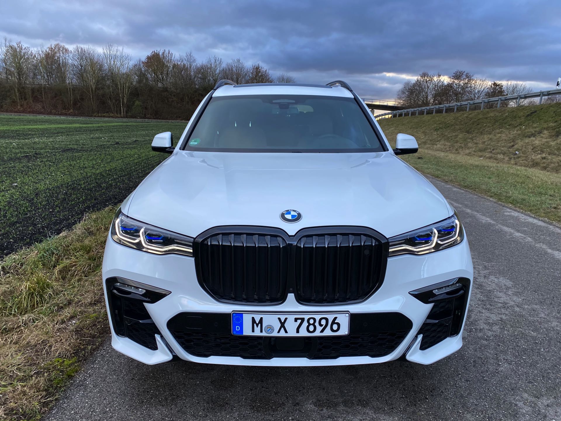 Einer der letzten BMW X7 M50d ist seit kurzem in Besitz unseres Lesers Jürgen, der sich bei der Konfiguration für den Schwarz-Weiß-Modus entschieden hat: Sein Exemplar kombiniert die Lackierung in Alpinweiß mit der erweiterten Shadow Line, die für zahlreiche dunkle Akzente sorgt. Größter Blickfang ist dabei zweifellos die komplett in Hochglanz-Schwarz gehaltene Doppel-Niere, die wie bei jedem BMW X7 mit ihrem stattlichen Format beeindruckt. Mit den Fenster-Einfassungen für die ab der B-Säule abgedunkelten Scheiben, der Dachreling, den seitlichen Zierleisten und der Einfassung für die Endrohre gibt es aber aus jeder Perspektive noch ein paar weitere Elemente, die das Schwarz-Weiß-Spiel überzeugend fortsetzen. Ein weiterer Hingucker sind die BMW Individual Leichtmetallräder Y-Speiche 758 I Bicolor im mächtigen 22-Zoll-Format.