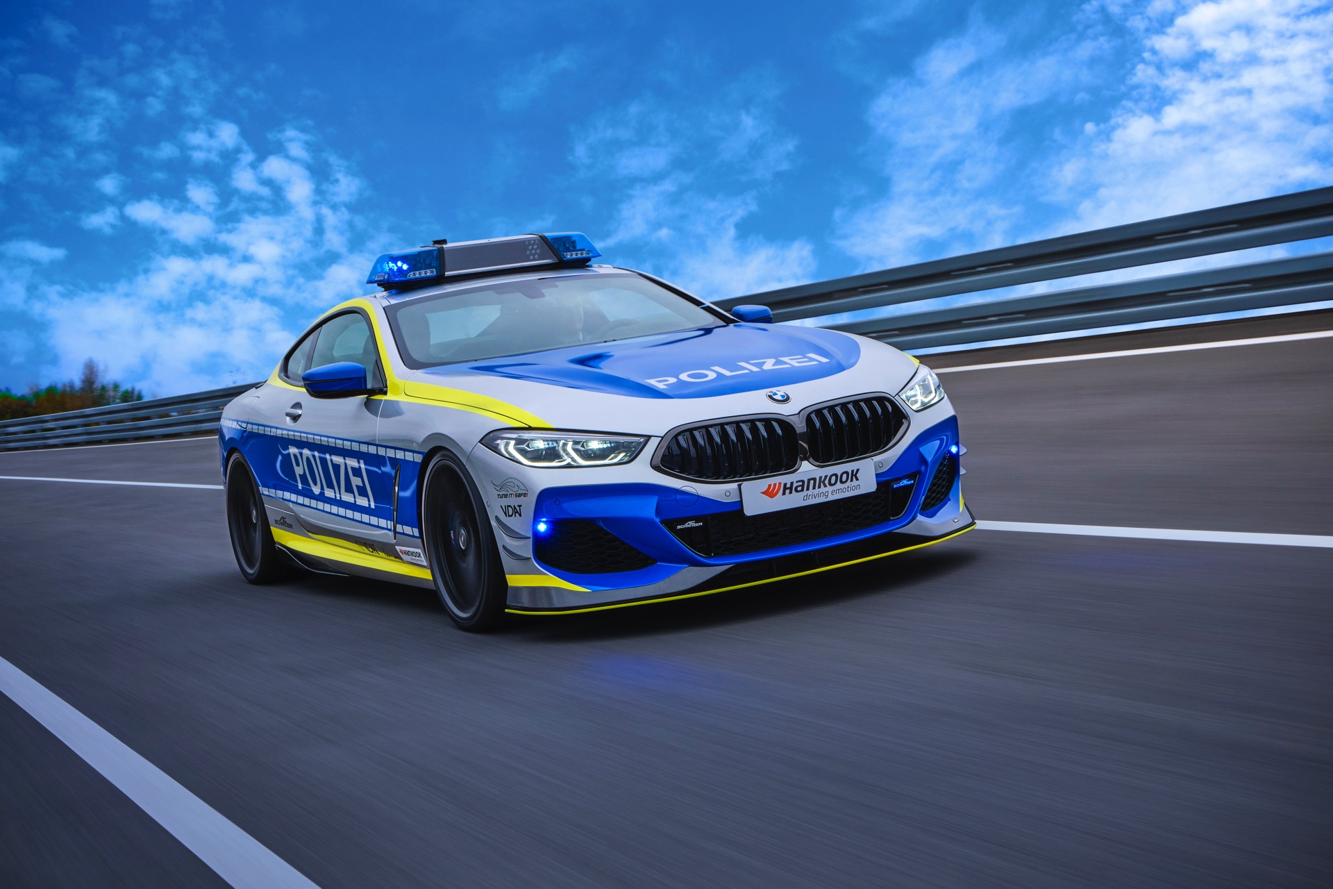 Wenn dieser BMW 8er im Rückspiegel auftaucht, sollten auch Tuning-Freunde schleunigst die Spur frei machen: Kommt die Polizei in einem derart potenten Luxuscoupé, ist jeder Fluchtversuch von Vornherein aussichtslos. Für die Kampagne Tune it! Safe! hat AC Schnitzer einen BMW M850i im Polizei-Look mit zahlreichen Tuning-Teilen versehen. Das normalerweise im Kontext der Essen Motor Show präsentierte Showcar wurde in diesem Jahr in der BMW Welt München übergeben, denn die Tuning-Messe musste in diesem Jahr Corona-bedingt leider ausfallen.