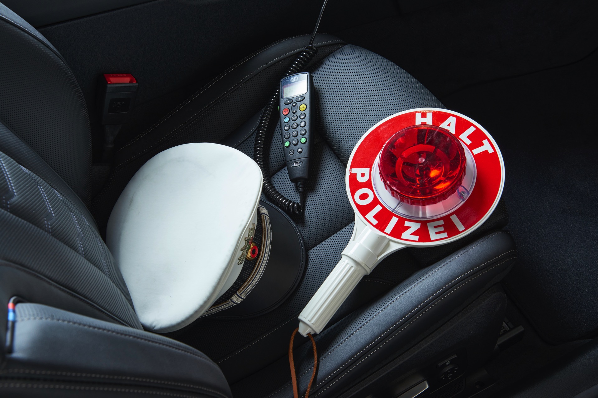 Nicht fehlen dürfen bei diesem ganz speziellen Tuning-8er natürlich auch einige Komponenten, die normalerweise nur für echte Polizei-Fahrzeuge zur Verfügung stehen: Die von Foliatec verklebte Polizei-Folierung in kräftigem Blau und leuchtendem Gelb wird mit einer Hella Sondersignalanlage vom Typ RTK 7 kombiniert. Im Einsatz kann das Showcar außerdem auf diverse Blaulicht-Blitzer zurückgreifen, die noch mehr Aufmerksamkeit garantieren.