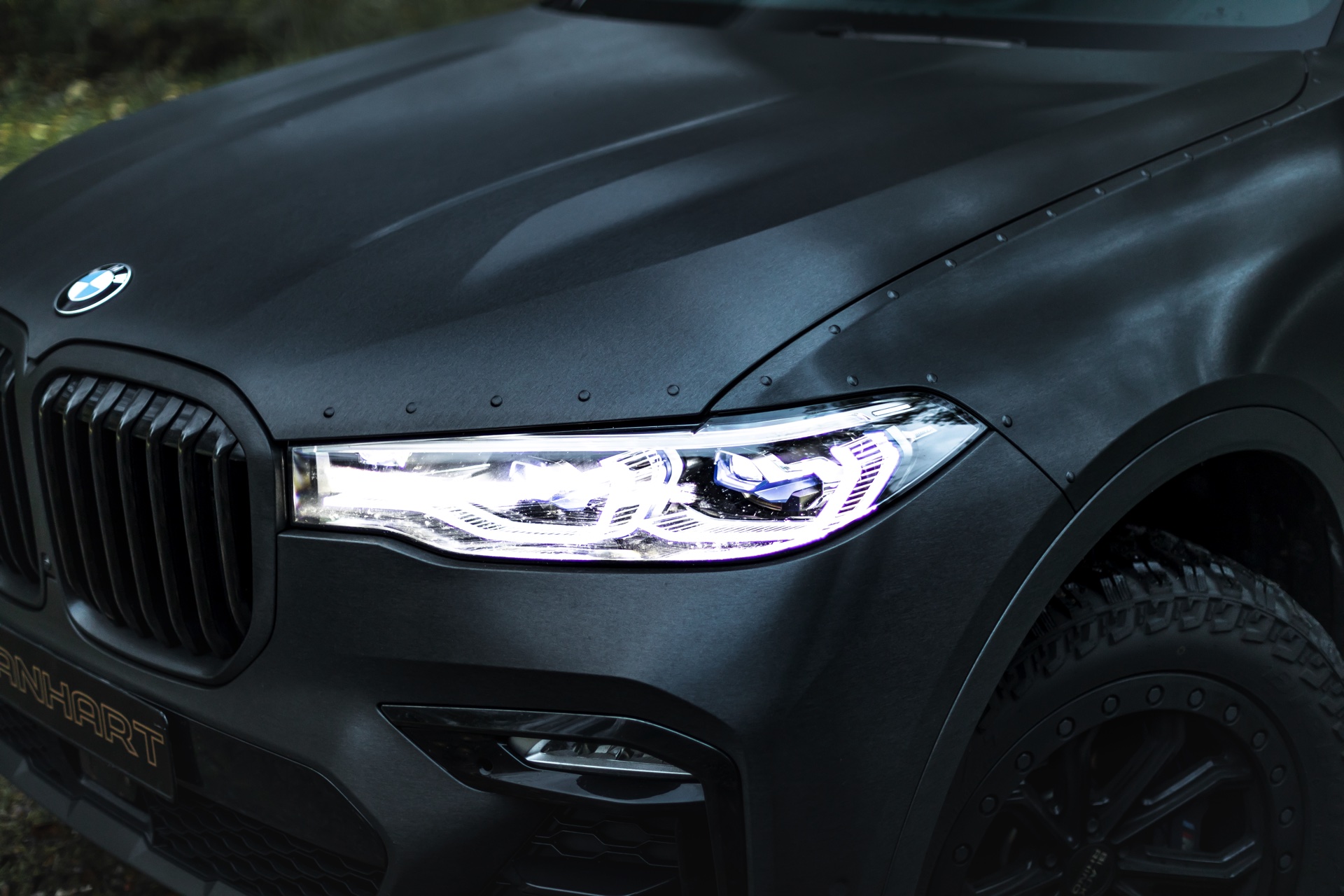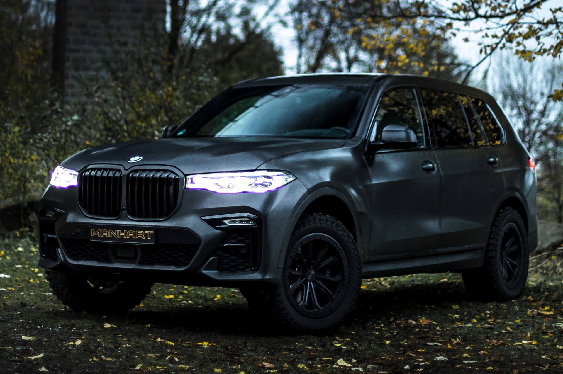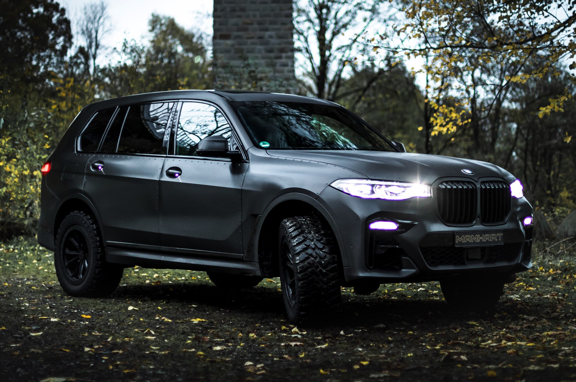 In der Regel geht es bei Tuning für BMW um mehr Performance auf Asphalt, aber es geht auch anders: Auf Basis des BMW X7 M50i hat Manhart die MHX7 Dirt Edition auf die Räder gestellt und dabei vor allem die Offroad-Eigenschaften im Blick gehabt. Herausgekommen ist ein rustikales Power-SUV im Military Look, das ohne weitere Veränderungen in diversen Endzeit-Filmen mitspielen könnte. Wesentlichen Anteil daran hat eine Custom-Design-Folierung mit mattschwarzer, gebürsteter Oberfläche. Dreidimensionale Elemente erinnern an Nieten und sorgen für noch mehr Abgrenzung von der auf Luxus und Eleganz getrimmten Serie.