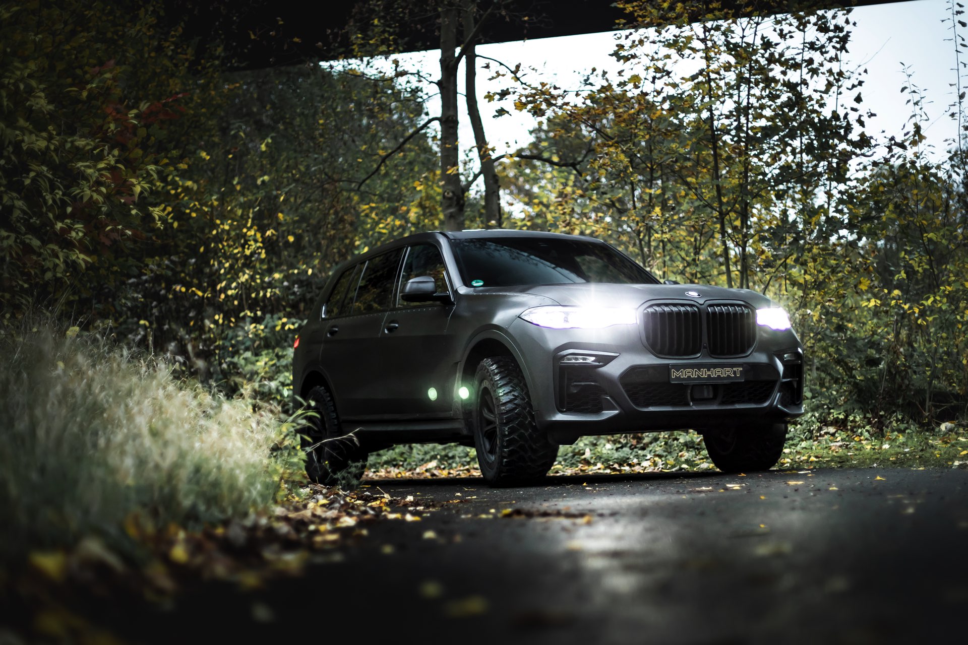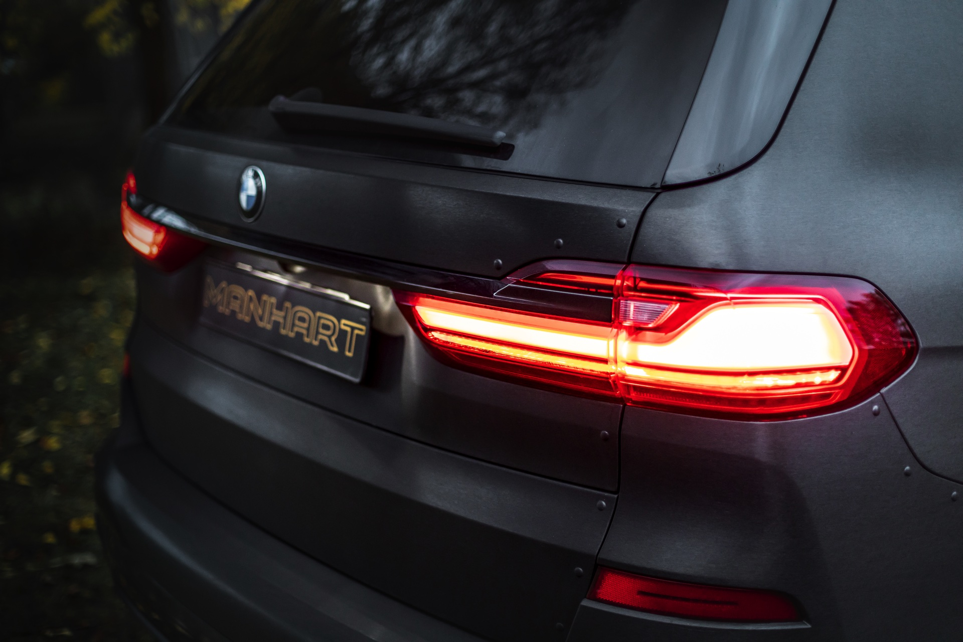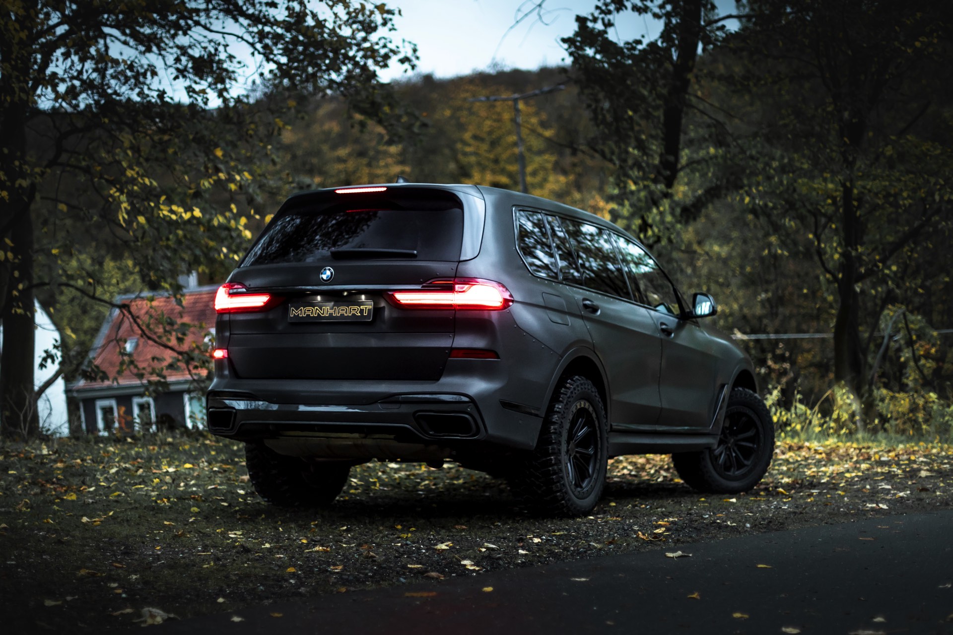 Dank einer Modifikation der serienmäßigen Zweiachs-Luftfederung kommt die Manhart MHX7 Dirt Edition mit rundum 40 Millimetern mehr Bodenfreiheit als ein serienmäßiger BMW X7. Wer schon einmal im Gelände unterwegs war weiß, dass diese vier Zentimeter einen großen Unterschied ausmachen können.