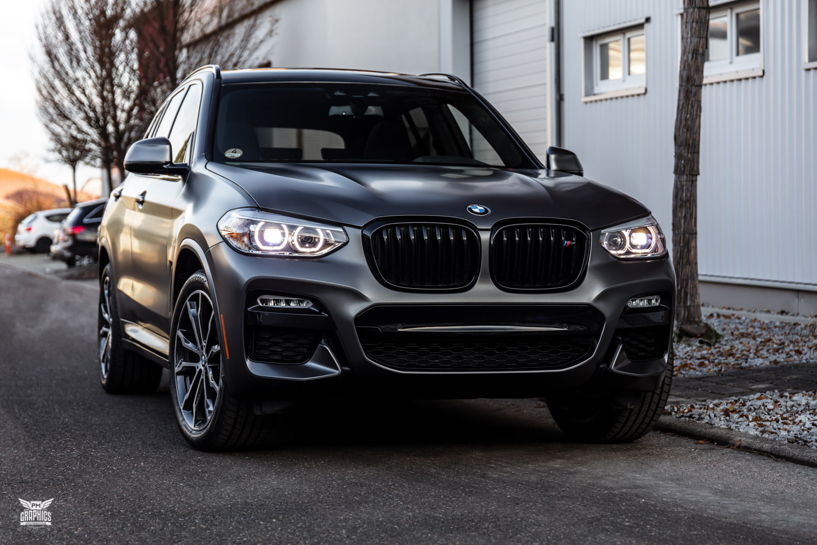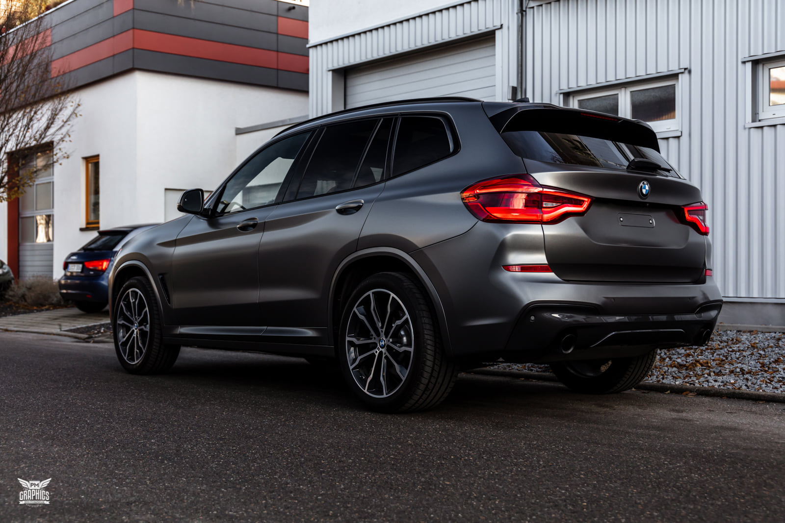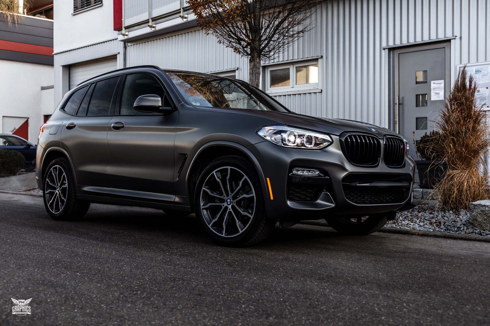 Wer einen neuen BMW X3 G01 mit M Sport-Paket oder gleich die M Performance-Variante M40i bestellt, kann sich zwischen sieben unterschiedlichen Lackierungen entscheiden. Die Mehrheit der insgesamt eher gedeckten Farbpalette besteht aus Silber-, Grau- und Schwarz-Tönen, aber der in einigen anderen Baureihen längst realisierbare Wunsch nach einer matten Lackierung befindet sich bis heute nicht im Programm für das Mittelklasse-SUV. Wer seinen BMW X3 G01 dennoch nicht im klassischen Metallic-Look glänzen lassen will, kann sich nur nachträglich helfen lassen – und das geht natürlich auch mit einer Folierung.
