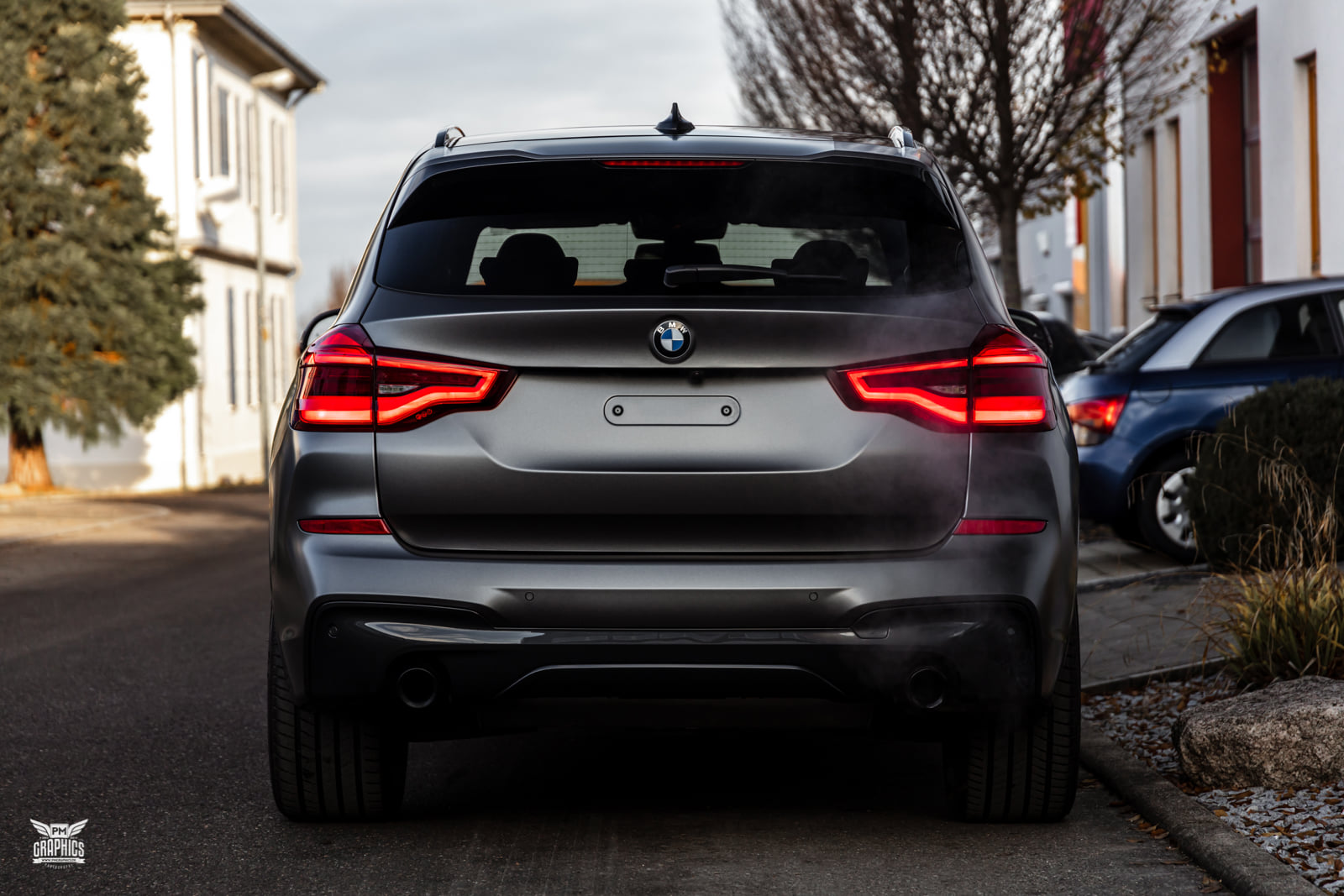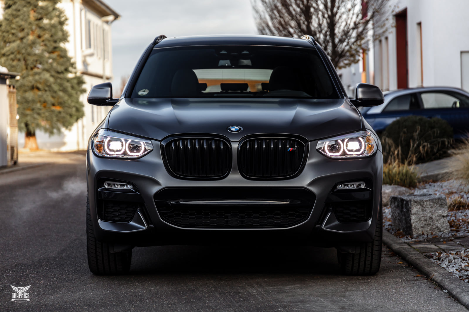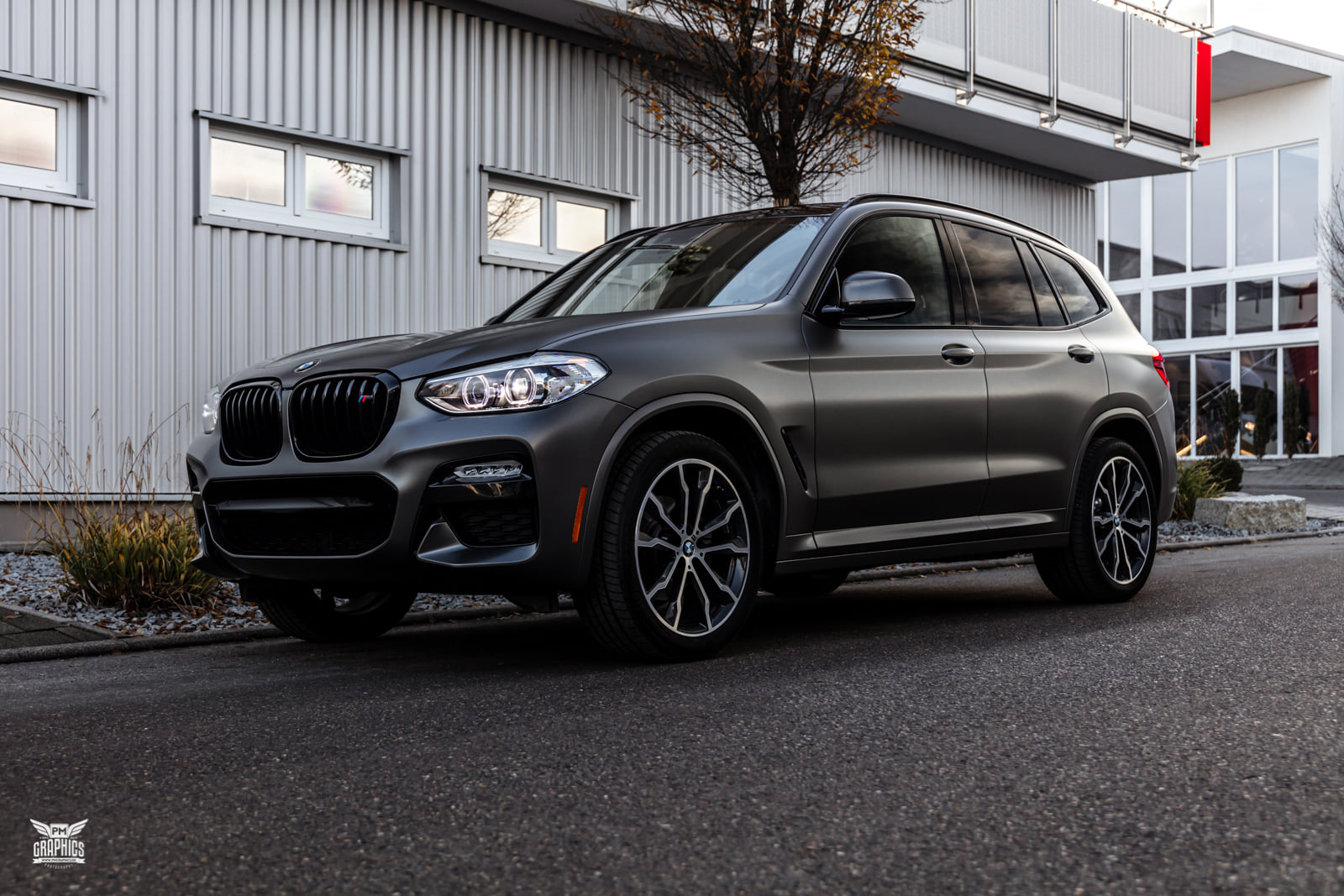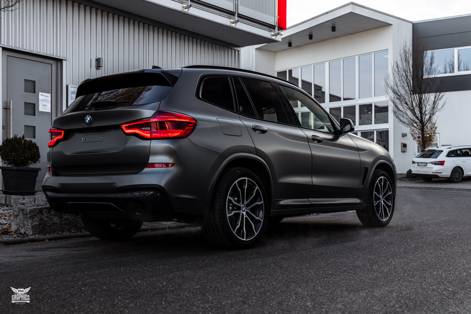 Wer einen neuen BMW X3 G01 mit M Sport-Paket oder gleich die M Performance-Variante M40i bestellt, kann sich zwischen sieben unterschiedlichen Lackierungen entscheiden. Die Mehrheit der insgesamt eher gedeckten Farbpalette besteht aus Silber-, Grau- und Schwarz-Tönen, aber der in einigen anderen Baureihen längst realisierbare Wunsch nach einer matten Lackierung befindet sich bis heute nicht im Programm für das Mittelklasse-SUV. Wer seinen BMW X3 G01 dennoch nicht im klassischen Metallic-Look glänzen lassen will, kann sich nur nachträglich helfen lassen – und das geht natürlich auch mit einer Folierung.