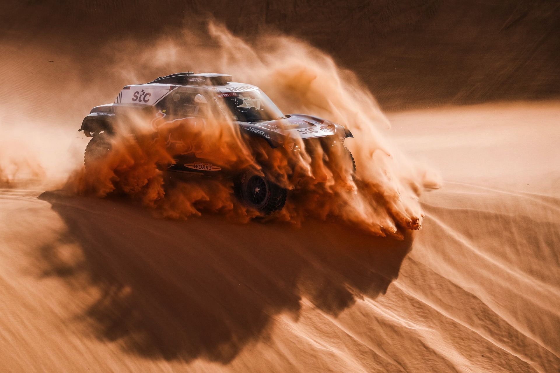 Auch bei der Rallye Dakar 2021 liefern sich Stéphane Peterhansel im X-Raid MINI und Nasser Al-Attiyah im Toyota ein extrem spannendes Kopf-an-Kopf-Rennen. Nach 4 von 10 Etappen in den Wüsten Saudi-Arabiens führt der Franzose mit knapp fünf Minuten Vorsprung, aber von einer Entscheidung ist die härteste Rallye der Welt noch ausgesprochen weit entfernt: Schon ein einziger Navigationsfehler, ein Reifenschaden zu einem ungünstigen Zeitpunkt oder ein kleiner technischer Defekt können die Reihenfolge jederzeit auf den Kopf stellen und einem Fahrer alle Chancen auf den Sieg rauben.