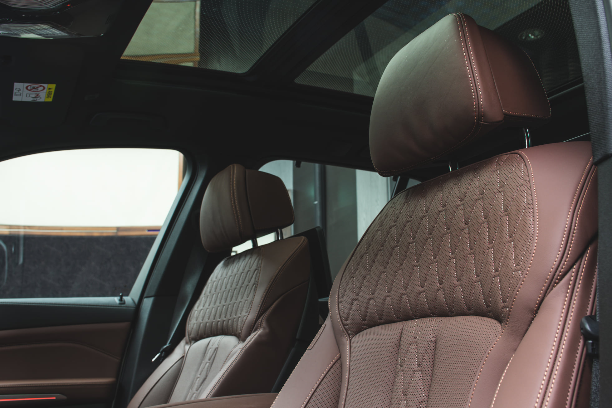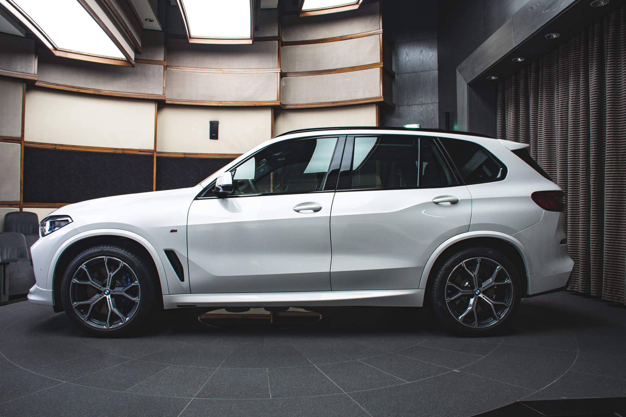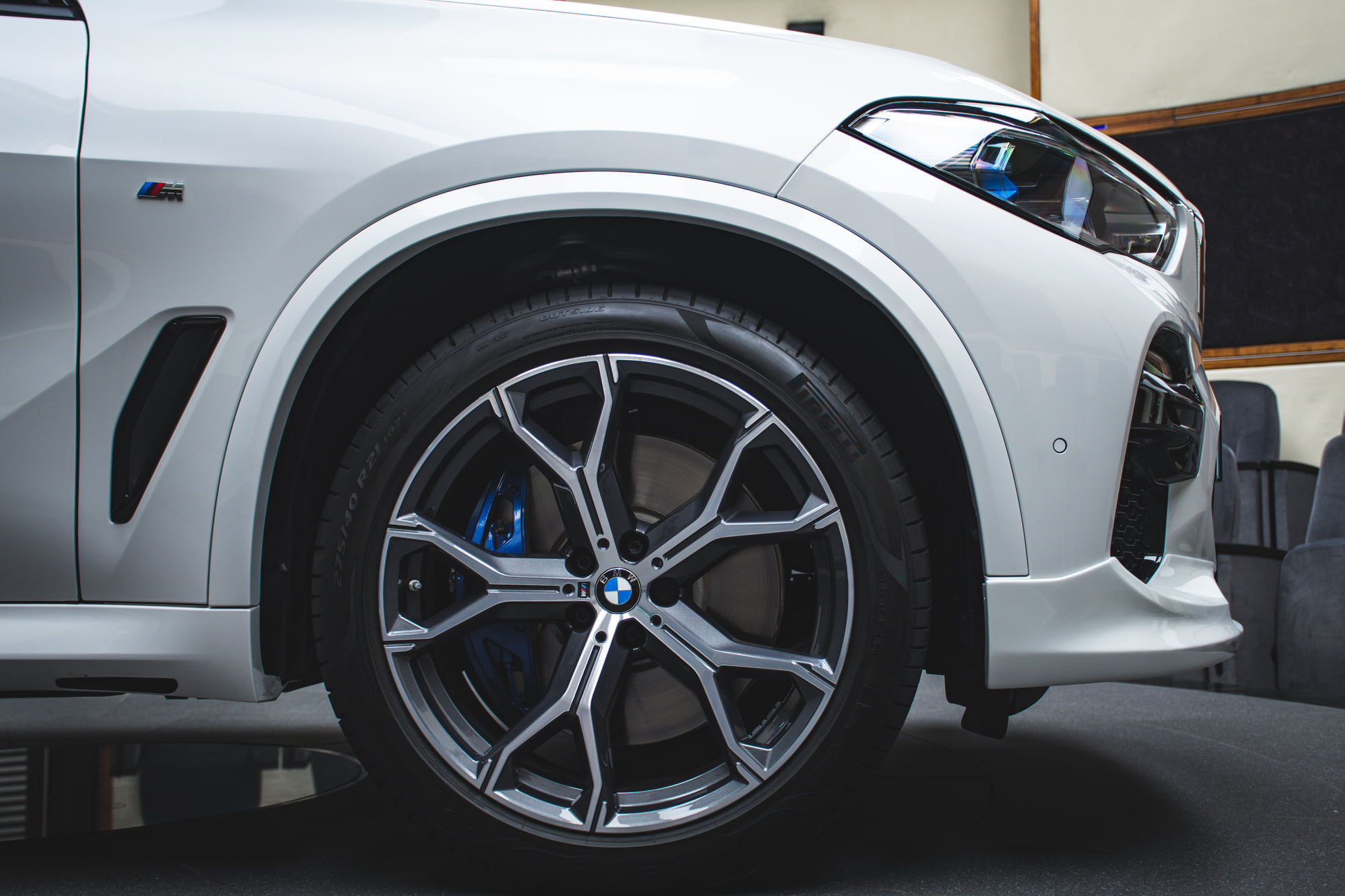 Den größten Anteil daran hat sicher der Frontschürzen-Aufsatz, aber auch der Dachkanten-Spoiler von 3D-Design unterstreicht den sportlichen Anspruch. Abgesehen davon trägt der gezeigte BMW X5 G05 eine Lackierung in Mineralweiß Metallic, die Sonnenschutzverglasung ab der B-Säule und die 21 Zoll großen Leichtmetallräder im Design Y-Speiche 741 M Bicolor. Auf die in den letzten Jahren immer beliebter werdende Shadow Line mit erweiterten Umfängen wurde bei dieser Konfiguration verzichtet, sodass Design-Elemente wie die große Doppel-Niere an der Front und die Endrohre ganz klassisch in Chrom glänzen dürfen.