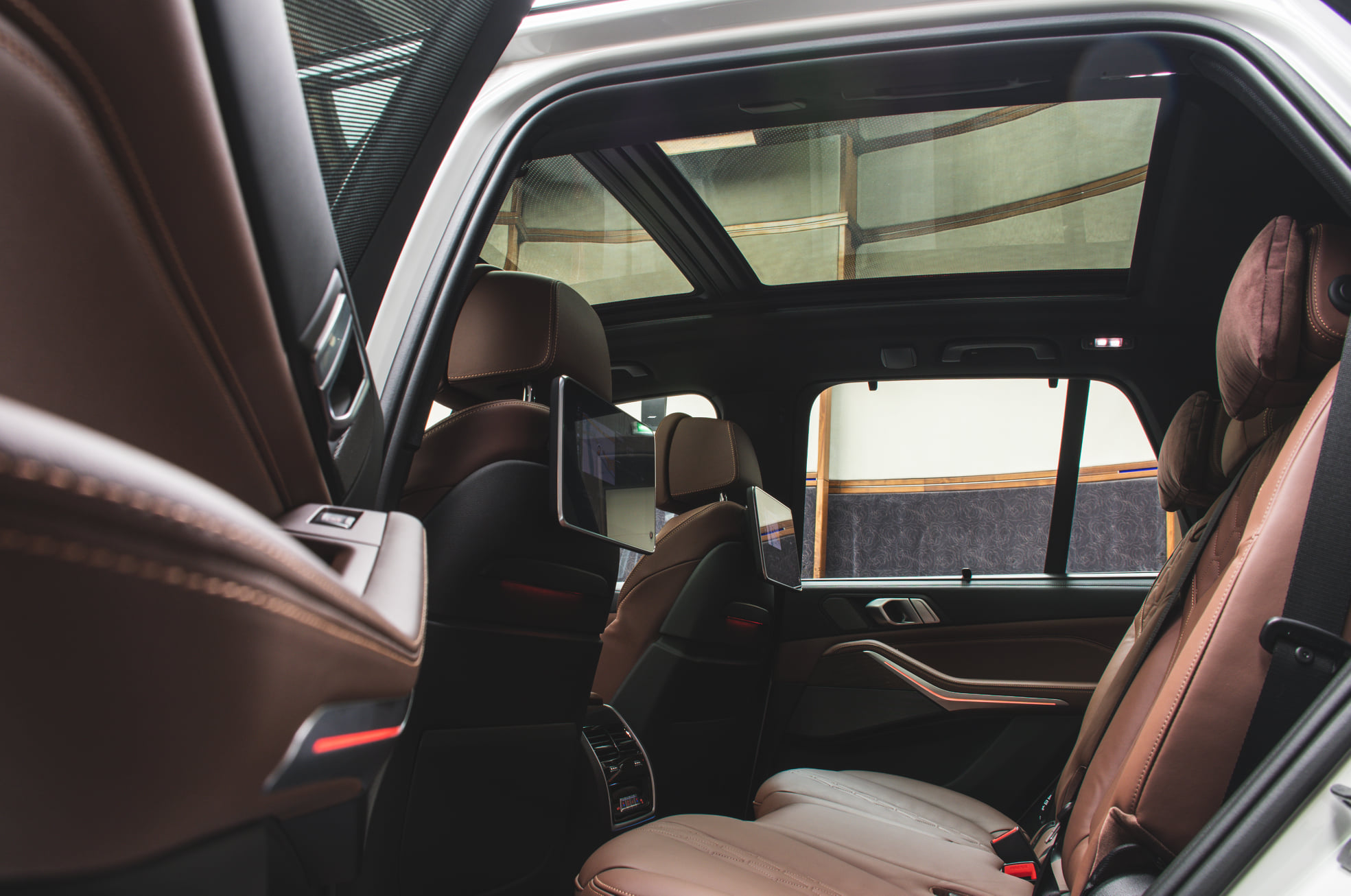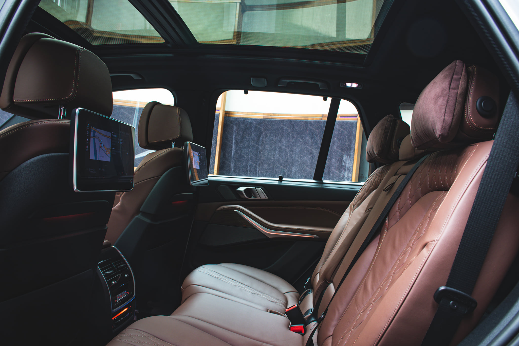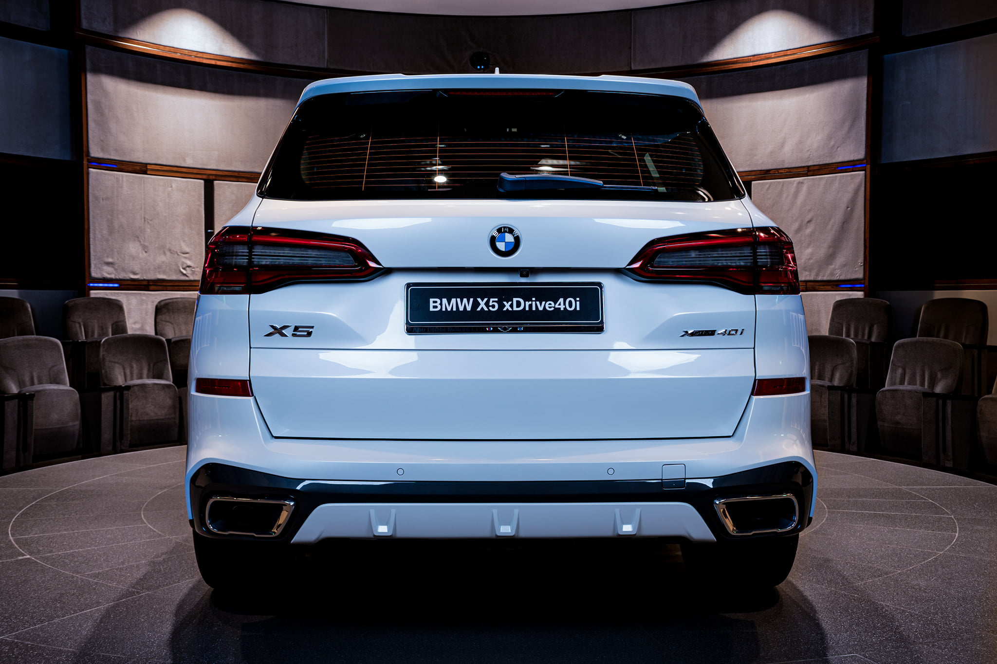 Den größten Anteil daran hat sicher der Frontschürzen-Aufsatz, aber auch der Dachkanten-Spoiler von 3D-Design unterstreicht den sportlichen Anspruch. Abgesehen davon trägt der gezeigte BMW X5 G05 eine Lackierung in Mineralweiß Metallic, die Sonnenschutzverglasung ab der B-Säule und die 21 Zoll großen Leichtmetallräder im Design Y-Speiche 741 M Bicolor. Auf die in den letzten Jahren immer beliebter werdende Shadow Line mit erweiterten Umfängen wurde bei dieser Konfiguration verzichtet, sodass Design-Elemente wie die große Doppel-Niere an der Front und die Endrohre ganz klassisch in Chrom glänzen dürfen.
