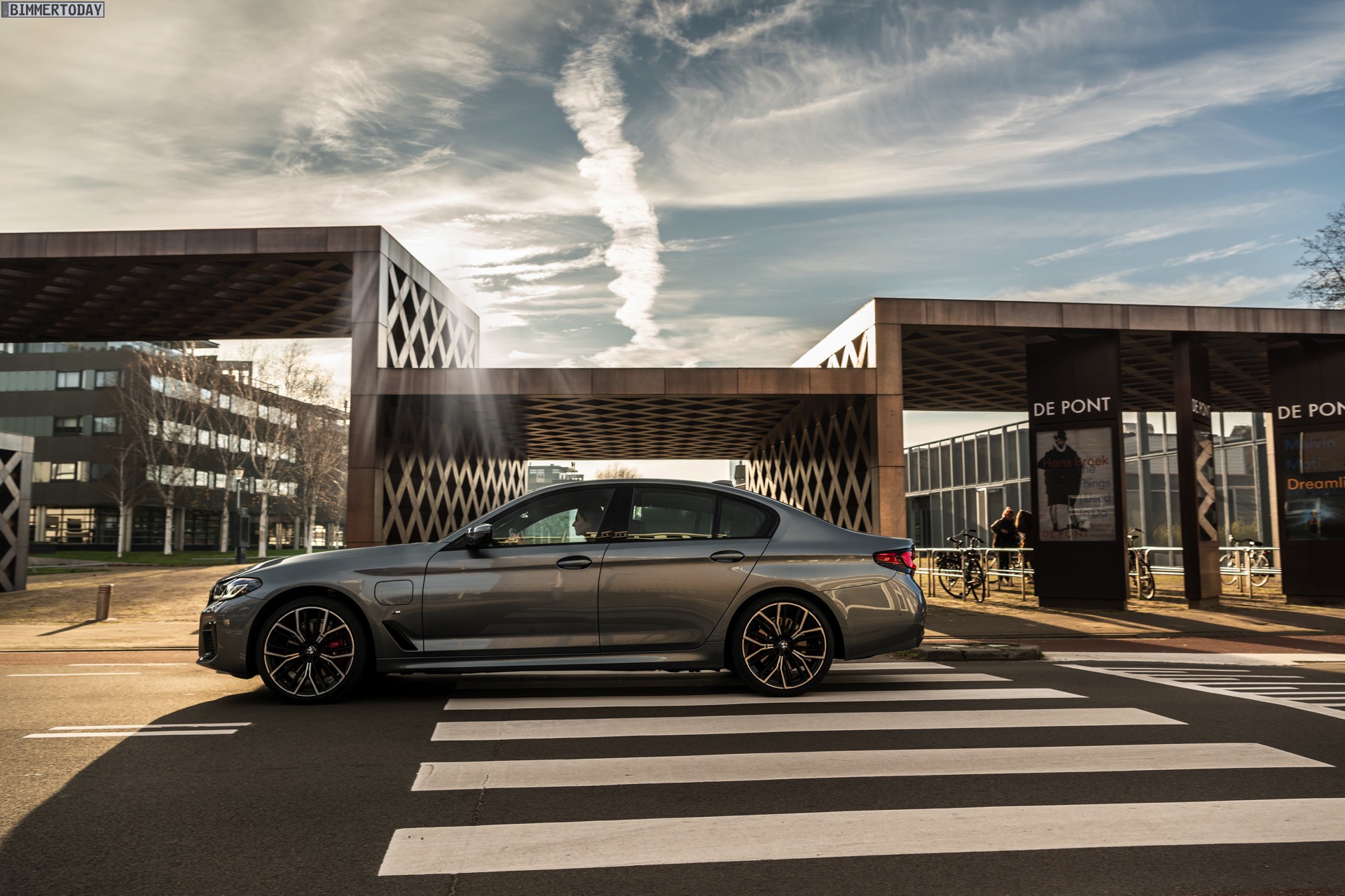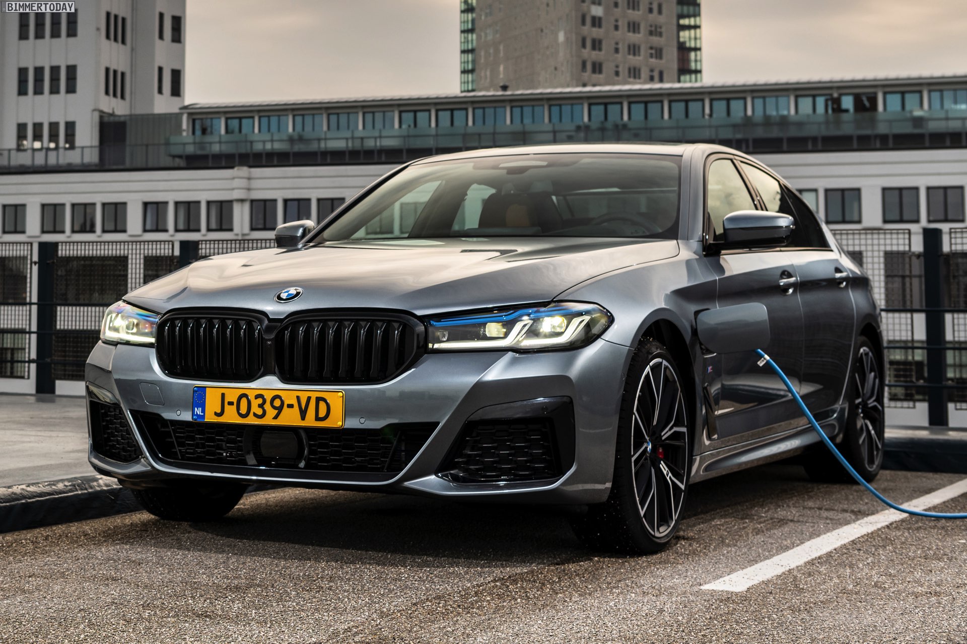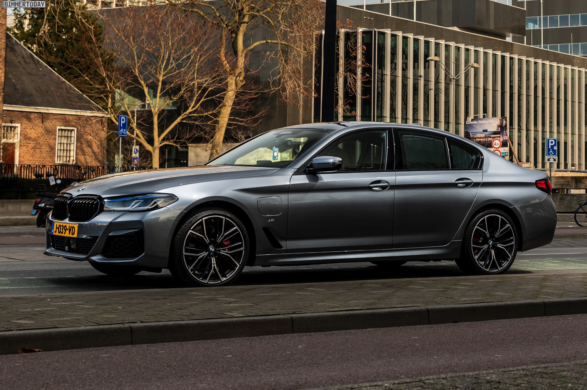 Mit dem Facelift 2020 wurde nun auch an der Leistungsschraube gedreht: Mit 292 PS Systemleistung ist der BMW 530e G30 LCI nochmals spürbar stärker geworden, wobei er vom XtraBoost-Antrieb aus 330e und X3 xDrive30e profitiert. Die heutzutage gemäß WLTP ermittelte Elektro-Reichweite liegt je nach Konfiguration zwischen 54 und 61 Kilometern, wobei Modelle mit M Sport-Paket und breiter Bereifung naturgemäß am unteren Ende dieser Skala unterwegs sind. Genau in diese Kategorie fällt auch das nun in den Niederlanden fotografierte BMW 530e Facelift mit M Sport-Paket und Shadow Line mit erweiterten Umfängen, das auch unabhängig vom Hybrid-Antrieb ein schönes Beispiel für eine sportliche 5er-Konfiguration darstellt.