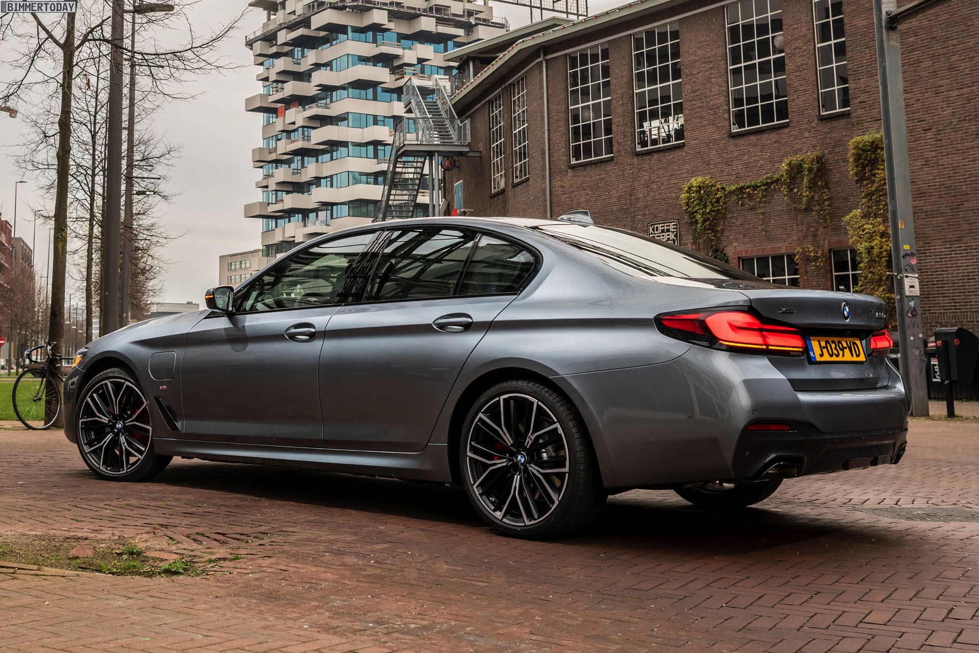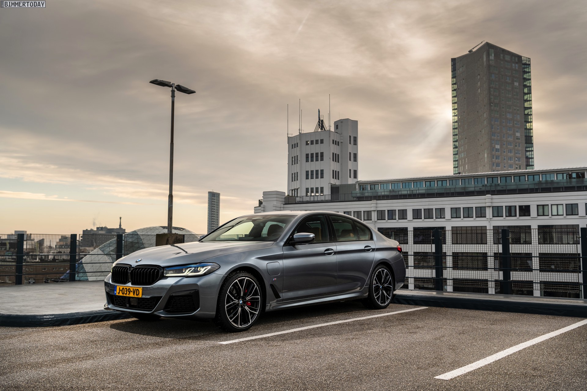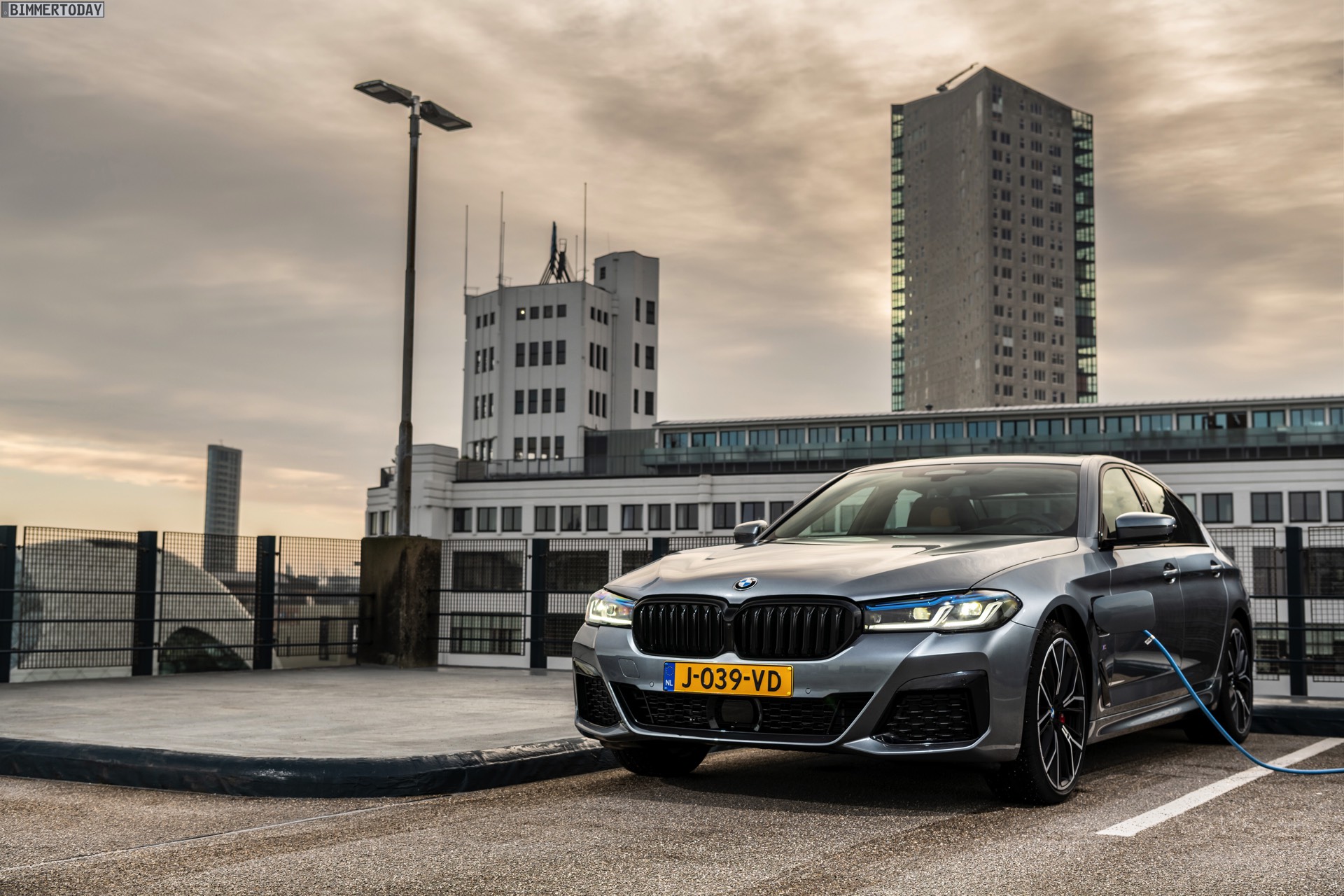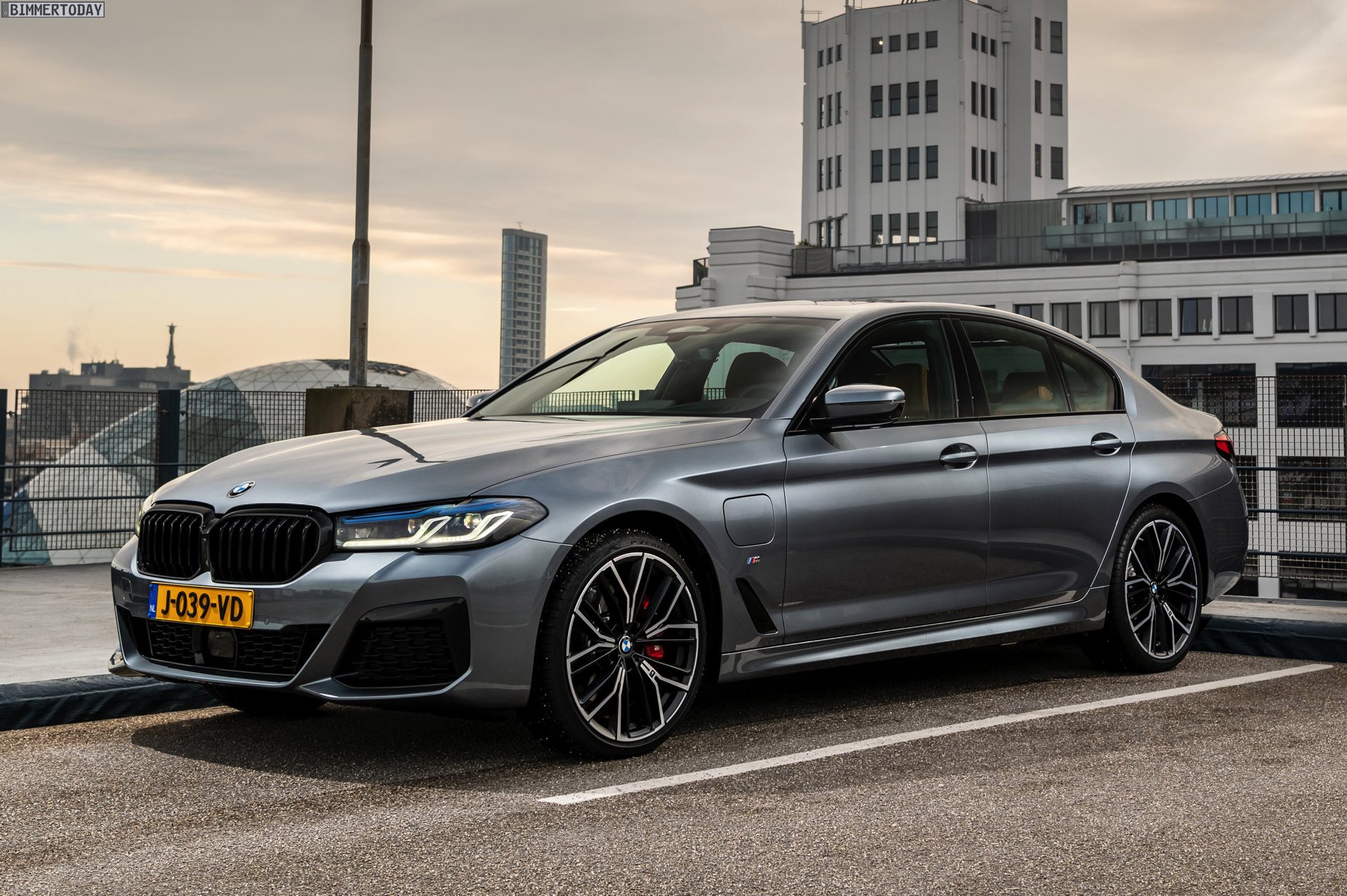 Mit dem Facelift 2020 wurde nun auch an der Leistungsschraube gedreht: Mit 292 PS Systemleistung ist der BMW 530e G30 LCI nochmals spürbar stärker geworden, wobei er vom XtraBoost-Antrieb aus 330e und X3 xDrive30e profitiert. Die heutzutage gemäß WLTP ermittelte Elektro-Reichweite liegt je nach Konfiguration zwischen 54 und 61 Kilometern, wobei Modelle mit M Sport-Paket und breiter Bereifung naturgemäß am unteren Ende dieser Skala unterwegs sind. Genau in diese Kategorie fällt auch das nun in den Niederlanden fotografierte BMW 530e Facelift mit M Sport-Paket und Shadow Line mit erweiterten Umfängen, das auch unabhängig vom Hybrid-Antrieb ein schönes Beispiel für eine sportliche 5er-Konfiguration darstellt.