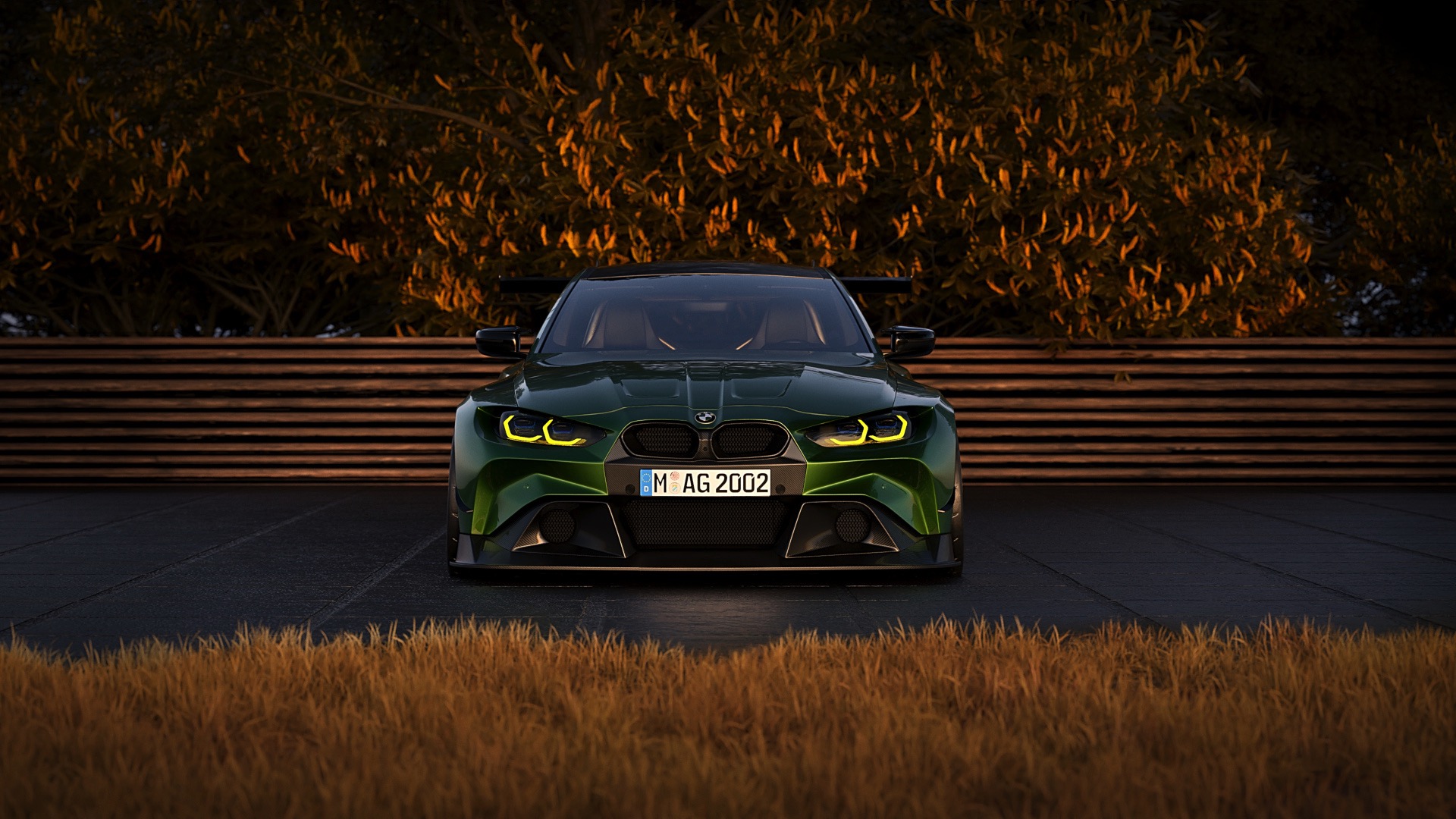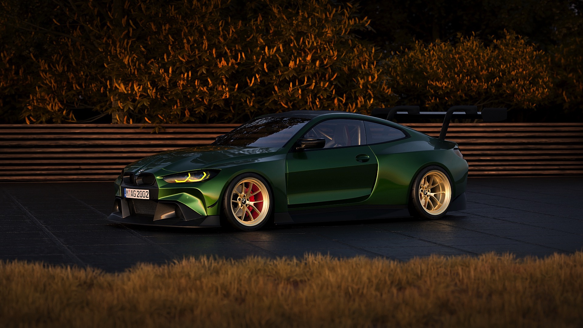 Der deutlich verbreiterte BMW M4 G82 trägt nicht nur eine völlig neue Frontschürze mit riesigem Frontsplitter, massive Kotflügel-Verbreiterungen an beiden Achsen und einen riesigen Heckflügel, auch der mächtige Diffusor verspricht enormen Anpressdruck. Gleichzeitig gibt die von allen überflüssigen Elementen befreite Heckschürze den Blick auf die extrem breite Semislick-Bereifung der Hinterachse frei. Einen zweiten Blick verdient auch die Front, an der Magnus die neuen Umrisse der riesigen M4-Nieren geschickt mit einem Nieren-Einsatz kombiniert, dessen Größe an Fahrzeuge einer anderen Generation erinnert.