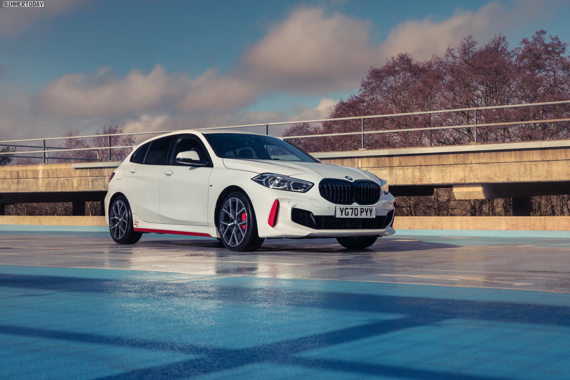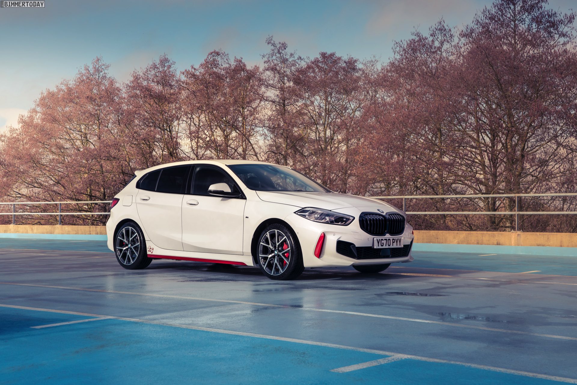 Der stärkste und vor allem sportlichste Fronttriebler in der Geschichte von BMW wurde auch von der englischen Fachpresse ausgesprochen positiv aufgenommen und konnte bereits erste Vergleichstests gegen andere Kompaktsportler für sich entscheiden. Nun gibt es eine Reihe zusätzlicher Fotos, die uns den BMW 128ti mit auffälligen roten Design-Akzenten und damit in einer Konfiguration zeigen, die mit ähnlichen Zutaten für einen sportlicheren Look sorgen will wie der Haupt-Rivale Golf GTI.