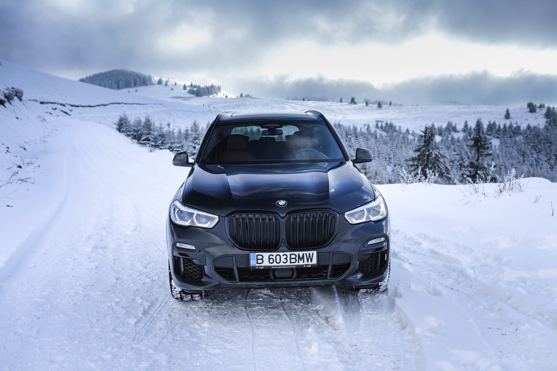 Wer bisher keine Vorstellung von der imposanten Wirkung eines schwarzen BMW X5 G05 mit erweiterter Shadow Line hatte, bekommt sie nun Schwarz auf Weiß: Auf aktuellen Fotos aus Rumänien sehen wir das bayerische Edel-SUV in einer traumhaft schneebedeckten Winter-Landschaft, die auch alle Fragen nach der Notwendigkeit eines Allradantriebs beantwortet: Wer auf tief verschneiten Straßen in den Bergen sicher unterwegs sein will, ist mit einem modernen SUV wie dem BMW X5 zweifellos erstklassig ausgestattet.