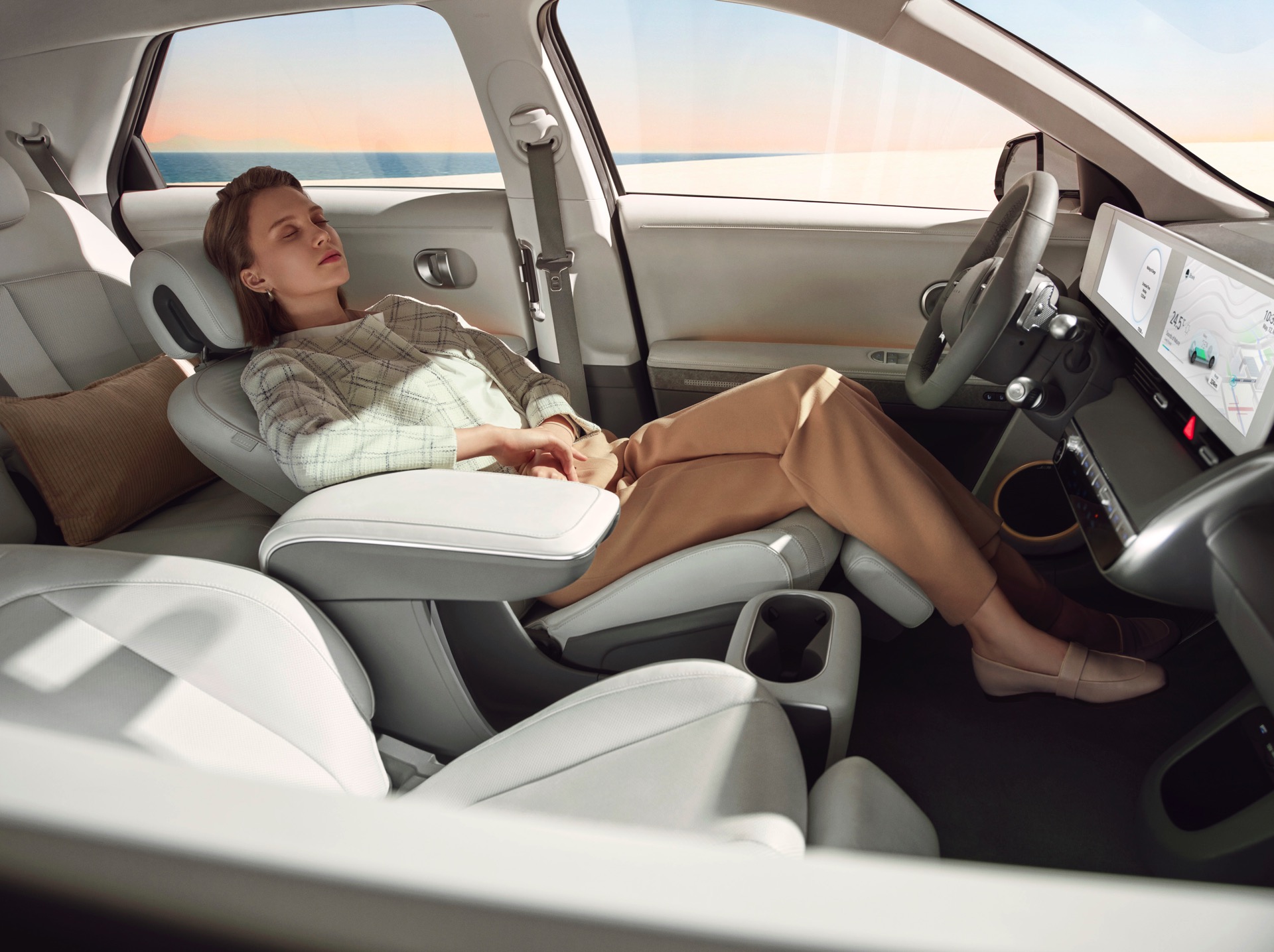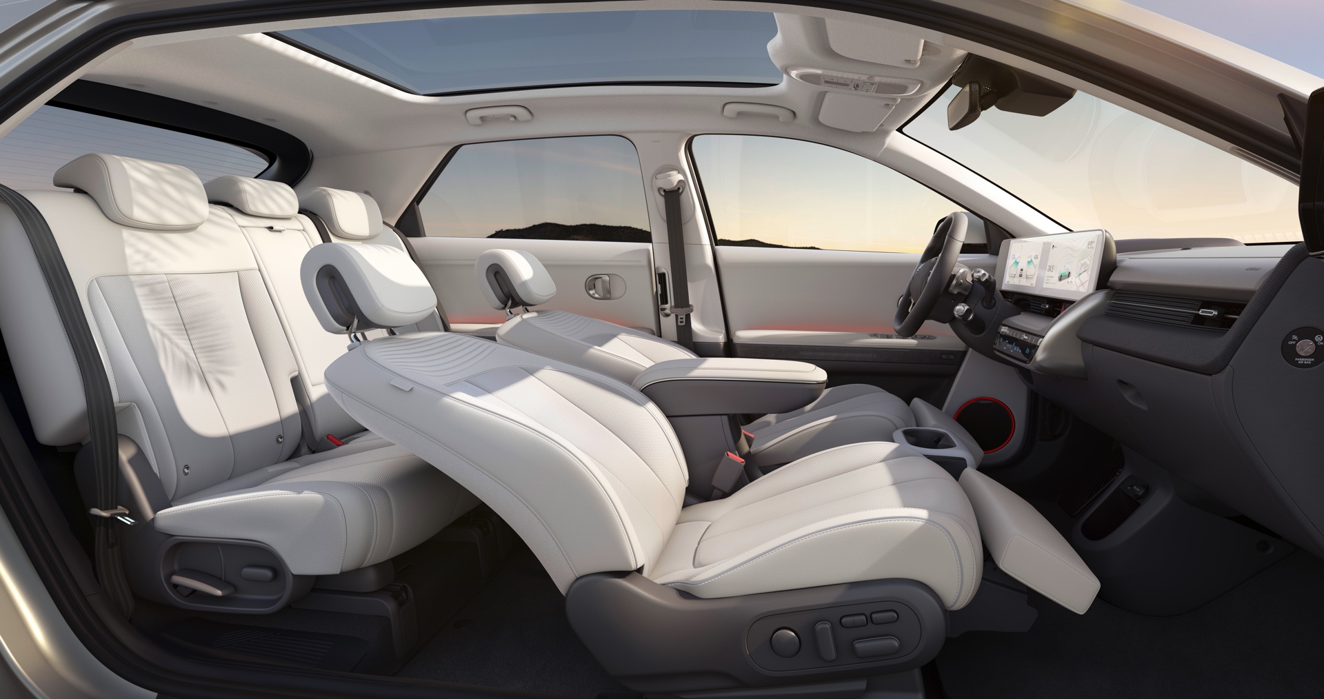 Spannend ist der Hyundai Ioniq 5 auch aufgrund seines attraktives Preises: In der Preisliste stehen 41.900 Euro für das Basismodell, aber nach Abzug aller Förderungen und Prämien bleiben selbst ohne Verhandlungen nur noch 32.330 Euro auf dem Zettel. Im Grundpreis enthalten sind serienmäßige Voll-LED-Scheinwerfer und 19-Zoll-Felgen sowie ein luftiger Innenraum mit nachhaltigen Materialien und zwei 12,25 Zoll großen Displays, auf Wunsch verbauen die Koreaner auch ein Solardach und erlauben so die Energiegewinnung während der Fahrt. Im theoretischen Idealfall soll die Sonne den Kunden so im Lauf eines Jahres bis zu 2.000 Kilometer zusätzliche Reichweite schenken.