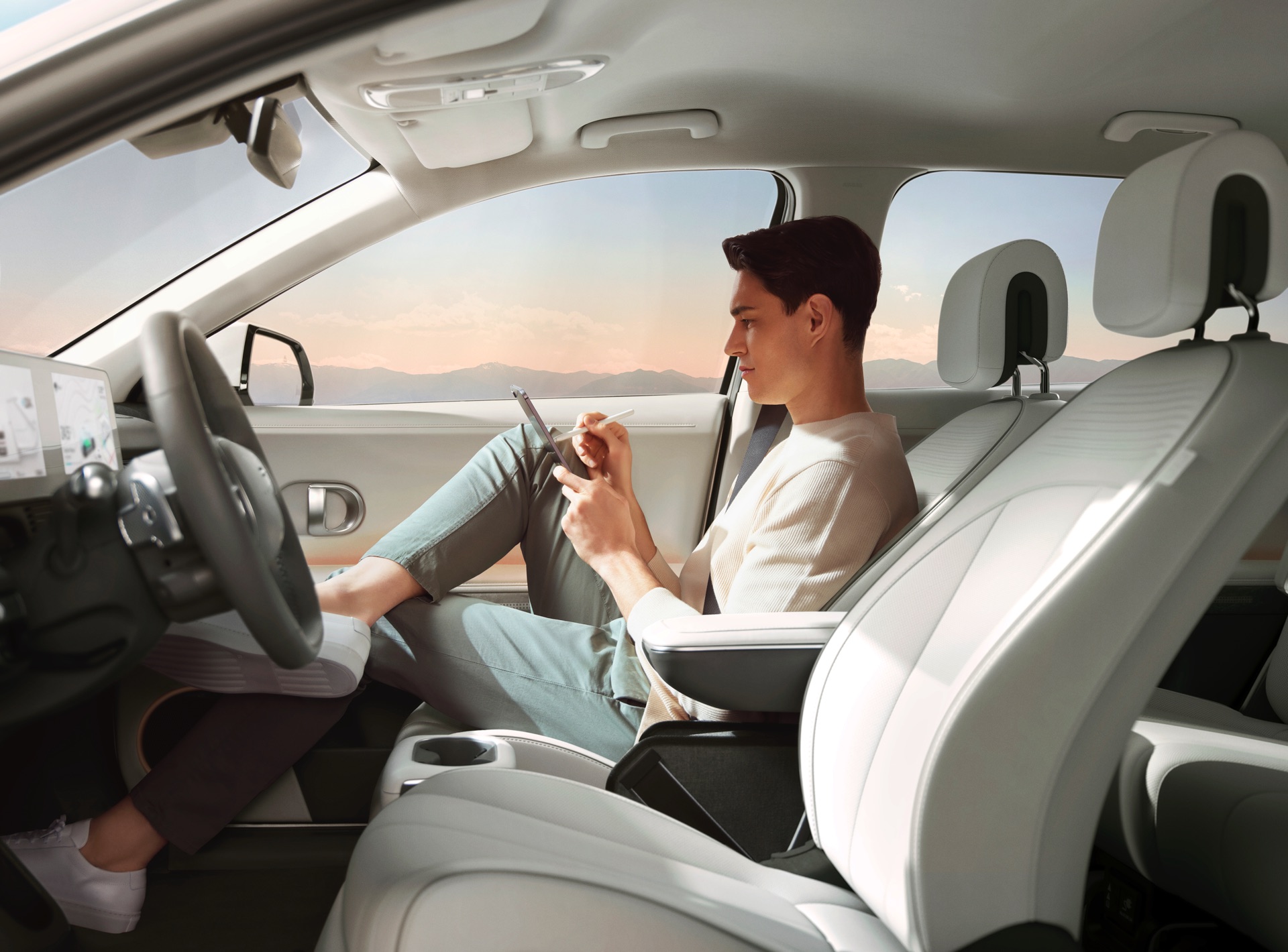 Das Einstiegsmodell mit kleinerem Akku und Heckantrieb kommt mit 170 PS und 350 Newtonmeter, es beschleunigt in 8,5 Sekunden von 0 auf 100 und dürfte damit gut in den Alltag der meisten Menschen passen. Mit zusätzlichem E-Motor an der Vorderachse kommt der 58-kWh-Ioniq auf 235 PS und 605 Newtonmeter, dann geht es in 6,1 Sekunden auf Landstraßentempo. Für den größeren 72,6-kWh-Akku stehen ein 217 PS starker Hecktriebler und das Topmodell mit Allradantrieb und 306 PS zur Wahl, letzteres benötigt nur 5,2 Sekunden für den Standardsprint. Zum Vergleich: Der BMW iX3 ist im Moment ausschließlich als Hecktriebler mit 286 PS und 400 Newtonmeter Drehmoment erhältlich, er benötigt laut Werksangabe 6,8 Sekunden von 0 auf 100 km/h.