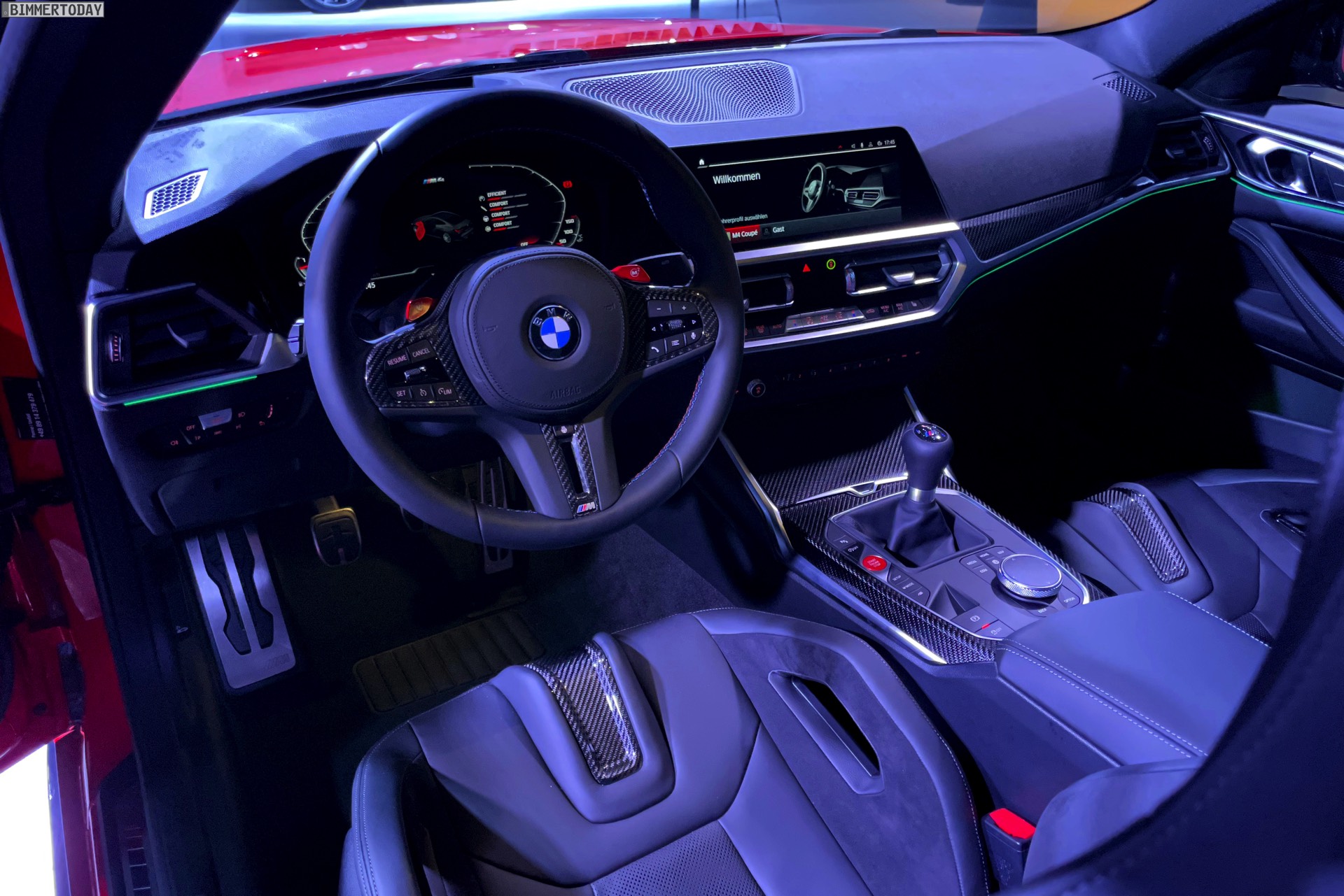 Das manuelle Getriebe trägt auch dazu bei, dass der BMW M4 G82 offiziell 25 Kilogramm leichter ist als das Competition-Derivat. Bei der Präsentation in Maisach zeigte die Fahrzeugwaage ein Leergewicht von 1.672 Kilogramm an – deutlich mehr als bei einer auf Gewicht getrimmten Konfiguration der Vorgänger-Generation, aber natürlich auch bei Erfüllung völlig anderer Rahmenbedingungen: Angefangen von den Abmessungen über die Verwindungssteifigkeit der Karosserie bis hin zu Crash-Sicherheit und Ausstattungsniveau gibt es eine Vielzahl guter Gründe für das höhere Gewicht, das gemessen am Wettbewerbsumfeld dennoch niedrig ist. Noch wichtiger dürfte manchen Kunden aber auch in dieser Frage die exklusive Getriebe-Option sein: Kein anderes Fahrzeug im Segment ist heute noch als Handschalter erhältlich.