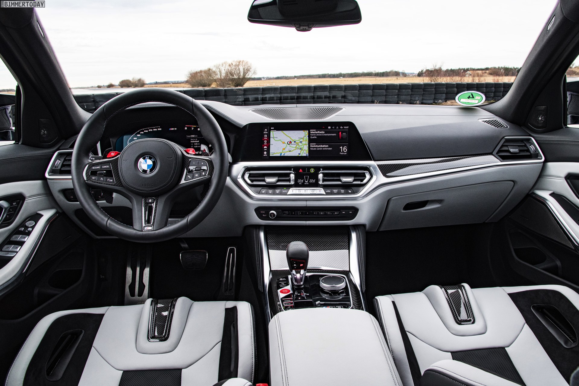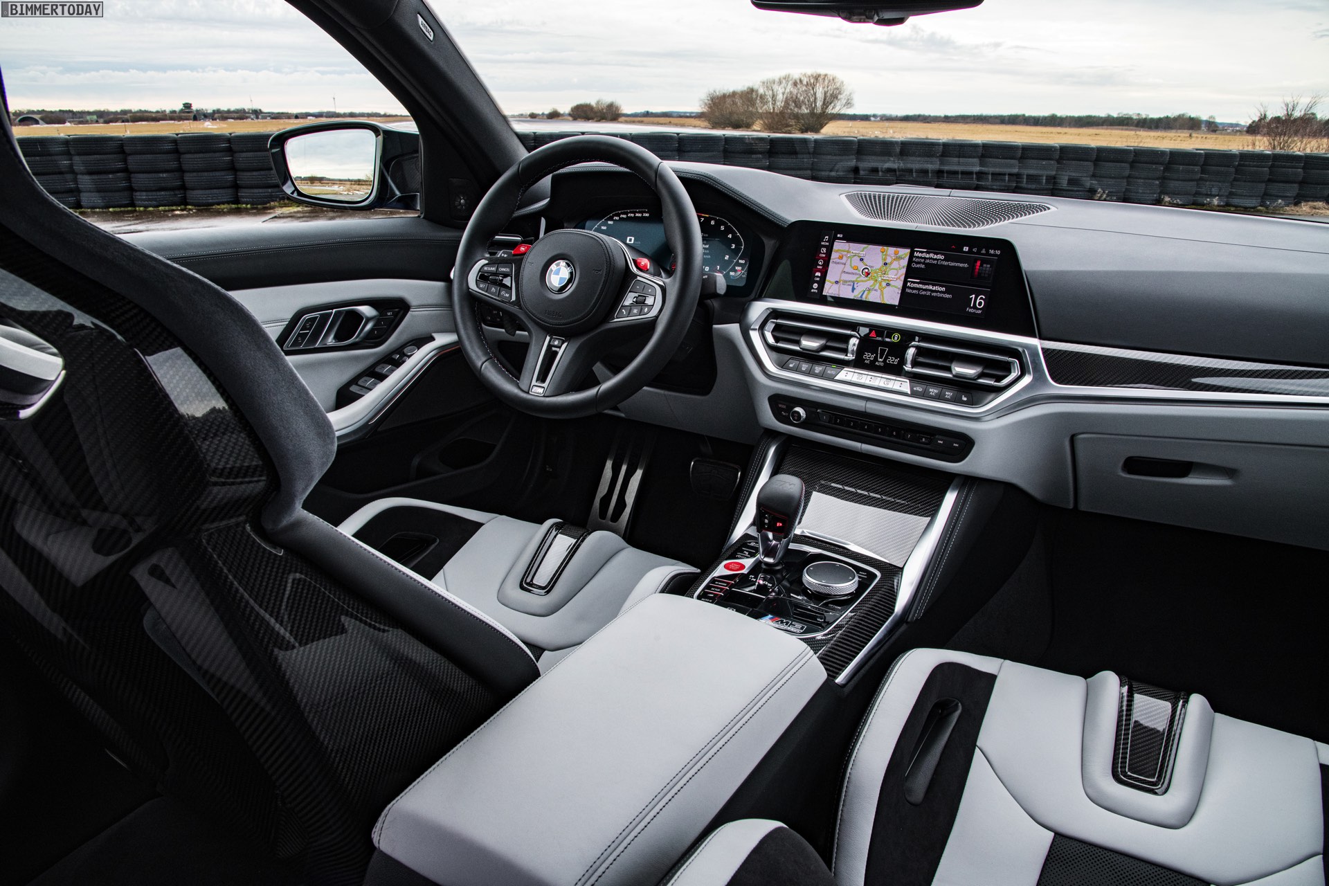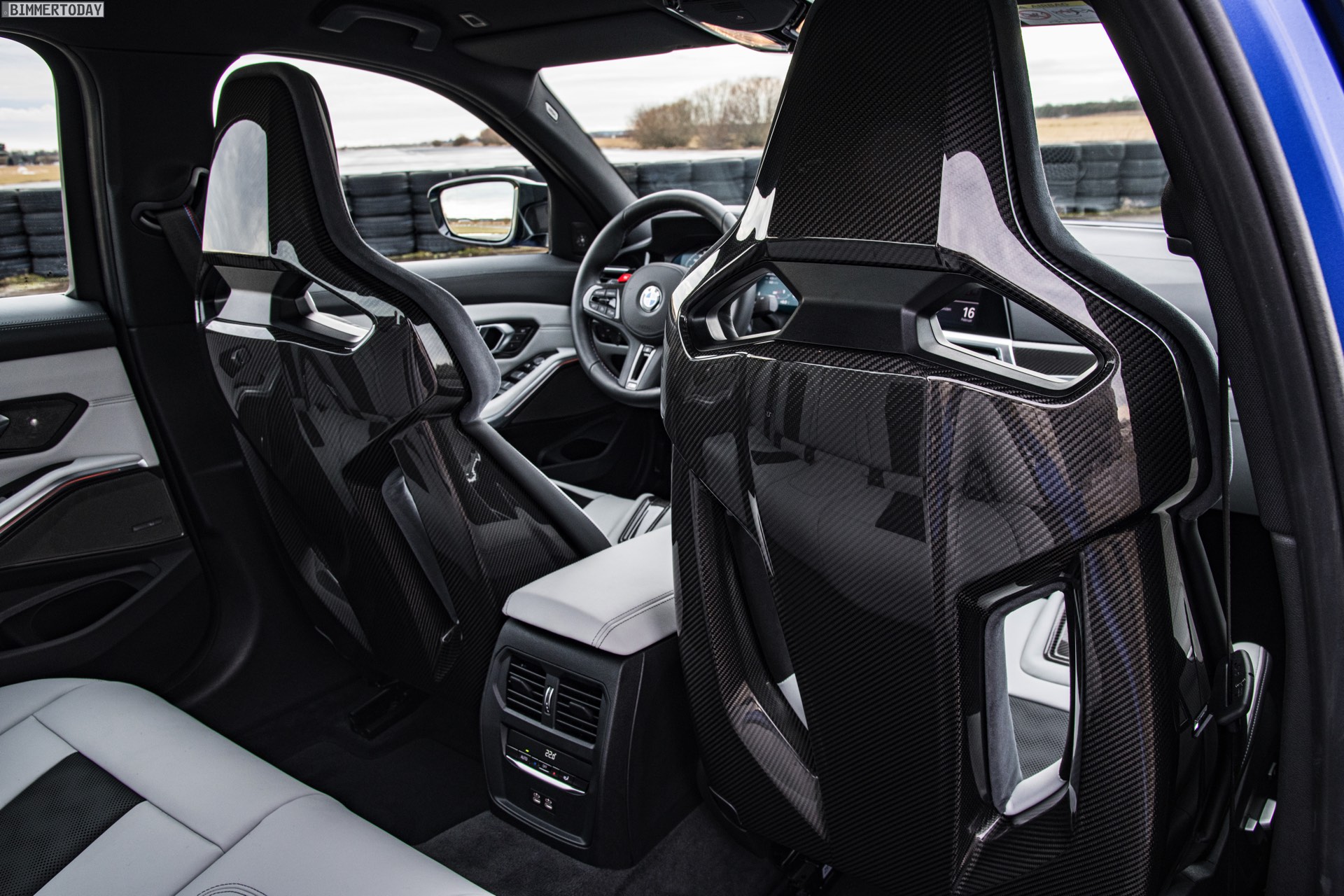Für unseren ersten Fahrbericht mit dem neue BMW M3 Competition G80 durften wir ans Steuer eines Exemplars in Frozen Portimao Blue, aber im Fall der neuen Generation braucht es ganz sicher keine Individual-Lackierung um aufzufallen: Egal wie man vor dem neuen M3 steht, der Eindruck eines brachialen Kraftprotzes drängt sich aus jedem Blickwinkel auf. Aber zur Optik wurde längst genug gesagt, also auf ans Steuer! Schon beim Öffnen der Tür unterstreicht der erste Blick in den Innenraum den sportlichen Anspruch: Die optionalen M Carbon Schalensitze mit Durchbrüchen und hohen Seitenwangen versprechen enormen Seitenhalt, aber keinen bequemen Einstieg – sie erinnern den Fahrer schon vor jeder Fahrt daran, dass er gerade in einen M3 einsteigt, der es mit der Abgrenzung vom 3er noch ernster meint als jeder seiner Vorgänger.