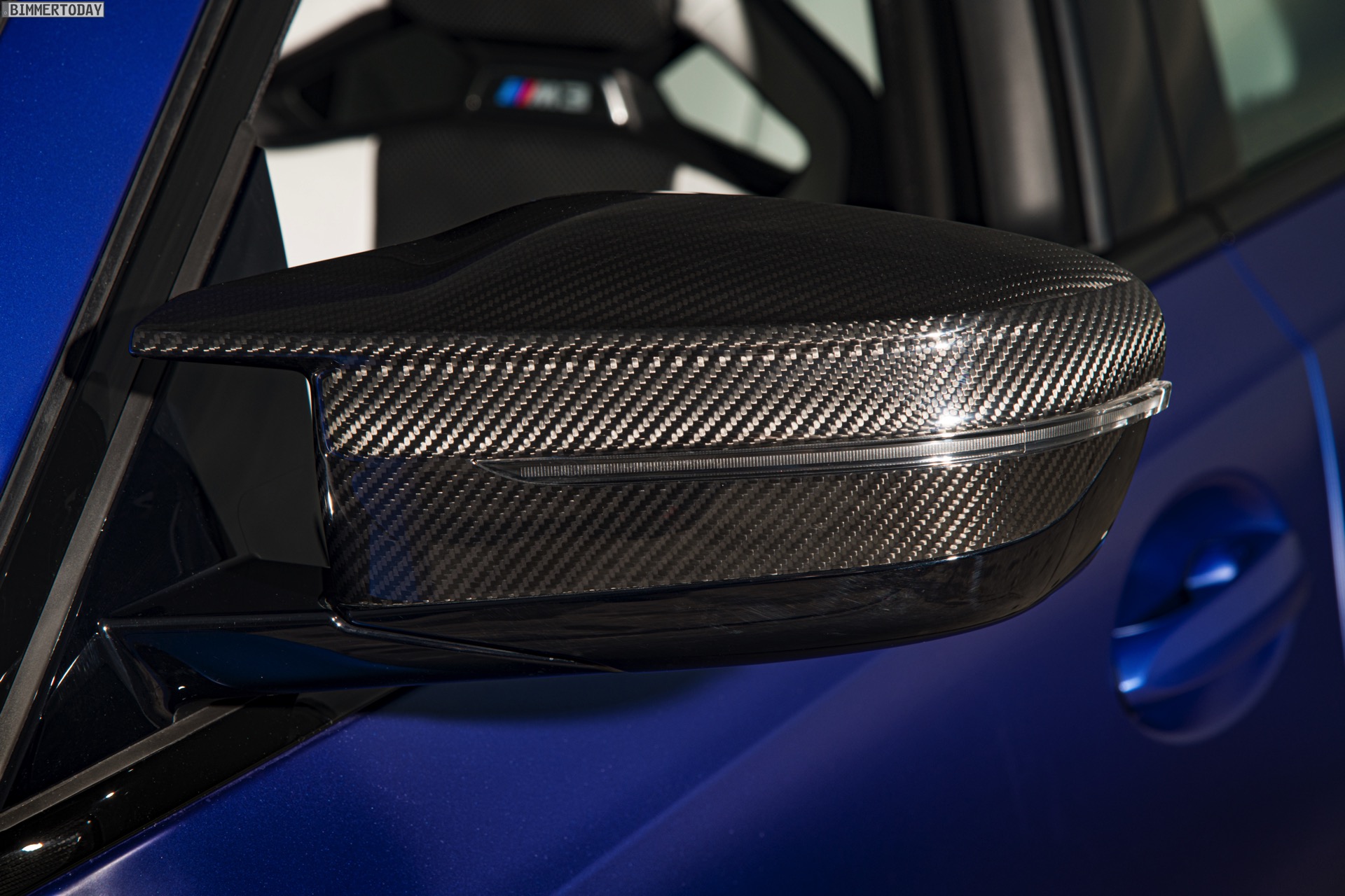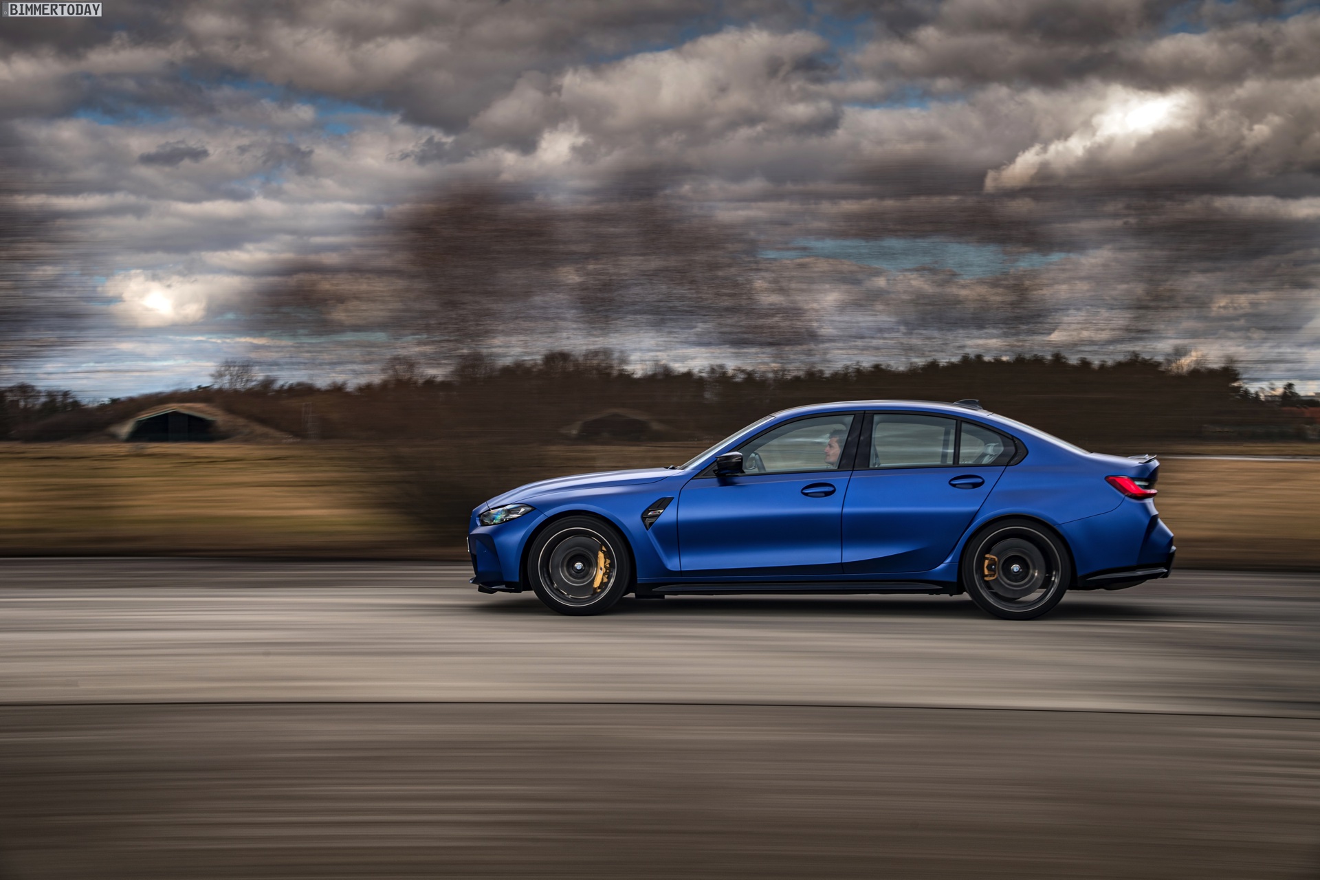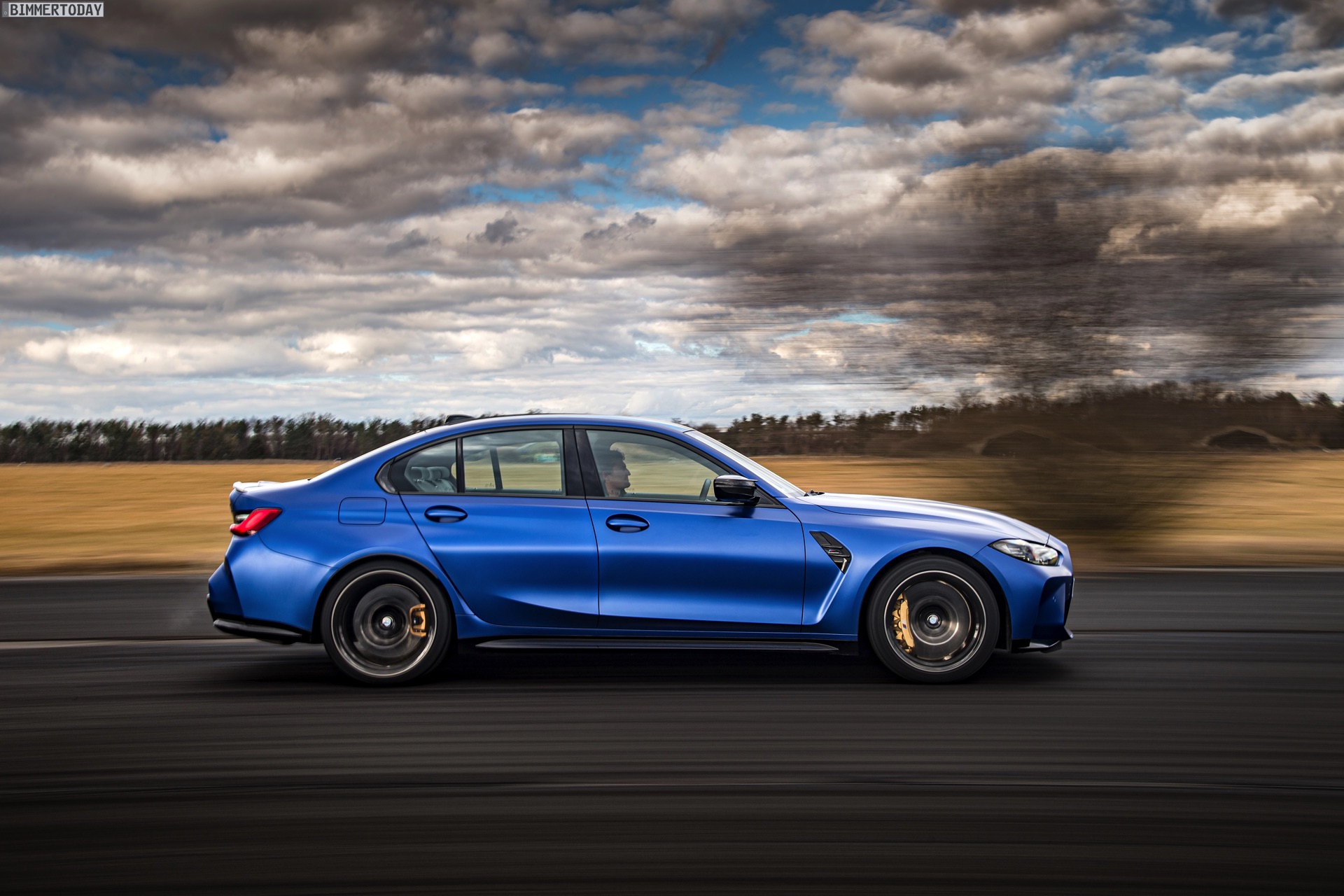 Für unseren ersten Fahrbericht mit dem neue BMW M3 Competition G80 durften wir ans Steuer eines Exemplars in Frozen Portimao Blue, aber im Fall der neuen Generation braucht es ganz sicher keine Individual-Lackierung um aufzufallen: Egal wie man vor dem neuen M3 steht, der Eindruck eines brachialen Kraftprotzes drängt sich aus jedem Blickwinkel auf. Aber zur Optik wurde längst genug gesagt, also auf ans Steuer! Schon beim Öffnen der Tür unterstreicht der erste Blick in den Innenraum den sportlichen Anspruch: Die optionalen M Carbon Schalensitze mit Durchbrüchen und hohen Seitenwangen versprechen enormen Seitenhalt, aber keinen bequemen Einstieg – sie erinnern den Fahrer schon vor jeder Fahrt daran, dass er gerade in einen M3 einsteigt, der es mit der Abgrenzung vom 3er noch ernster meint als jeder seiner Vorgänger.