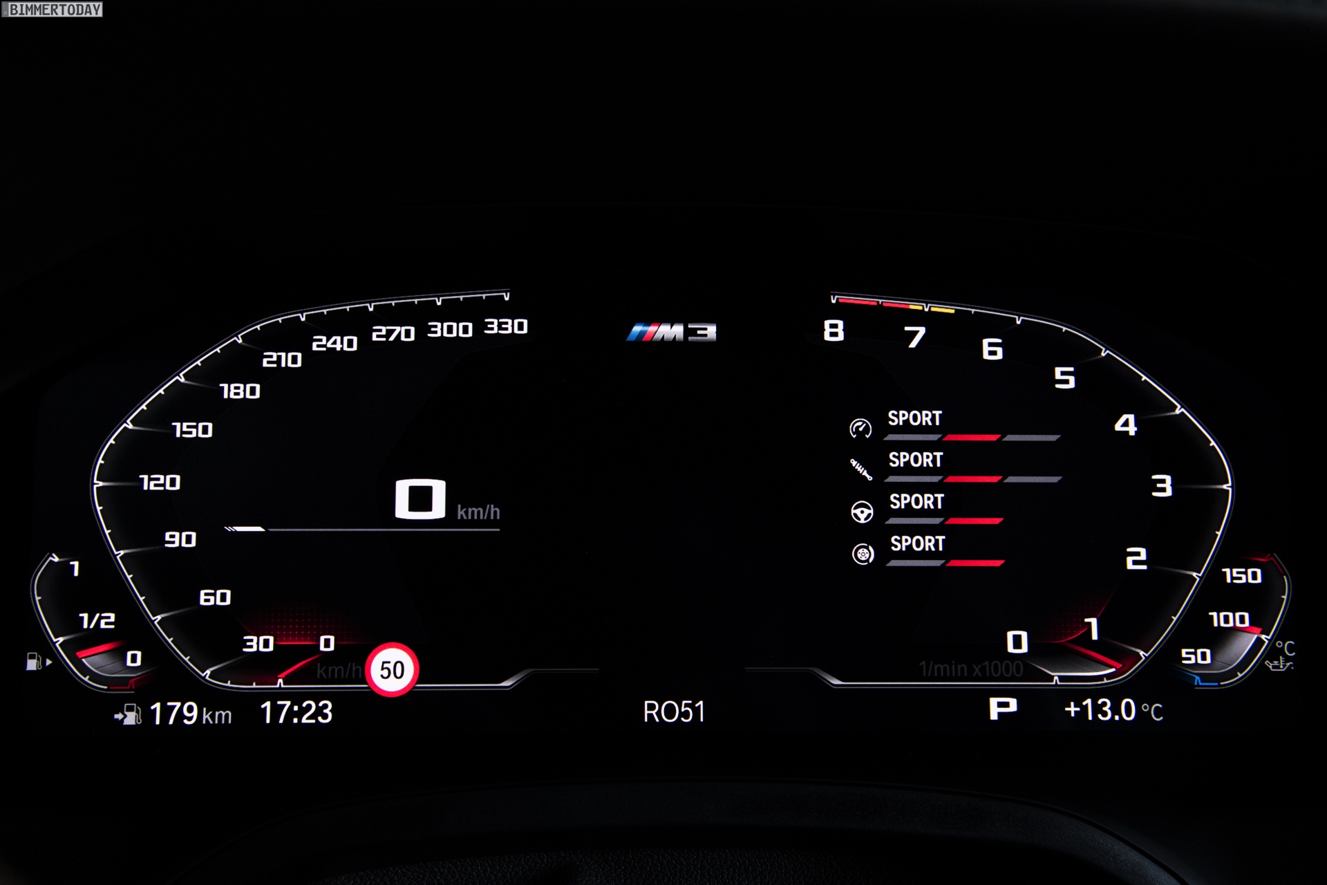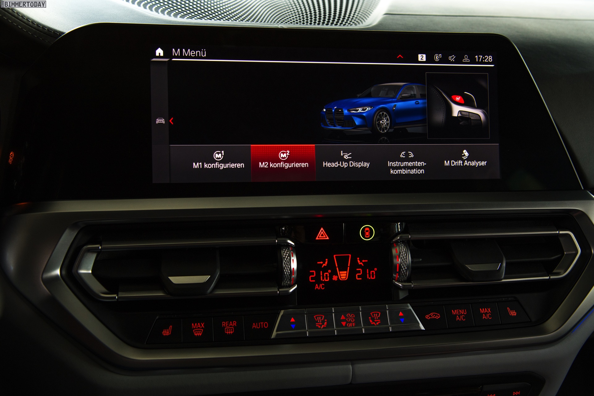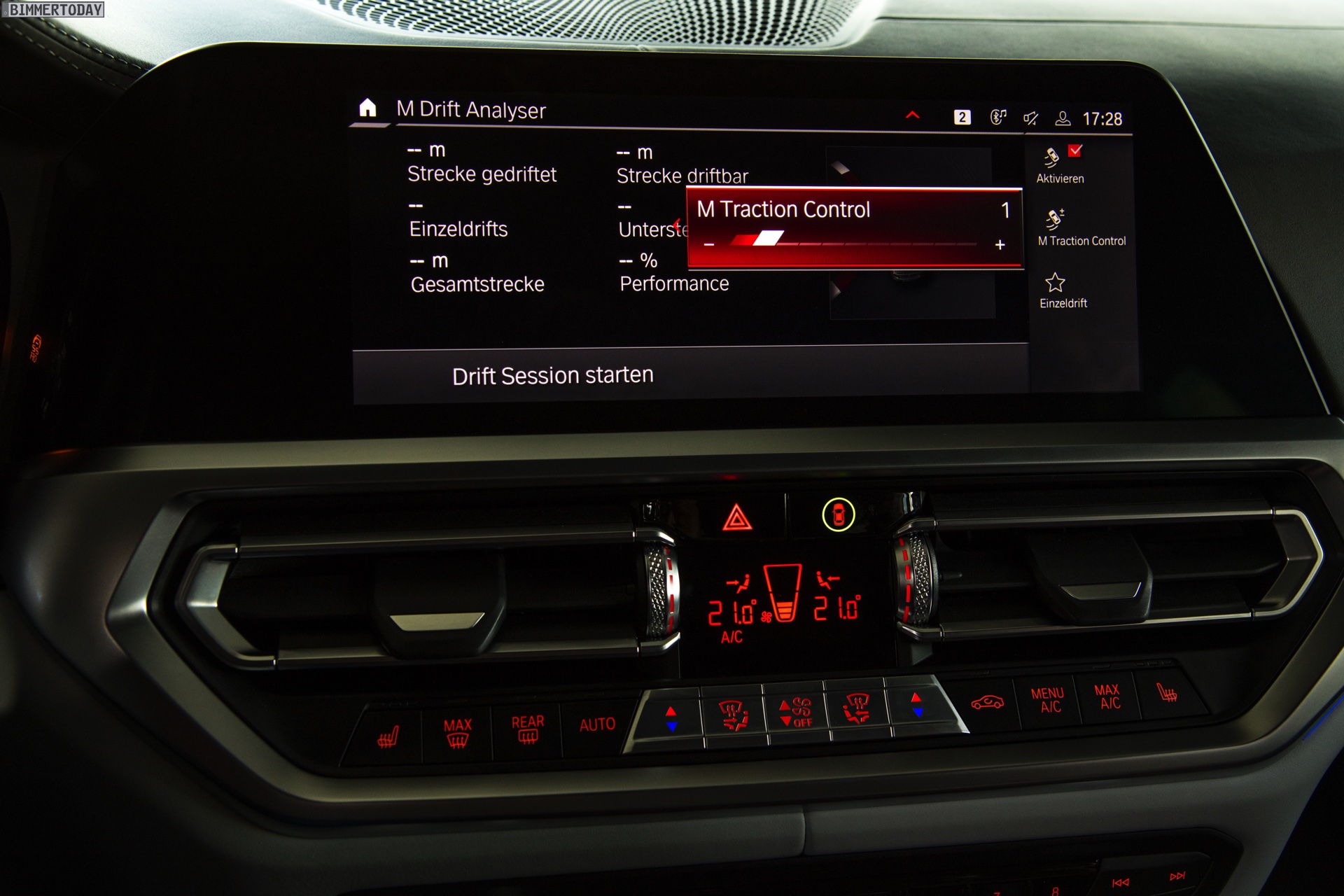Ziemlich überzeugende Unterstützung leistet dabei die neue M Traction Control, die in nicht weniger als 10 Stufen die zum individuellen Fahrstil passende Unterstützung der elektronischen Fahrhilfen erlaubt. Je nach Vorlieben in Sachen Lebendigkeit des Hecks, maximalen Driftwinkeln und DSC-Eingriffsschwellen kann so jeder für sich abschmecken, wie scharf er den BMW M3 Competition gerne genießen möchte. Wie bisher lassen sich die beiden favorisierten M-Setups auf den roten M1- und M2-Knöpfen am Lenkrad abspeichern und so jederzeit aktivieren, wenn sich die Anforderungen von einer Sekunde auf die andere ändern sollten.