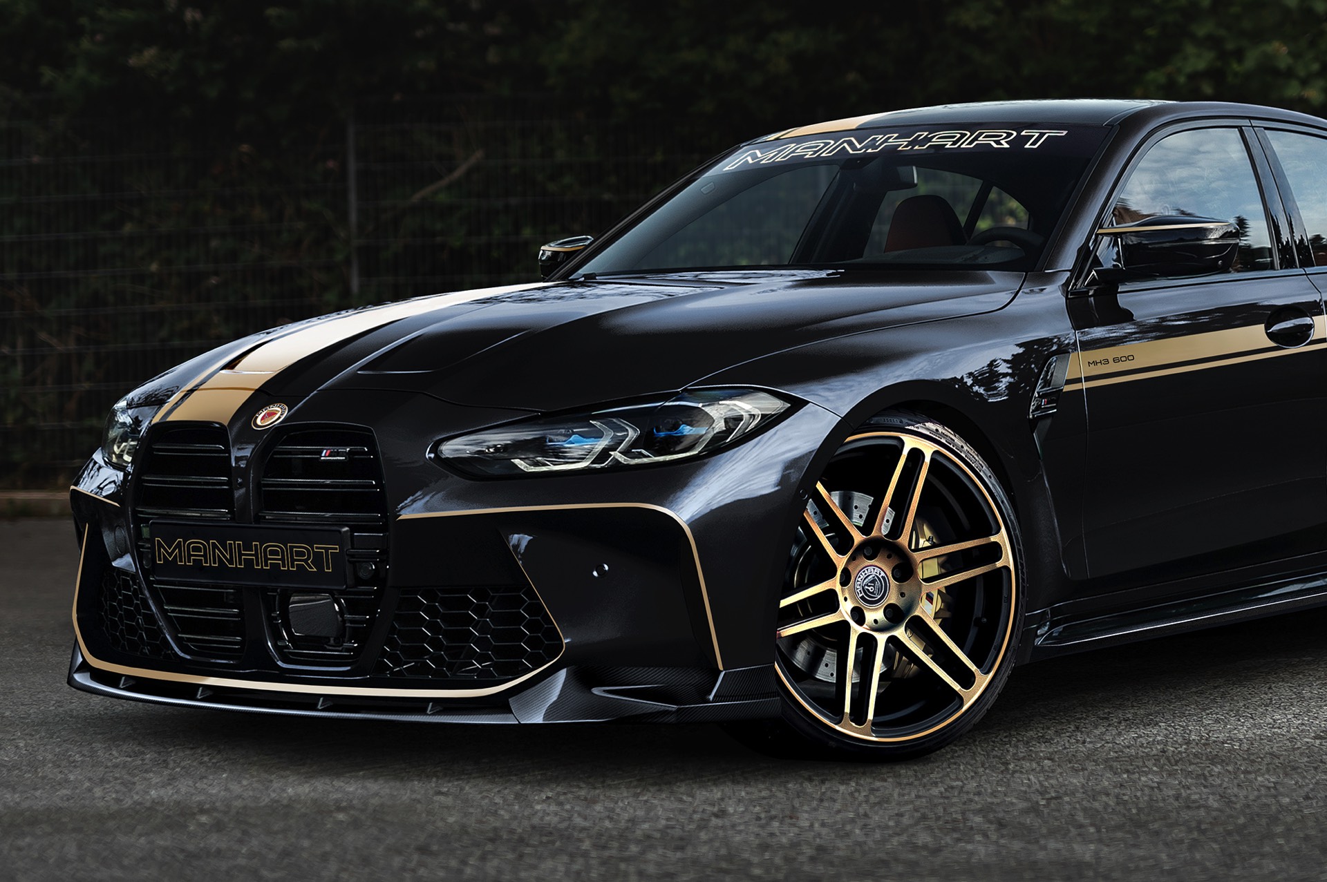 Rund um den Marktstart ist jedes Exemplar des neuen BMW M3 G80 und seines zweitürigen Bruders M4 G82 ein absoluter Hingucker, schließlich hat man eine Front wie diese noch nie gesehen. Schon in Kürze wird es aber erste Kunden geben, die das Rad noch ein Stück weiter drehen und ihren neuen Alltags-Sportler zusätzlich individualisieren wollen. Hierfür steht Manhart Performance schon jetzt bereit, wie die ersten Bilder mit diversen Tuning-Komponenten ankündigen sollen. Offiziell hören die beiden Garchinger nach dem Tuning auf die Namen MH3 600 und MH4 600, wobei sich die dreistellige Zahl sogar mit einem Tick Understatement in Verbindung bringen lässt – anders als 600 vermuten lässt, gehen beide Modelle sogar mit 620 PS an den Start.