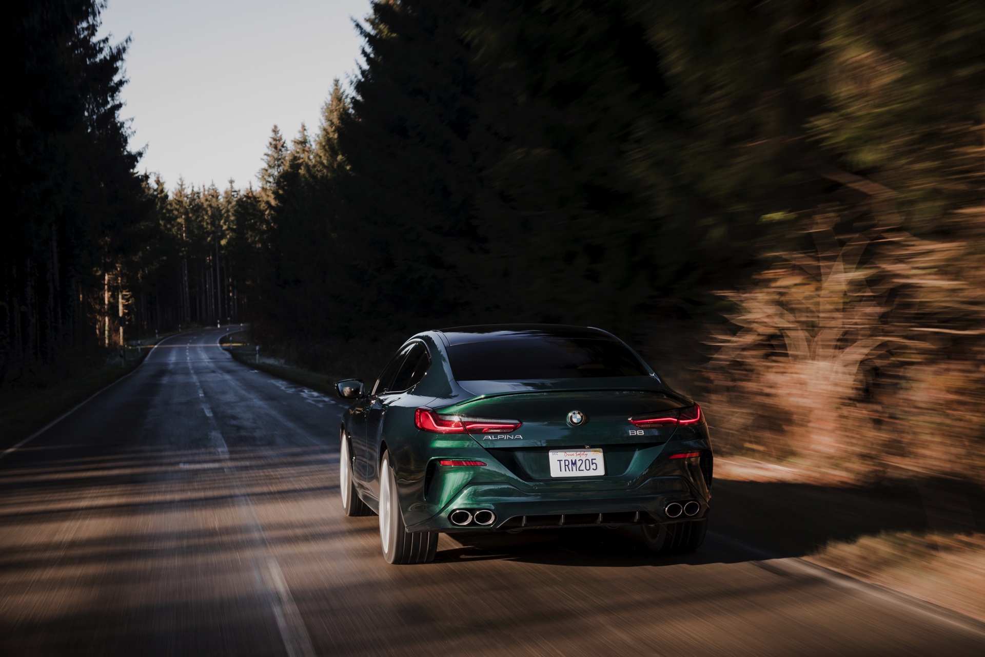 Auf den ersten Fotos glänzt der BMW Alpina B8 in klassischem Alpinagrün, wodurch seine Eleganz noch zusätzlich betont wird. Die großen Vielspeichen-Felgen im Alpina Classic-Design machen den B8 auch in der Seitenansicht sofort als Alpina erkennbar. Während auf dem US-Markt auf ein Kennzeichen an der Front verzichtet werden kann und der Alpina-Schriftzug am unteren Rand der Frontschürze für die einzigen Schriftzeichen verantwortlich ist, werden deutsche Exemplare natürlich über ein Kennzeichen unterhalb der Niere verfügen.