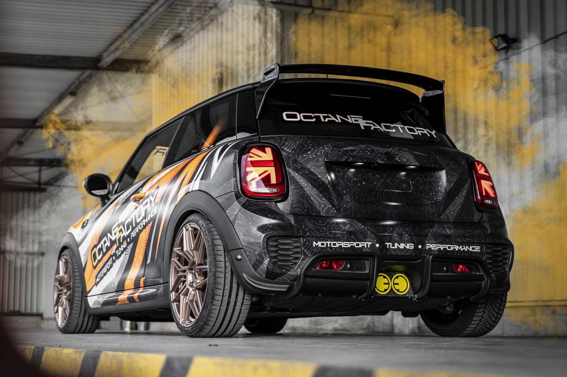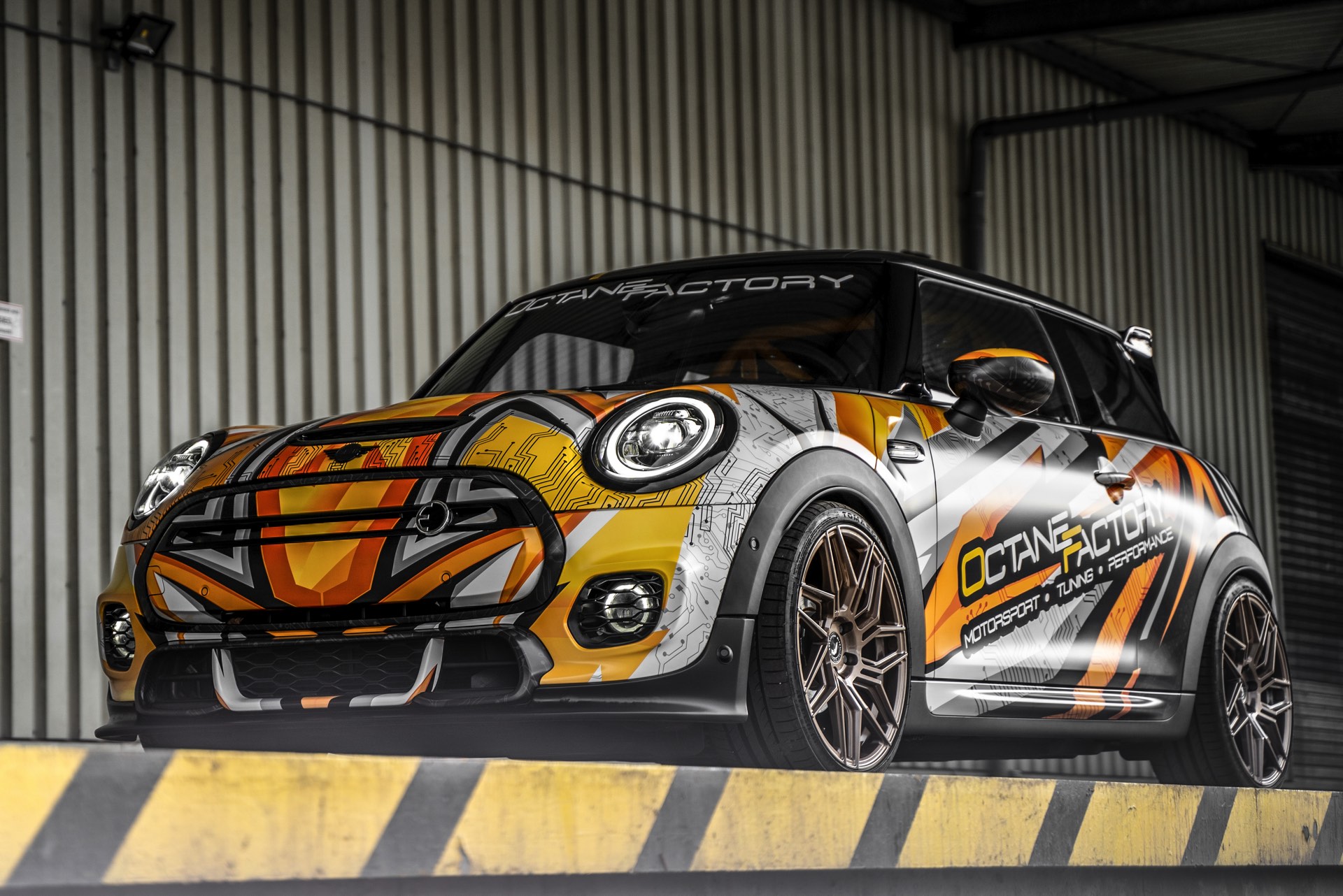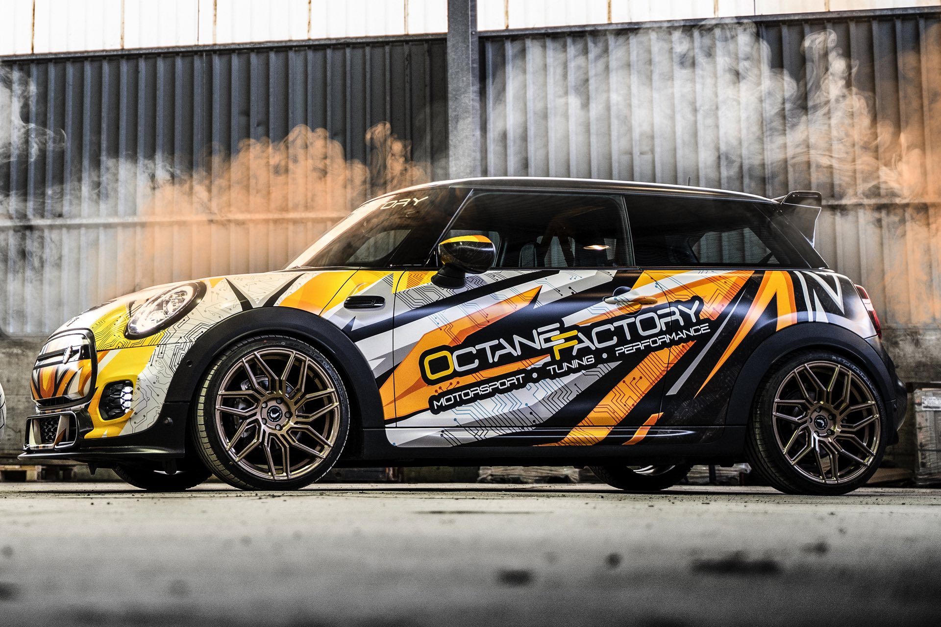 Mit den deutlich steigenden Zulassungszahlen für Elektroautos und Plug-in-Hybride kommen auch auf die Tuning-Szene neue Herausforderungen zu: War der Sound eines Verbrennungsmotors bisher für viele Autofahrer eines der emotionalsten Elemente für die Beziehung zum eigenen Auto und eine Veränderung des Klangbilds in Richtung Sportlichkeit eine entsprechend gefragte Tuning-Maßnahme, werden in Zukunft andere Kompetenzen gefragt sein. Dass die Tuning-Zukunft auch ohne laute Abgasanlagen echte Krawallmacher hervorbringen kann, deutet jetzt der MINI Cooper SE von OctaneFactory an.