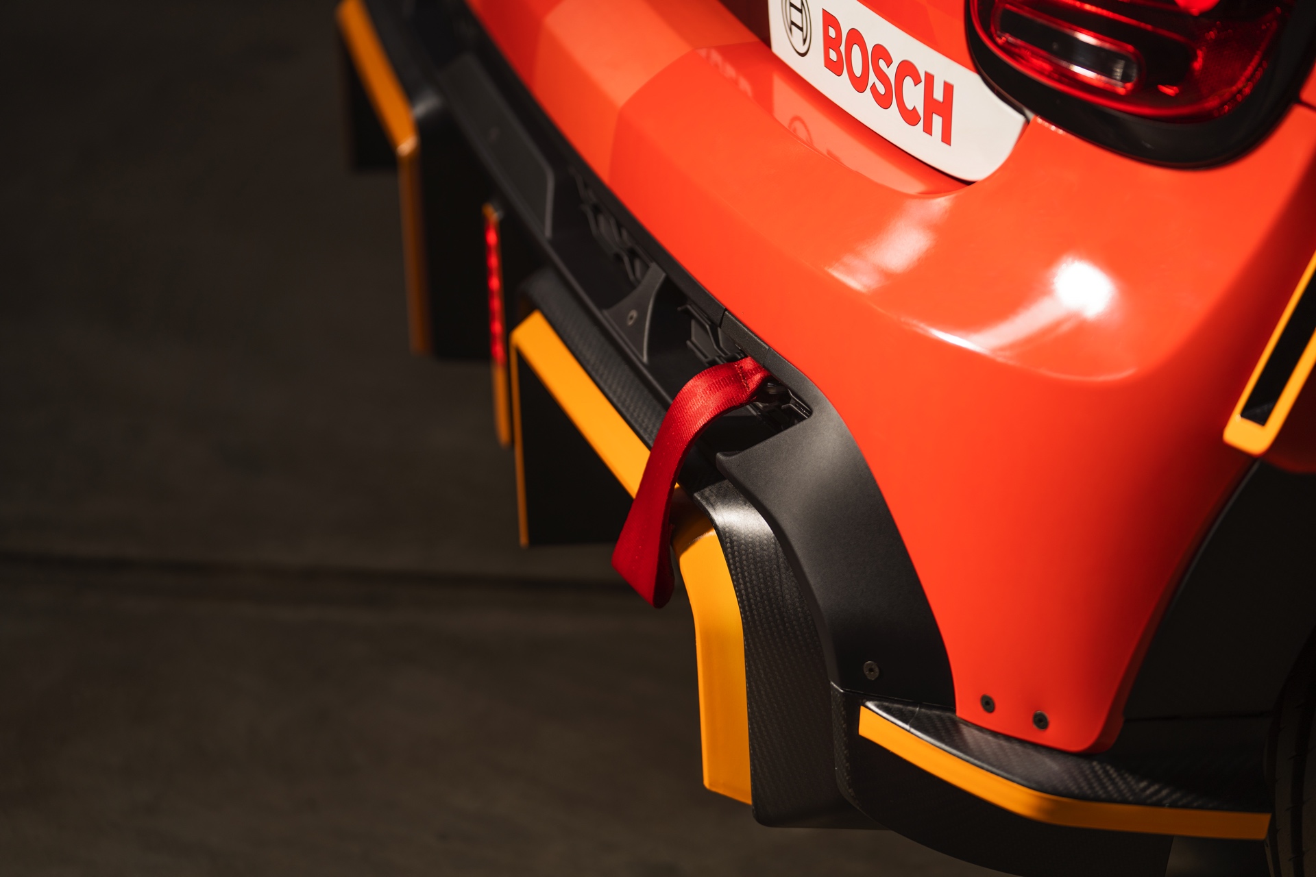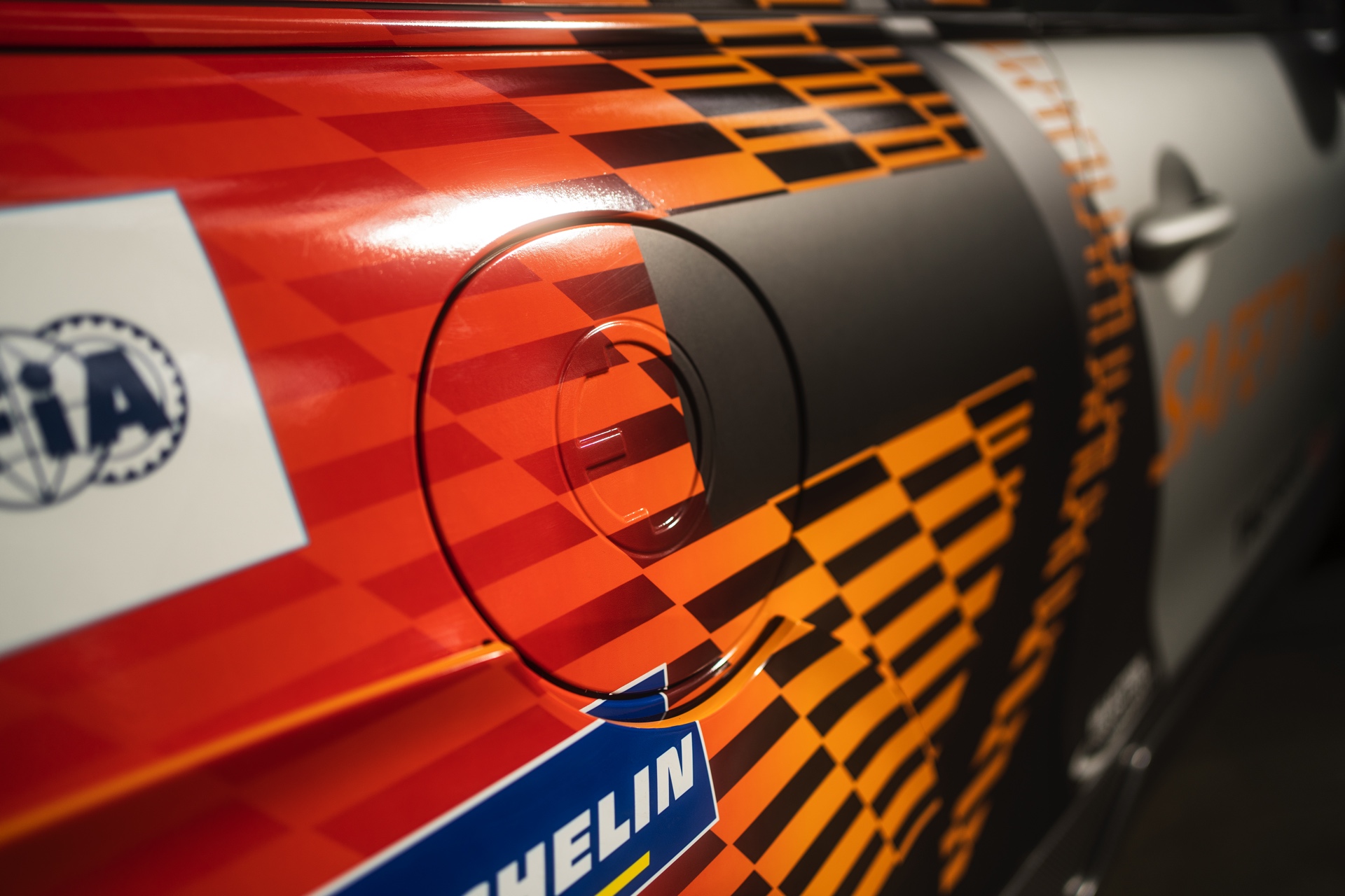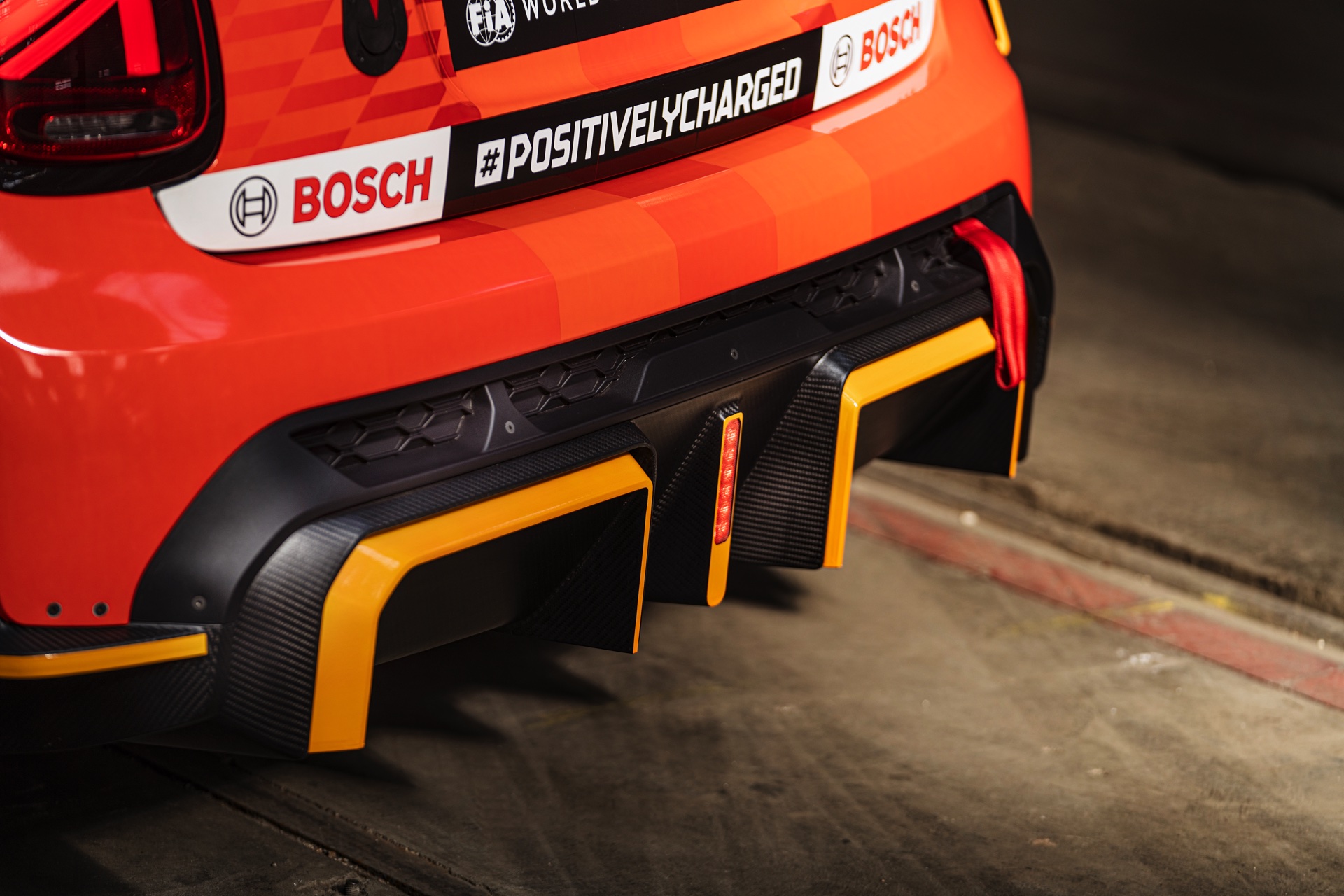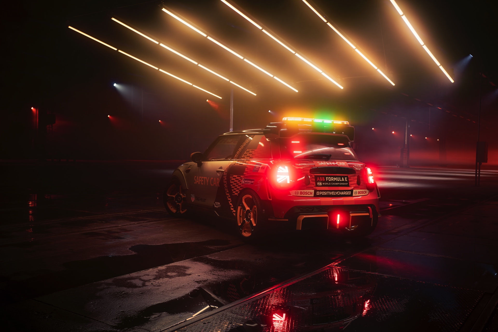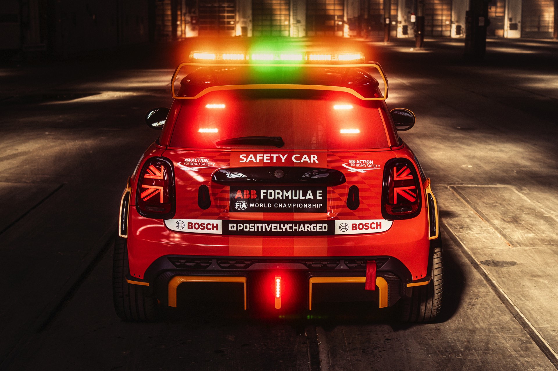 Hinter dem etwas sperrigen Namen verbirgt sich ein tiefgreifend für den Rennstrecken-Einsatz modifizierter MINI Cooper SE, der sich bekanntlich große Teile des Antriebsstrangs mit dem BMW i3s teilt. Für die rasanten Einsätze als Formel E Safety Car 2021 wurden nicht nur der Innenraum komplett ausgeräumt und viele Serien-Elemente durch Carbon-Komponenten ersetzt, auch ein Gewindefahrwerk und eine 4-Kolben-Bremsanlage wurden verbaut. Vor allem hat der Elektro-MINI aber eine an den John Cooper Works GP erinnernde und damit zweifellos Motorsport-taugliche Außenhaut erhalten – an einen braven Saubermann für den emissionsfreien Stadtverkehr erinnert bei diesem Look jedenfalls nichts mehr: