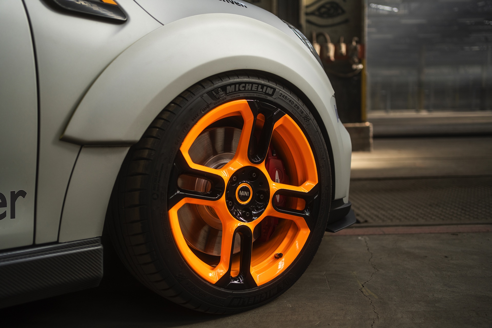 Oliver Heilmer (Leiter MINI Design): “Das Design ist eine spannende Symbiose aus technischer Präzision und Emotion. Hier bestimmt die Funktion die Form, viele Designelemente sind technisch getrieben. So wurden beispielsweise die Form der Radhäuser, Front- und Heckschürze in enger Abstimmung mit den Kollegen von BMW Motorsport entwickelt und sind unter anderem auch unter Gewichtsaspekten optimiert. Und gerade diese markante, technisch präzise Formensprache verleiht dem Fahrzeug seine hohe Emotionalität und Faszination.”