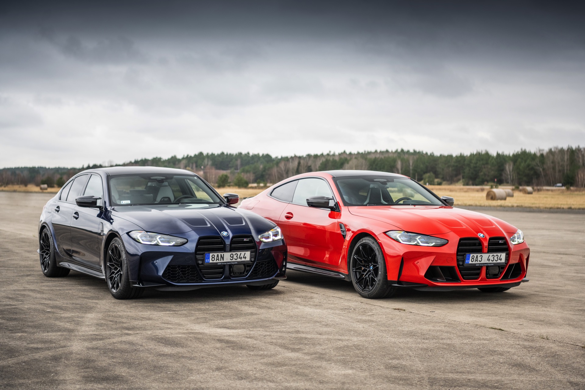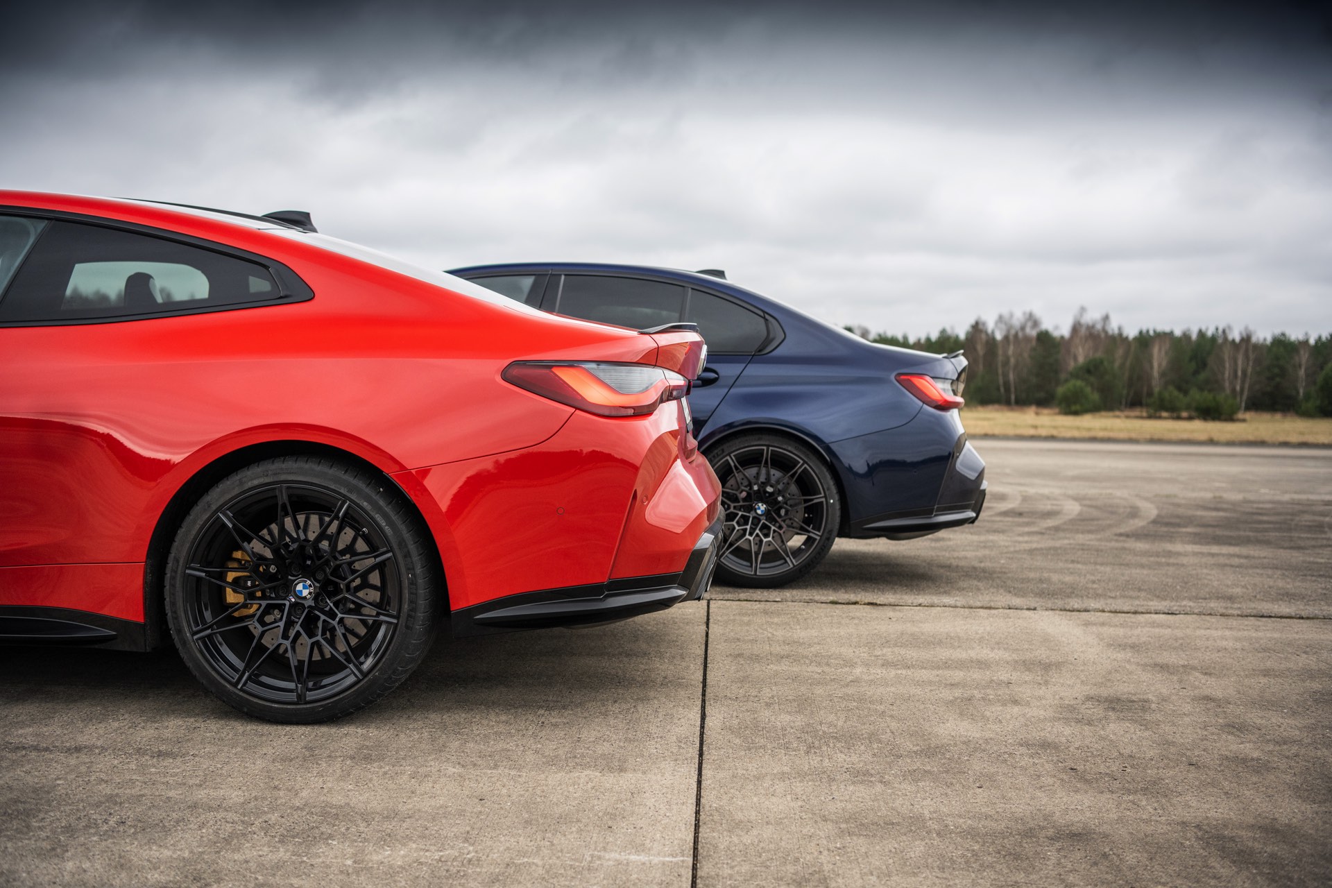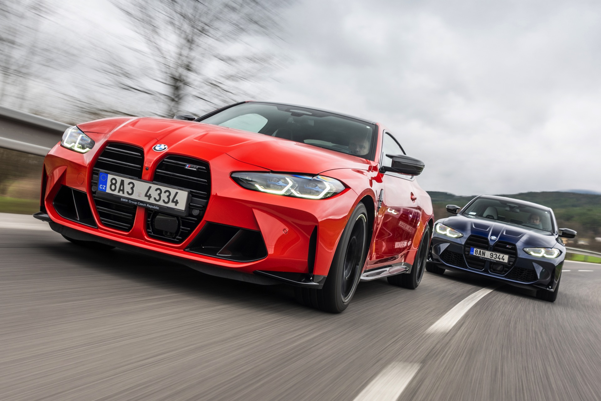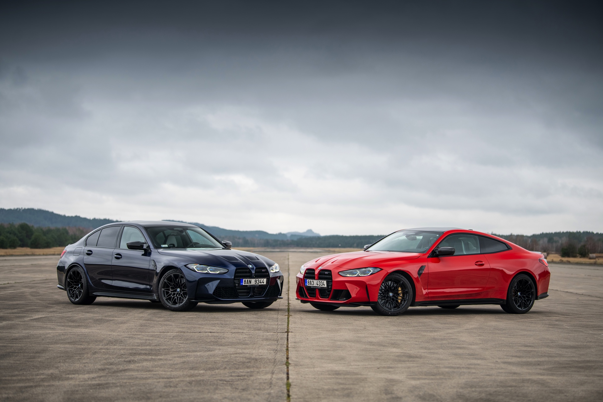 Die Freude am Querfahren ist auch auf einigen der offiziellen Fotos von der Präsentation in der Tschechischen Republik unübersehbar. Auf den Bildern aus dem Nachbarland stehen der BMW M3 Competition G80 in Tansanitblau und der BMW M4 Competition G82 in Toronto Rot im Mittelpunkt: