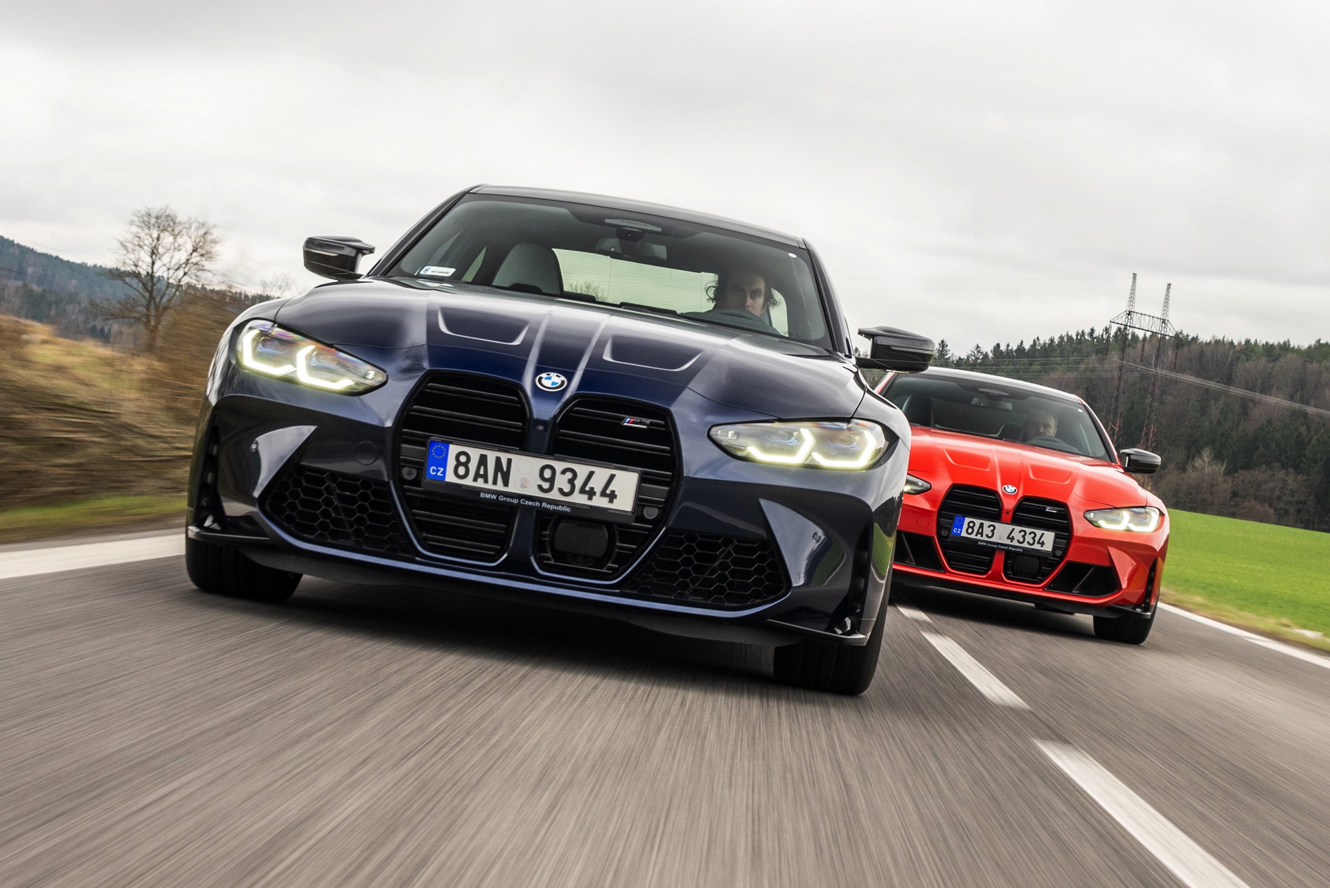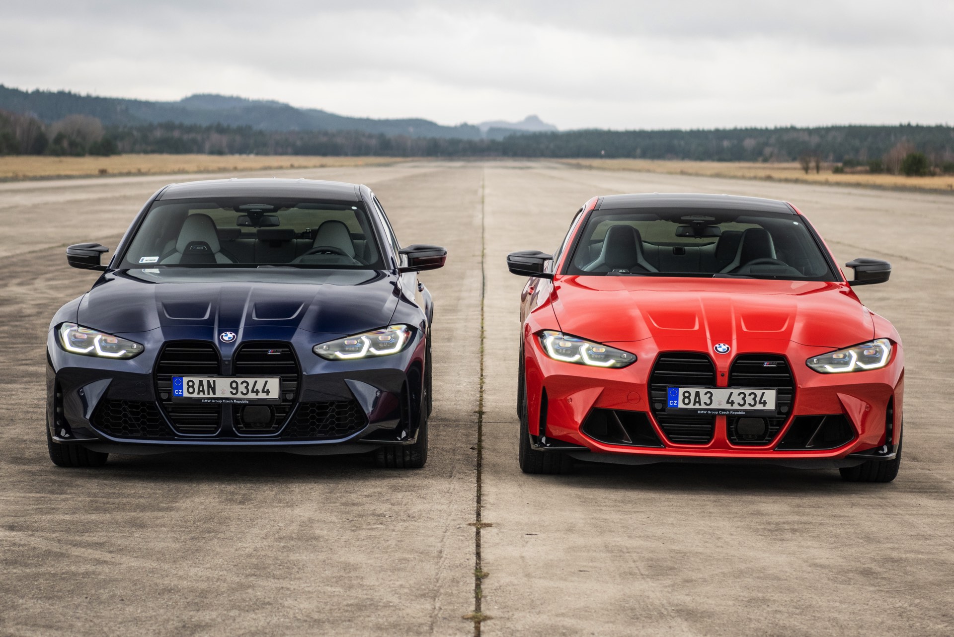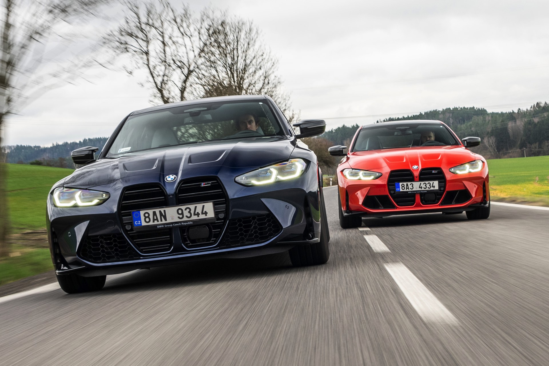 Die Freude am Querfahren ist auch auf einigen der offiziellen Fotos von der Präsentation in der Tschechischen Republik unübersehbar. Auf den Bildern aus dem Nachbarland stehen der BMW M3 Competition G80 in Tansanitblau und der BMW M4 Competition G82 in Toronto Rot im Mittelpunkt: